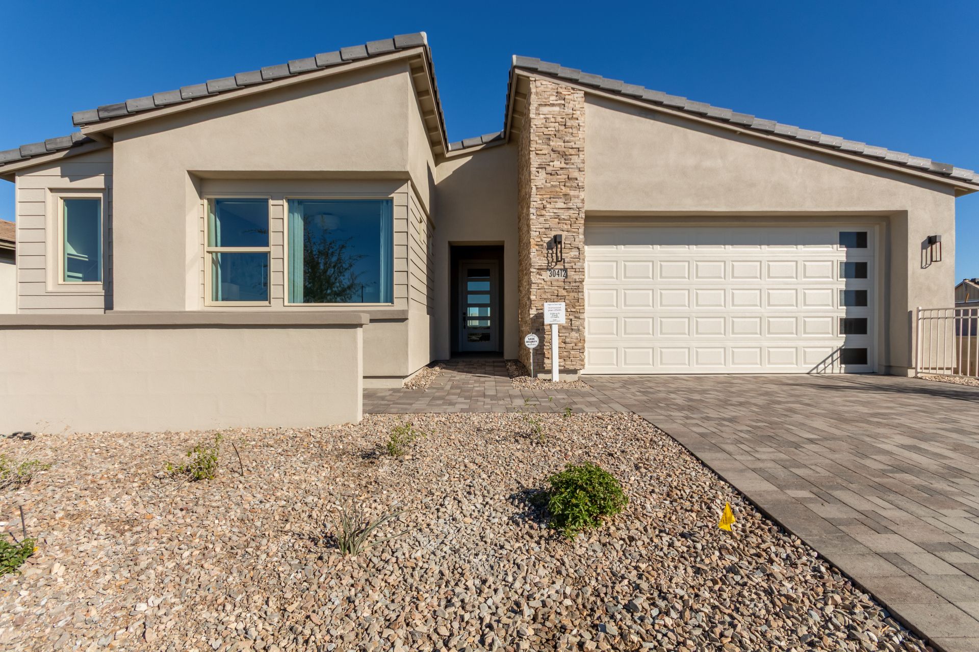 From the I-10: Heading west, take exit Sun Valley Parkway/Palo Verde Rd and drive north 12 miles to Teravalis Parkway. Turn west on Teravalis pkwy to 304th Ave, turn right. Drive to Indigo Way, turn left and follow around to Nightshade Drive; turn right into Agave Springs. Our models are located on Nightshade Drive. From the 303: Exit Bell Rd and head west. Bell Rd turns into Sun Valley Parkway. Follow around for about 20 miles until you reach Teravalis Parkway. Turn right (west) and follow to 304th Ave. Turn right and follow to Indigo Way; turn left and follow around to Nightshade Drive; turn right into Agave Springs. Our models are located on Nightshade Drive.