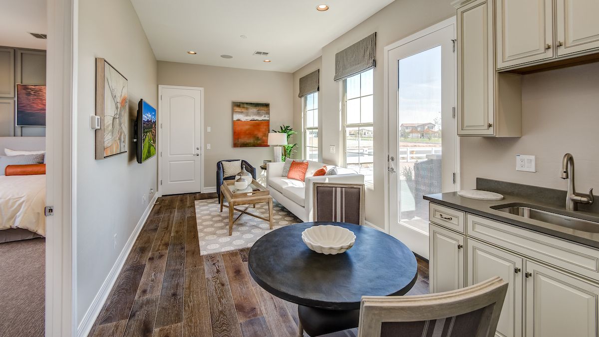 Life is full of stress, but your home doesn?t have to be. With a home at Elegance at Eastmark, you can kick up your feet and enjoy your state-of-the-art kitchen, spa-like baths, elegant finishes, and open spaces. Elegance at Eastmark is designed for every aspect of your multifaceted life. Whether you?re working from home or making memories with family after a long day at the office, your relaxation doesn?t stop at your front door. Step outside and soak up the sun at the neighborhood pool, walking trails, dog parks, catch-and-release lake, and nearby hot spots.