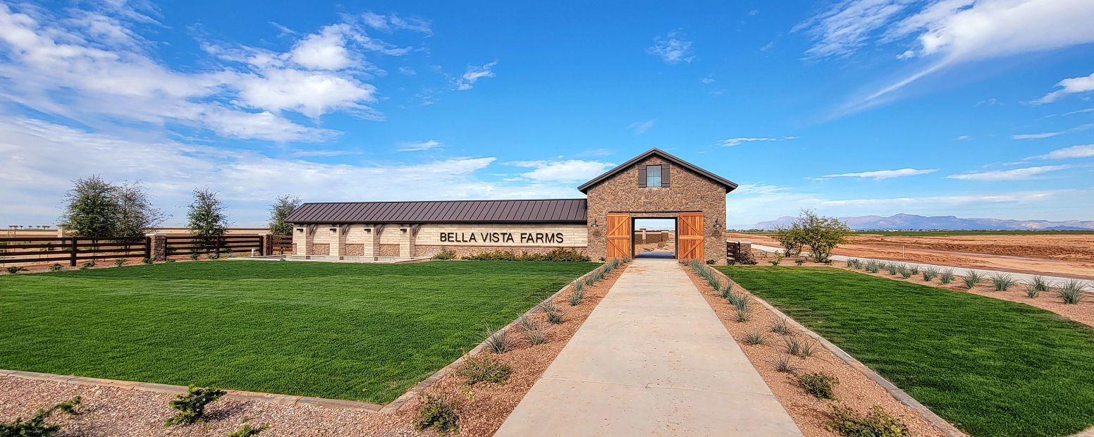 To get to Bella Vista Farms:NOTE: The model is now closed. Please schedule an appointment to view available inventory or for a tour of the community.From the AZ 202 LoopTake the exit for AZ Route 24 EContinue on Rte 24 until it ends at Ironwood Drive.Head south on Ironwood Drive for 3.4 milesIronwood Drive turns into N. Gantzel Rd. Continue for 6.5 mi.Turn left on E. Bella Vista Rd for 1.5 miTurn left on N. Schnepf RoadLeft on Vista Verde TrlLeft on East FreedomThe Ashton Woods model will be on the left.All Ashton Woods models are marked with the Arizona State Flag