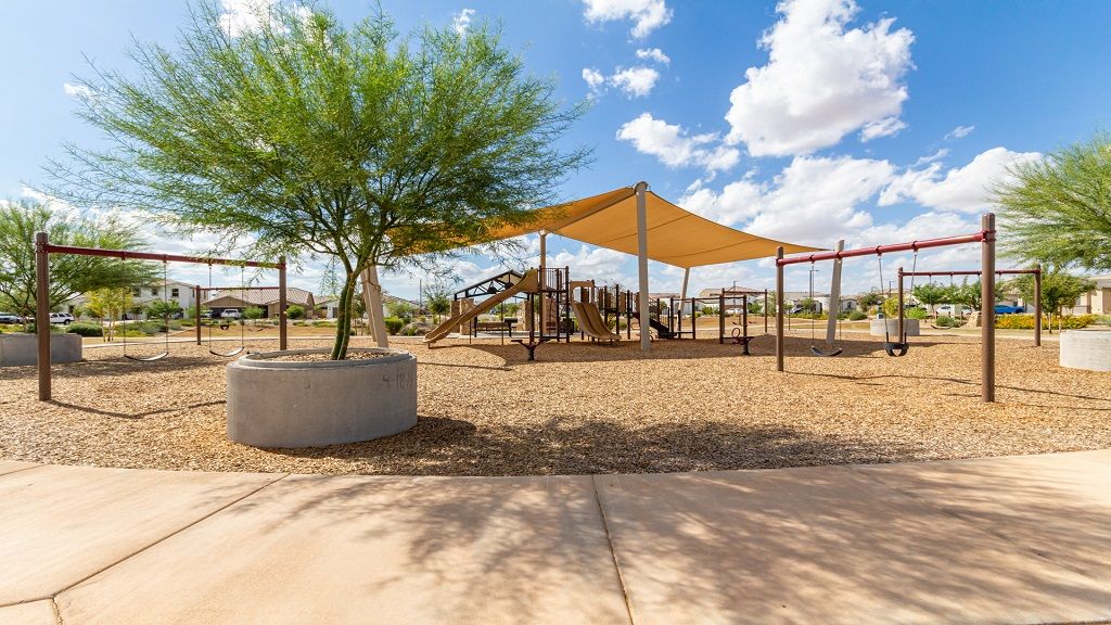 A desert oasis awaits at Los Cielos at Rancho Mercado. Take your competitive spirits to the basketball and volleyball courts, take in nature as you meander along lush walking trails, let your furry friends run free at the dog park and encourage little ones to make friends at the playground. With open-concept living spaces, customizable flex rooms and garages with extra storage space, you’ll have all the room you need to thrive. Discover more reasons to love our new homes in Surprise, AZ, below.