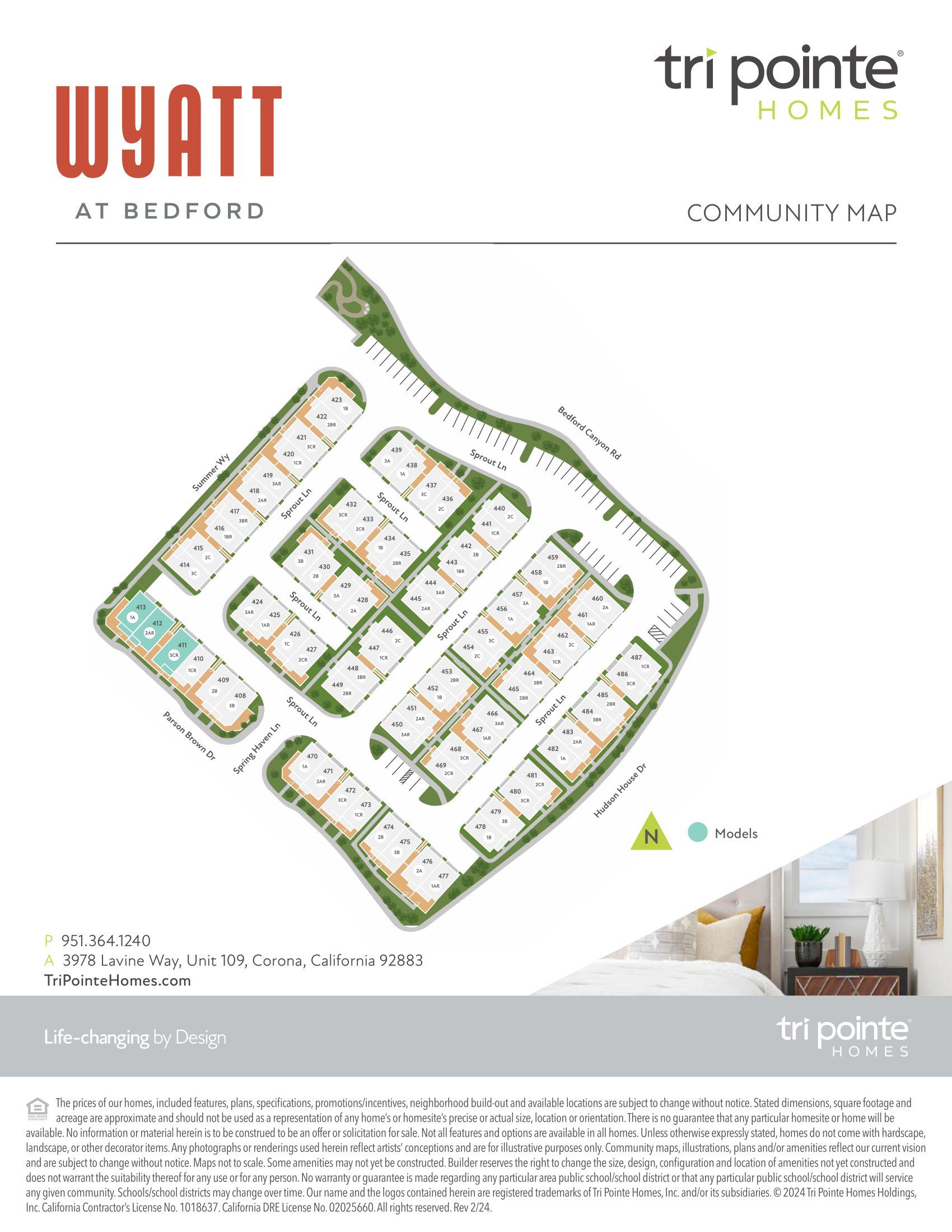 From the I-15S, exit Cajalco Rd and turn right. From the I-15N, exit Cajalco Rd and turn left. Turn left onto Bedford Canyon Rd. Drive through the communitys gated entrance and round about then follow the curve around as the street becomes Hudson House Dr. Take your first right onto Parson Brown Drive. Follow the signs to the Averly New Home Gallery on your right.