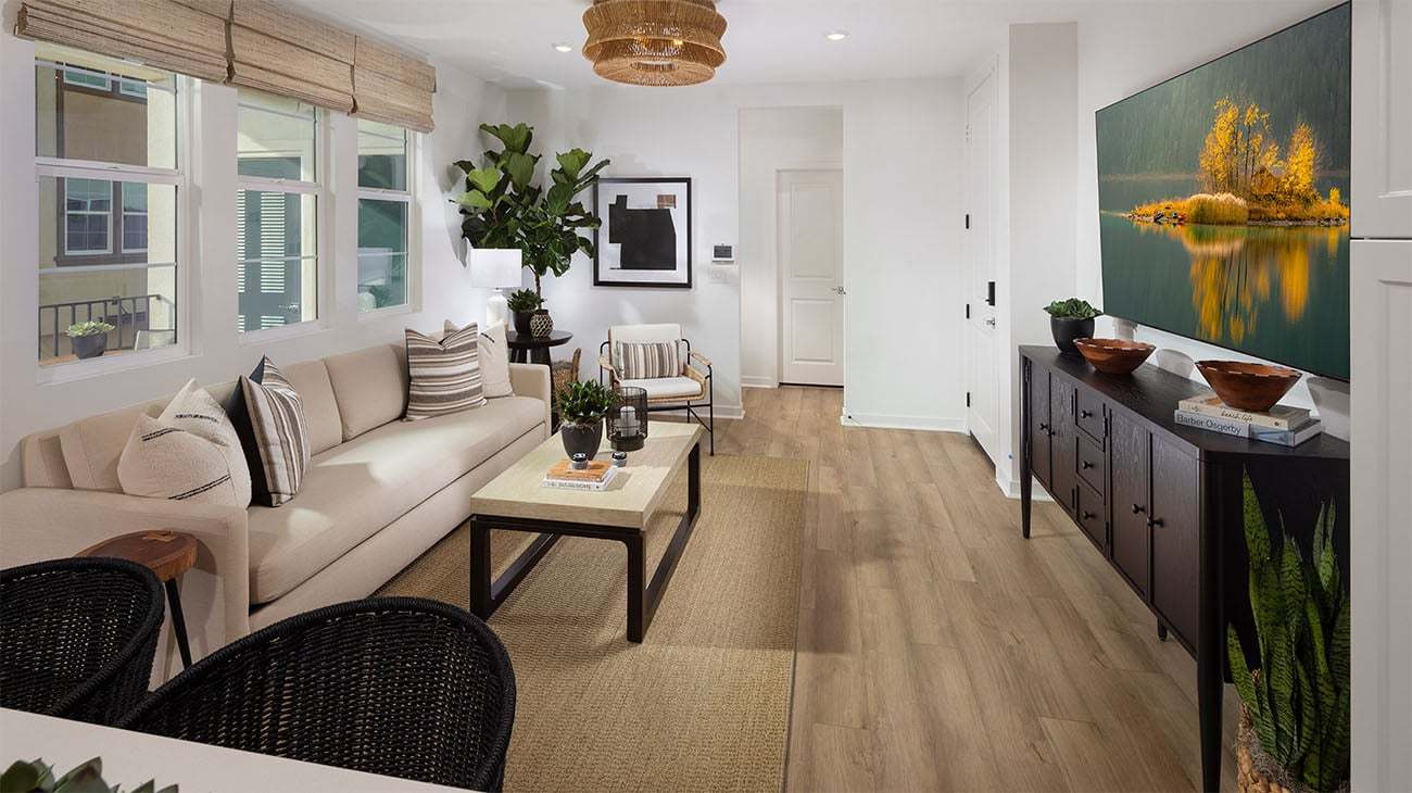 Introducing Westport at Eastvale Square, a premier destination for new homes for sale in Riverside County in the Inland Empire. Located in the vibrant city of Eastvale, this community will quickly become the place to live and play in the region. Westport offers single-story attached flats with five unique floorplans, featuring 1-3 Bedrooms, 1-2 Baths, and up to 1,643 sq. ft. of spacious living. Enjoy the convenience of low maintenance living with landscape upkeep included, all while being part of a dynamic downtown atmosphere. Westport is where modern living meets comfort, making it the perfect choice for the next generation of families seeking a blend of uptown luxury and neighborhood energy in Eastvale.