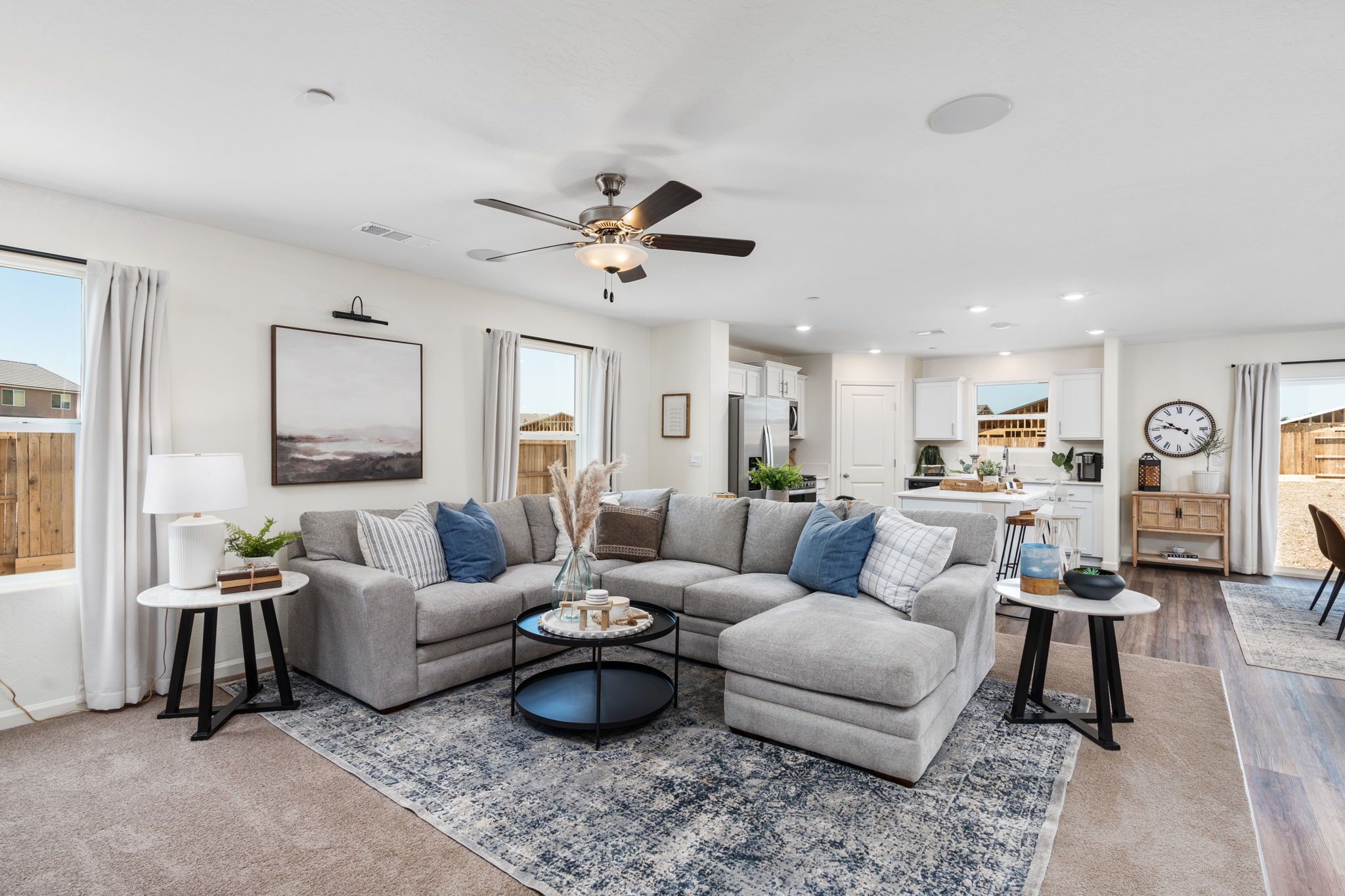 Santa Fe Trail, an Express Series community located in northeast Tulare, offers single and two-story homes with four floorplans ranging from approximately 1,509 to 2,814 square feet with 4 to 5 bedrooms, 2 to 3.5 bathrooms and 2- and 3-car garages. The Americana, Farmhouse and Craftsman-style exteriors create a charming and cohesive neighborhood. The interiors of these homes feature open-style living areas with approximately 8' ceilings throughout and include standard amenities such as Whirlpool® stainless-steel appliances, including a range, microwave and dishwasher, quartz countertops, chrome finishes, and more. Each home in this community comes with an industry-leading suite of smart home technology products that keep you connected with the people and place you value most. Santa Fe T...