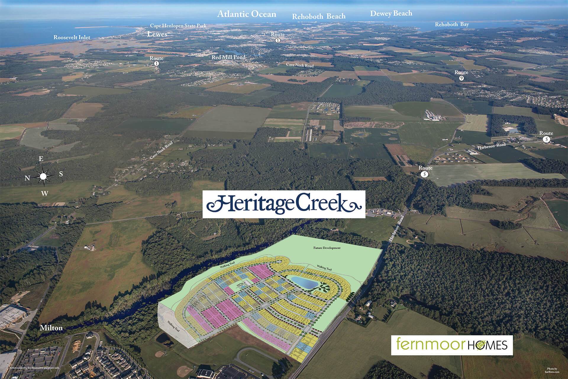 Heritage Creek is located in Sussex County, Delaware, between Routes 1, 9 and 113. We are just 12 miles from Lewes, 16 miles from Rehoboth, and 32 miles from Dover.