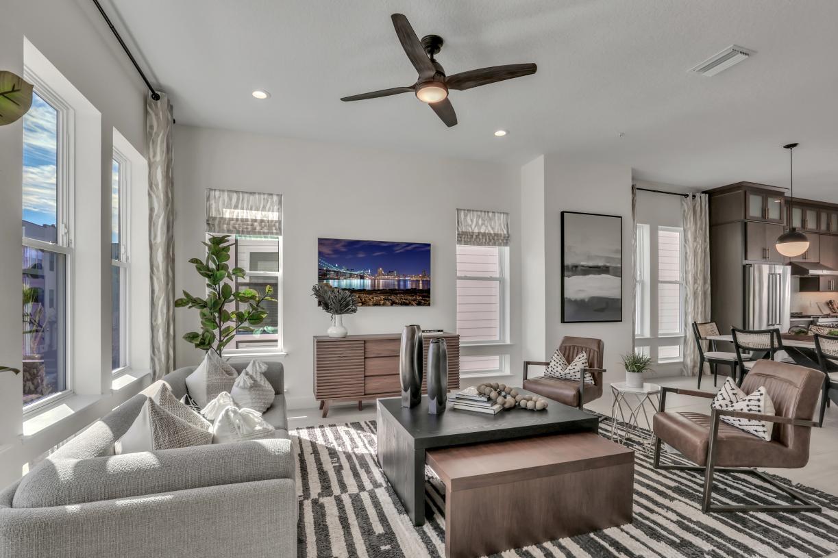 - Luxury three-story townhomes with low-maintenance living