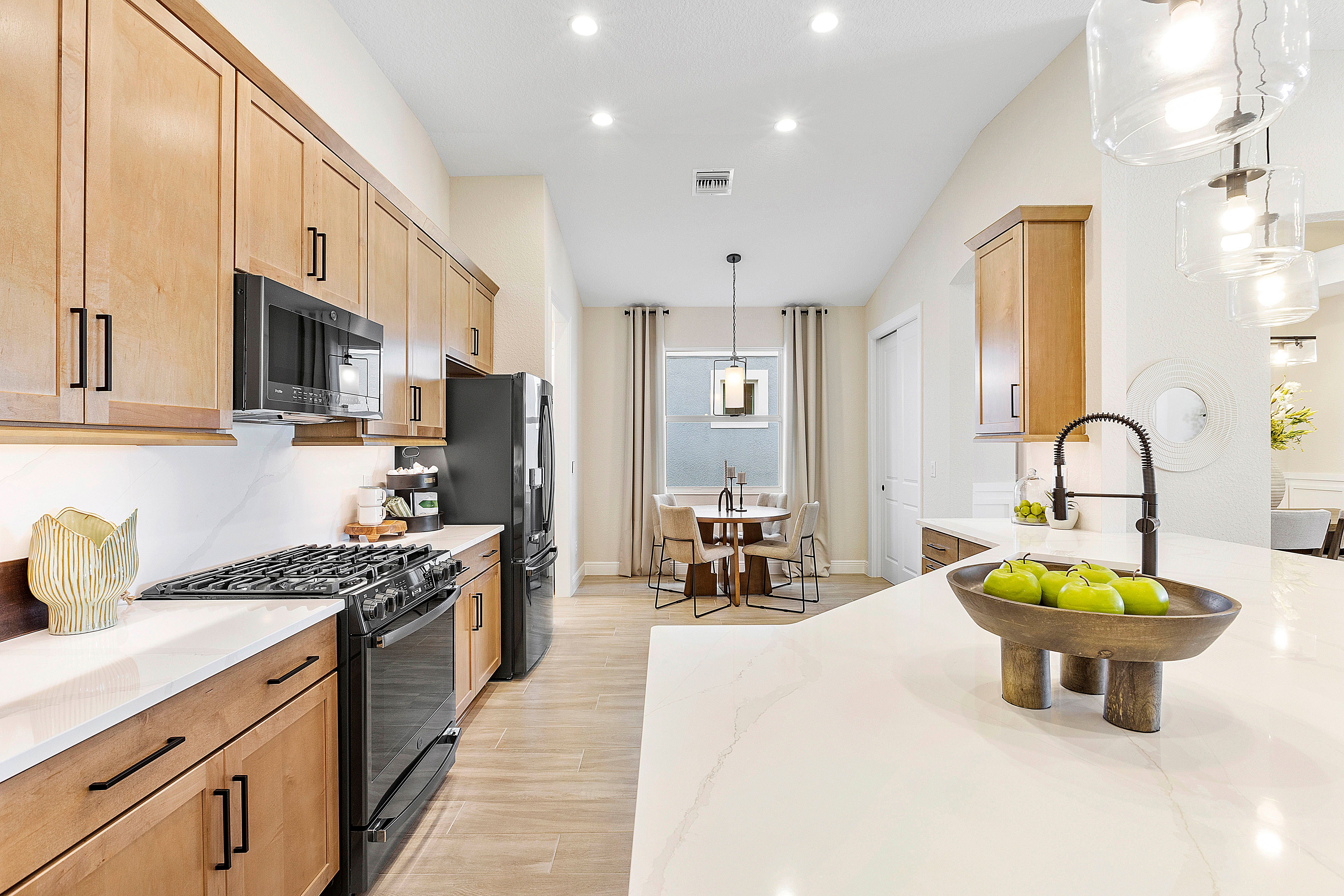 We offer five flexible plans providing multiple living options from additional loft and flex space, covered lanai, formal dining room, and more! All our homes feature gourmet kitchens, covered patios perfect for entertaining, and spacious owner’s suites with a walk-in closet with plenty of storage, double vanities and walk-in shower.