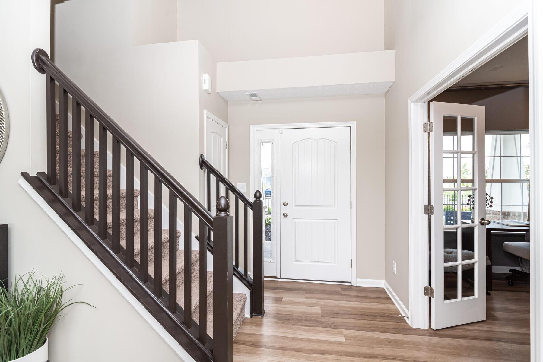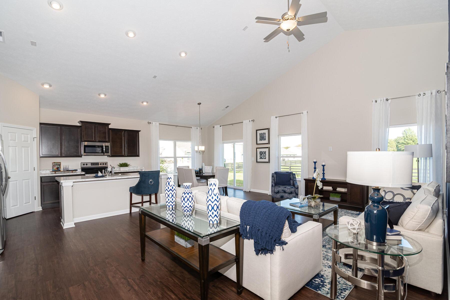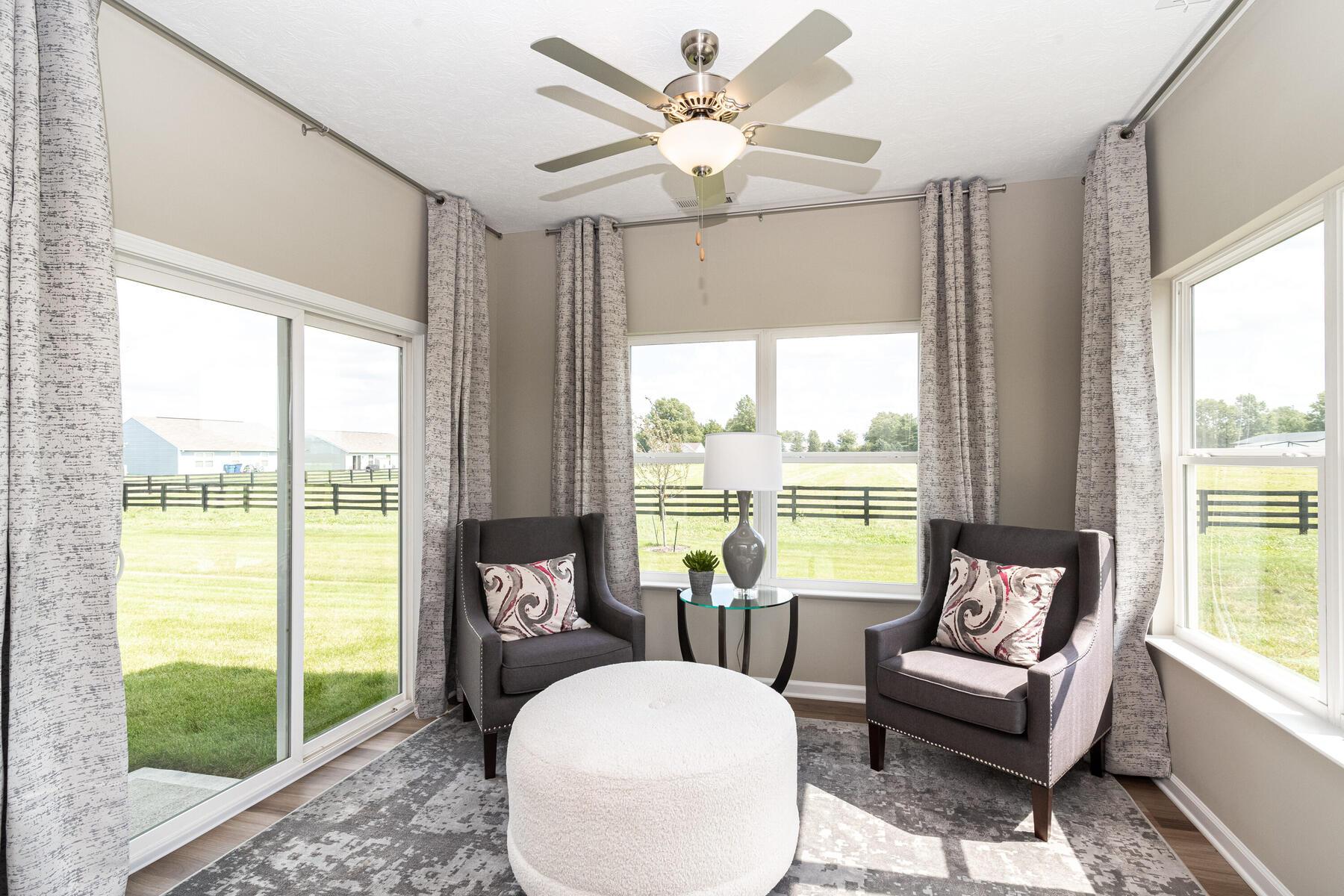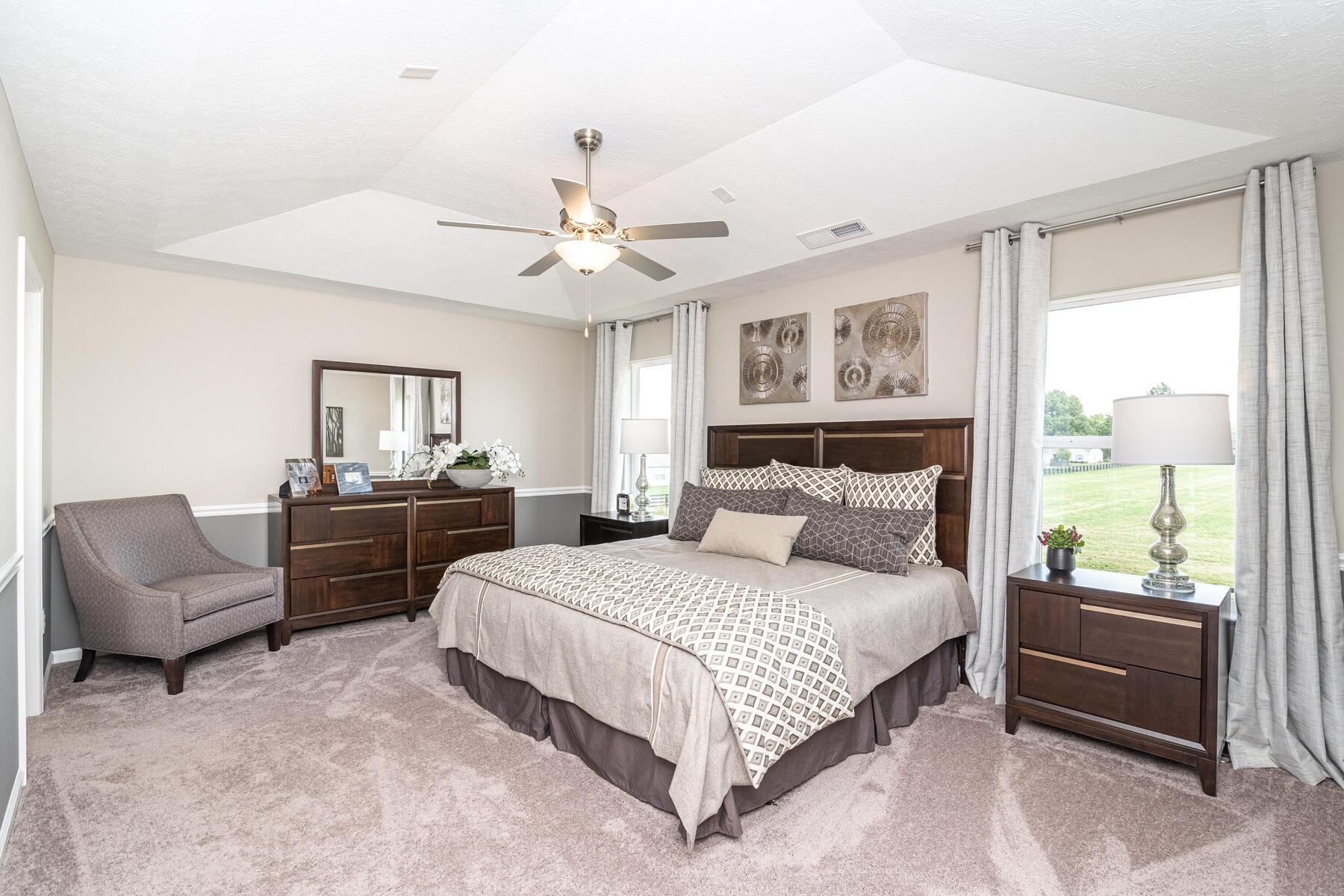 From Indianapolis, take I-465 N towards Carmel and exit on to Keystone Ave (exit 33). After a half a mile, keep right at the fork and follow signs for Carmel to merge onto Keystone Parkway. Continue on Keystone for about 5 miles, then keep left to continue on Keystone Parkway and after another 5 miles merge onto US-31 N. After about 6 miles, take exit 136 toward IN-38 W and keep left at the fork to merge onto IN-38 W. Continue on 38 for 6 miles and take a slight left onto 10th street. Continue about a half mile, then turn left onto Mule Barn Rd. Turn Right into the neighborhood onto Shadetree Ln. Then Turn Left onto Graybark St. Turn Right onto Foliage Ln and then turn left onto Bigleaf Dr. The models will be on your left.