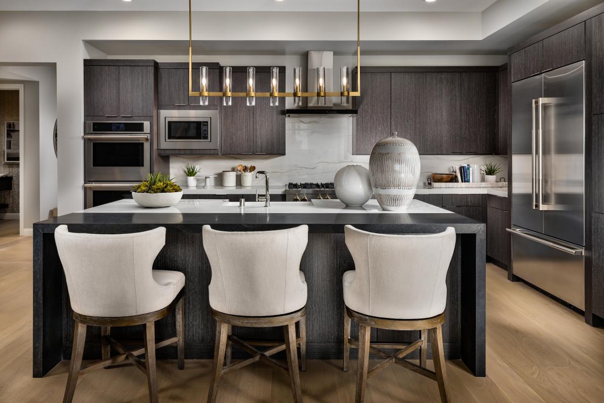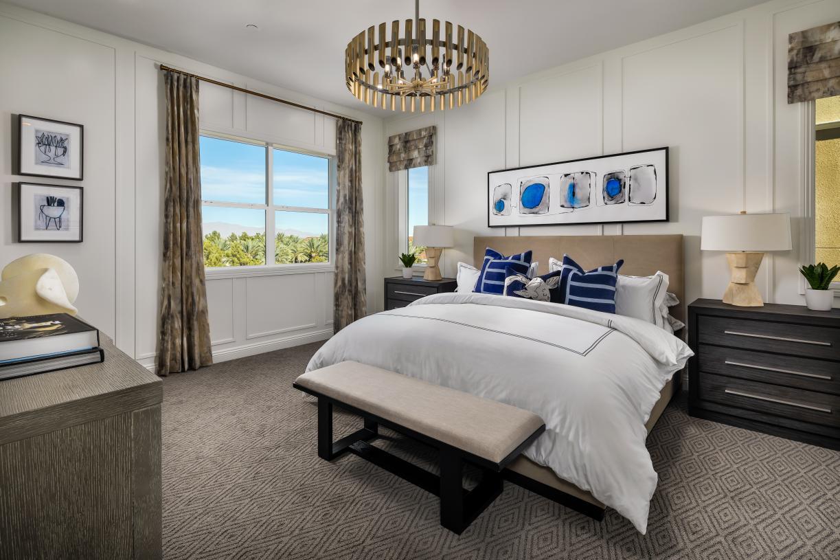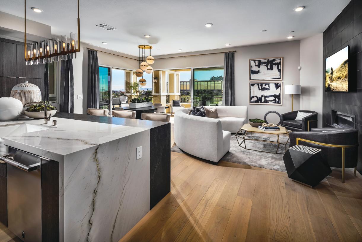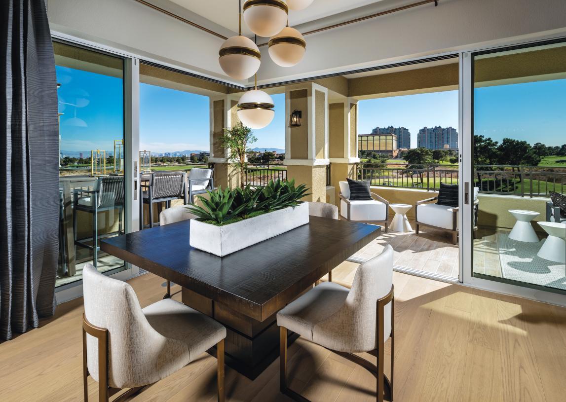 Located within the established Canyons Village of the Summerlin® master plan and overlooking the Angel Park championship golf course, Mira Villa is an elegant collection of 103 mid-rise luxury condominium homes. Home designs feature elevated single-level living, direct elevator access, gourmet kitchens, primary suites, private garage parking, and more. Recreational opportunities abound both in the surrounding community and within Mira Villa including a community pool, clubhouse, multiple spas and park areas, and access to The Canyons walking paths.