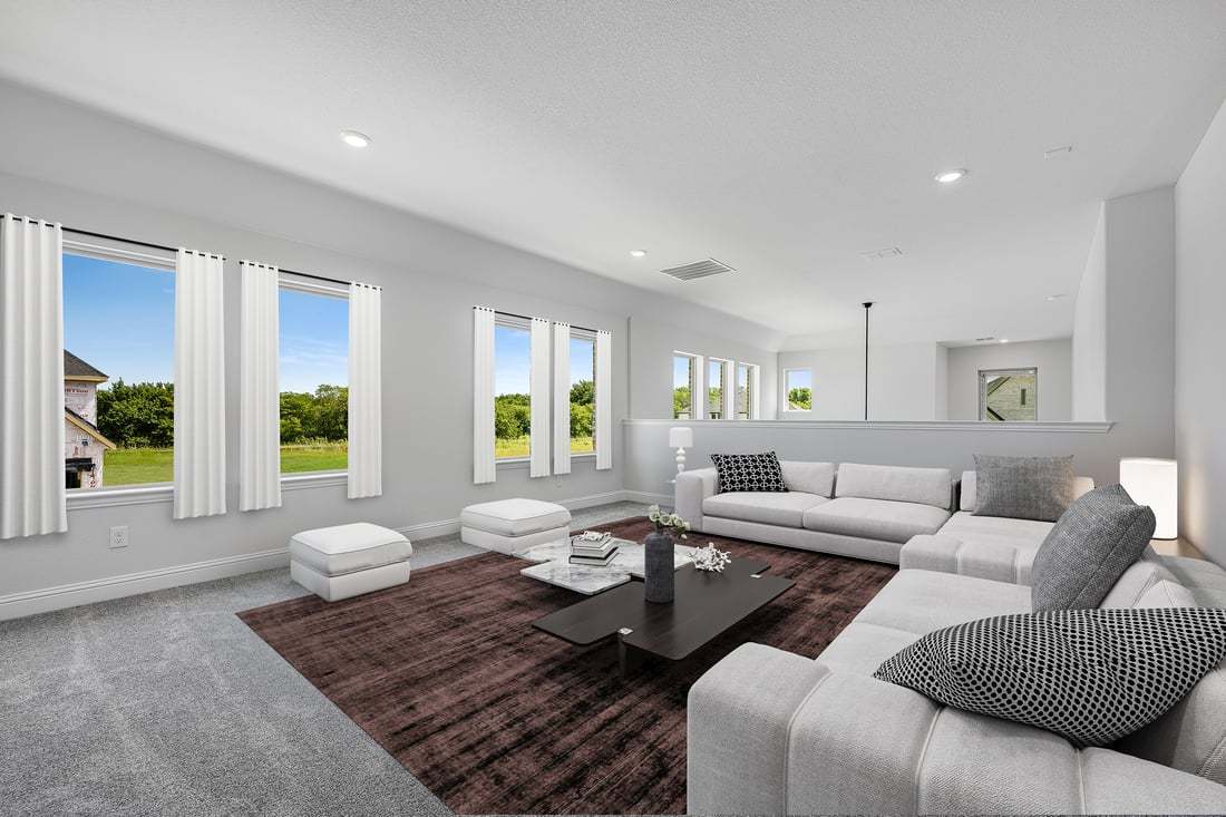 The homes at The Ranch at Uptown Celina 40s are low-maintenance, energy-efficient, and built with your lifestyle in mind. When you’re ready to venture outside, planned amenities await! These include two community centers with air-conditioned space, a shimmering pool with cabanas, a pond, open green spaces to roam, hiking and biking trails, a dog park and a playground.