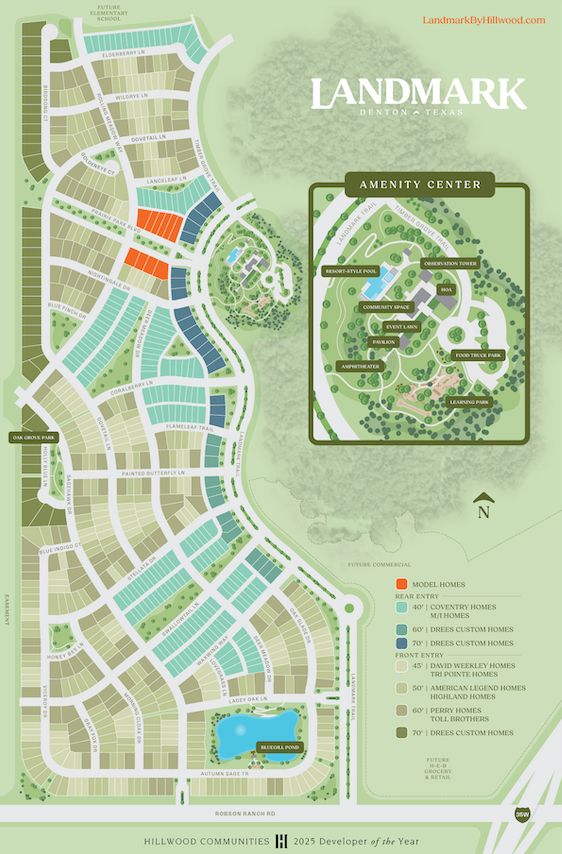 Welcome home to Hillwood's newest master planed community, Landmark, brings a harmonious blend of nature, outdoor entertainment, and retail opportunities! Landmark will feature a distinctive 1,100-acre green ecosystem anchored by a 300-acre entertainment and park district encompassing Pilot Knob and the surrounding hills. An interconnected trail system, acres of recreation areas, and signature parks will create an expansive opportunity for outdoor recreation in Denton.