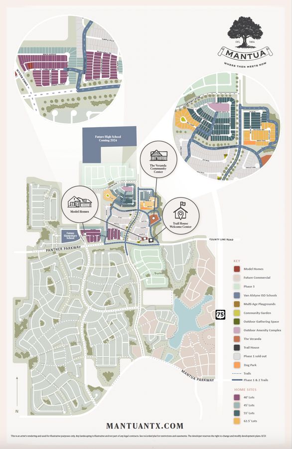 Located ten miles north of McKinney, Mantua Point is a nearly 3,000-acre master-planned community located in Van Alstyne. The community features vast parks, 274 acres of lakes and creeks, 25 miles of hiking and biking trails, an amenity center, as well as a resort-style pool and splash pad. The community is zoned for award-winning Van Alstyne schools! With extensive amenities and 380 acres of open space, Mantua Point is the perfect place to call home.