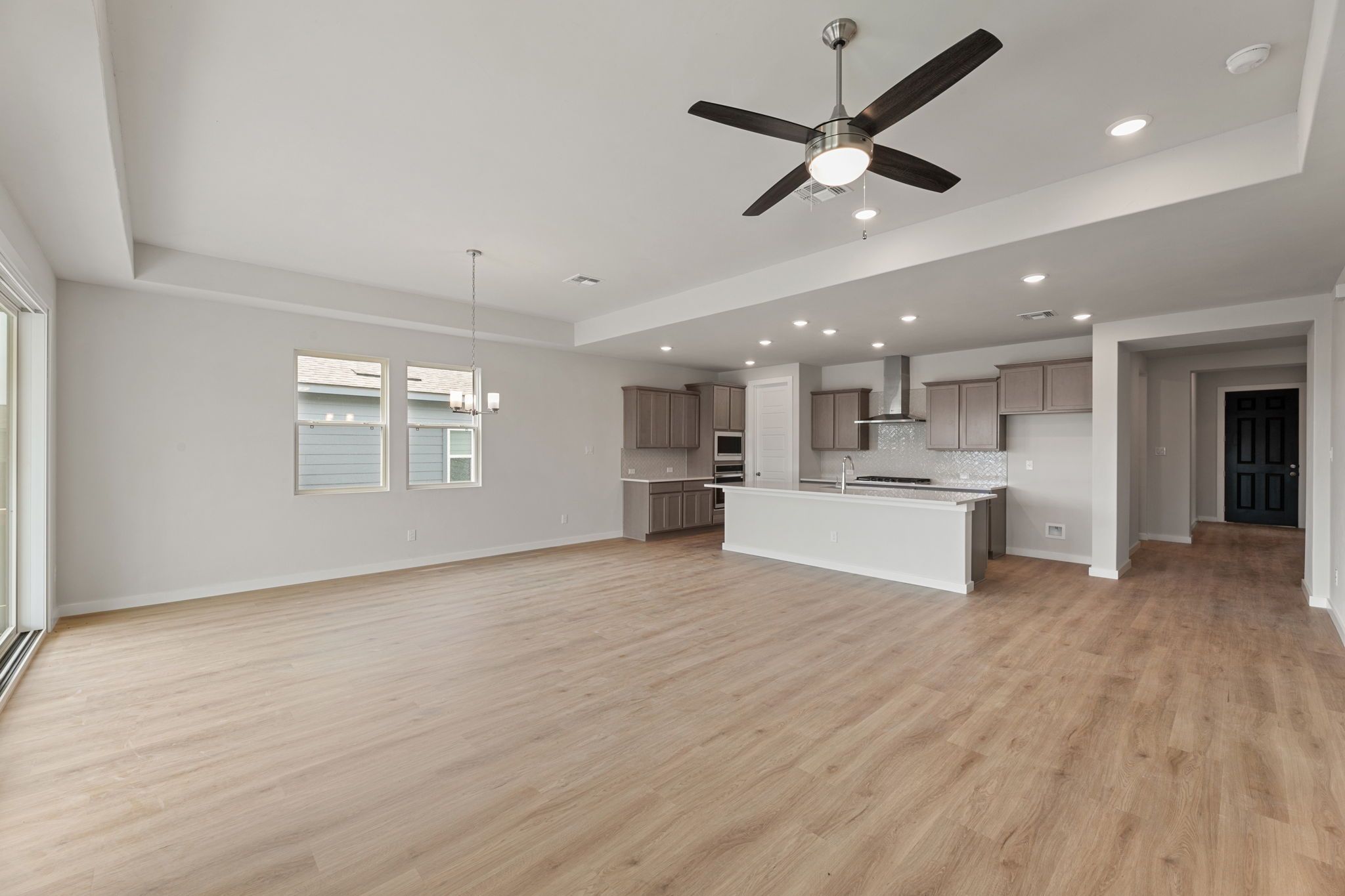 The Abilene floor plan is designed to combine modern style with practical functionality, offering a seamless layout perfect for families of all sizes. As you step onto the inviting front porch and enter the home, you’re welcomed by a thoughtfully arranged floor plan. At the entrance, two secondary bedrooms with a shared full bathroom are perfectly positioned to provide privacy and convenience for family members or guests. Continuing through the foyer, the home opens into a spacious, open-concept living area where the kitchen, dining room, and great room come together in harmony. The kitchen features sleek countertops, a central island, and ample cabinetry, making it as functional as it is stylish. The adjoining dining area offers a cozy yet elegant space for family meals, while the great r...