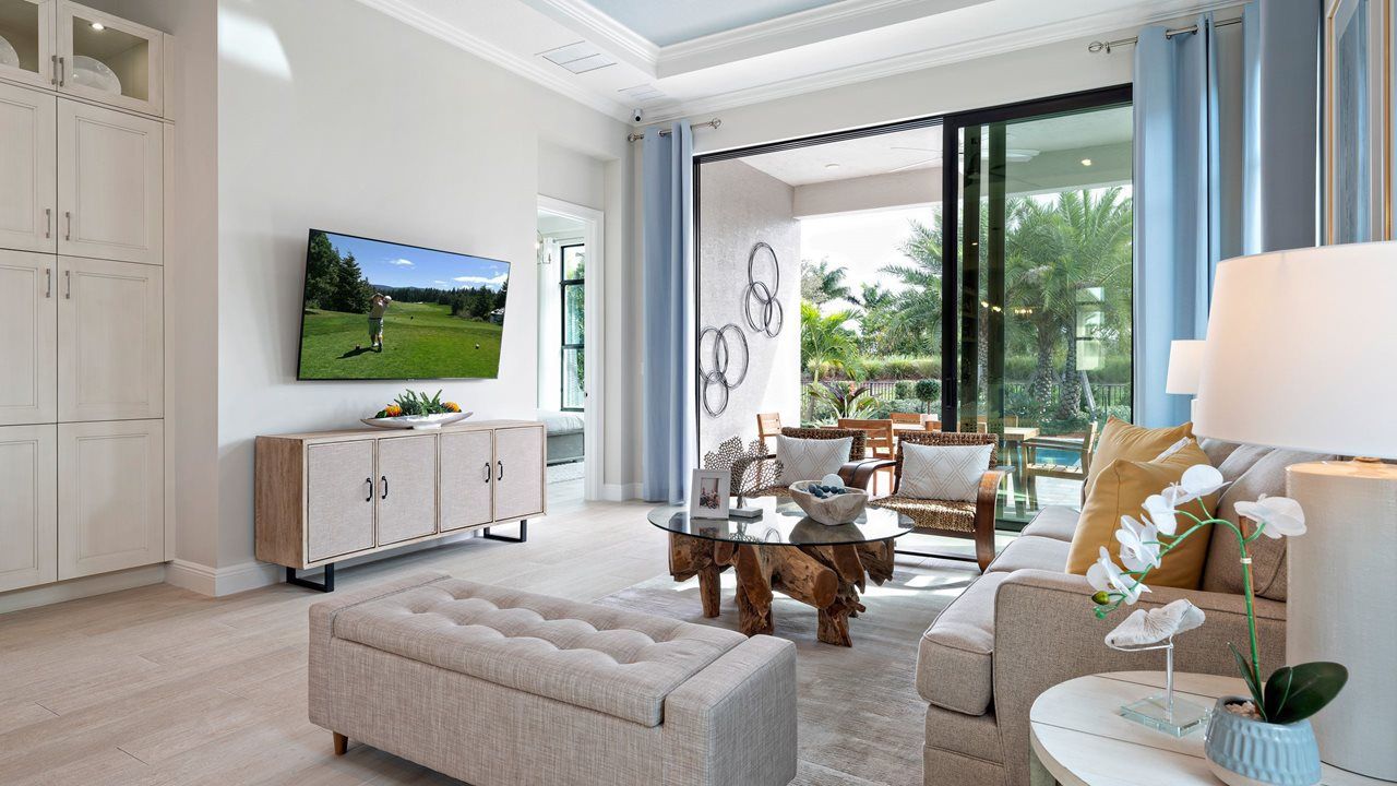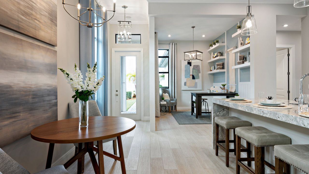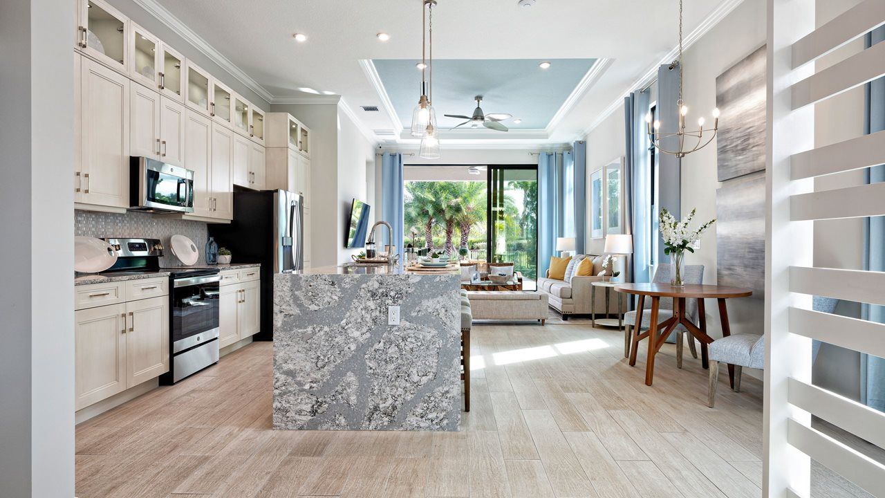 This flexible 2 Bedroom, 2 Bath home features a centrally located Kitchen overlooking an open floorplan that lets you live large in just the right amount of space. The Flex Room just off the Front Entry can be left open to increase your main living space or enclosed with an optional wall and double door to create a private fitness studio or home office space. This Flex space also features the option to be converted into a 3rd bedroom. You can personalize this floorplan with structural options, including Extended Lanai, Summer Kitchen, second-story Bonus Room, and more. To learn about all the ways you can have this home built around you, contact a PGA Village Verano New Home Guide.