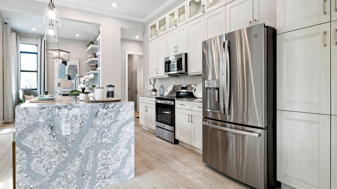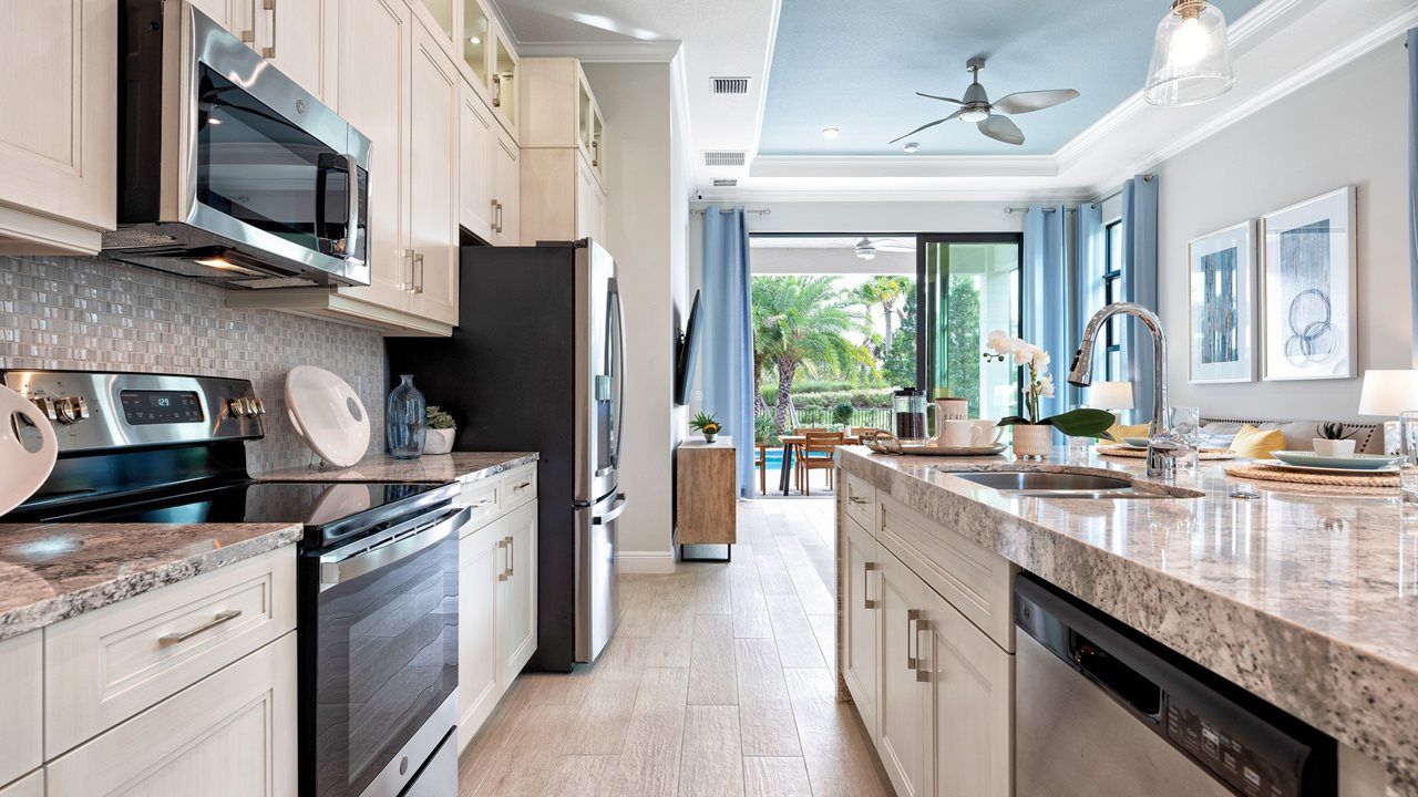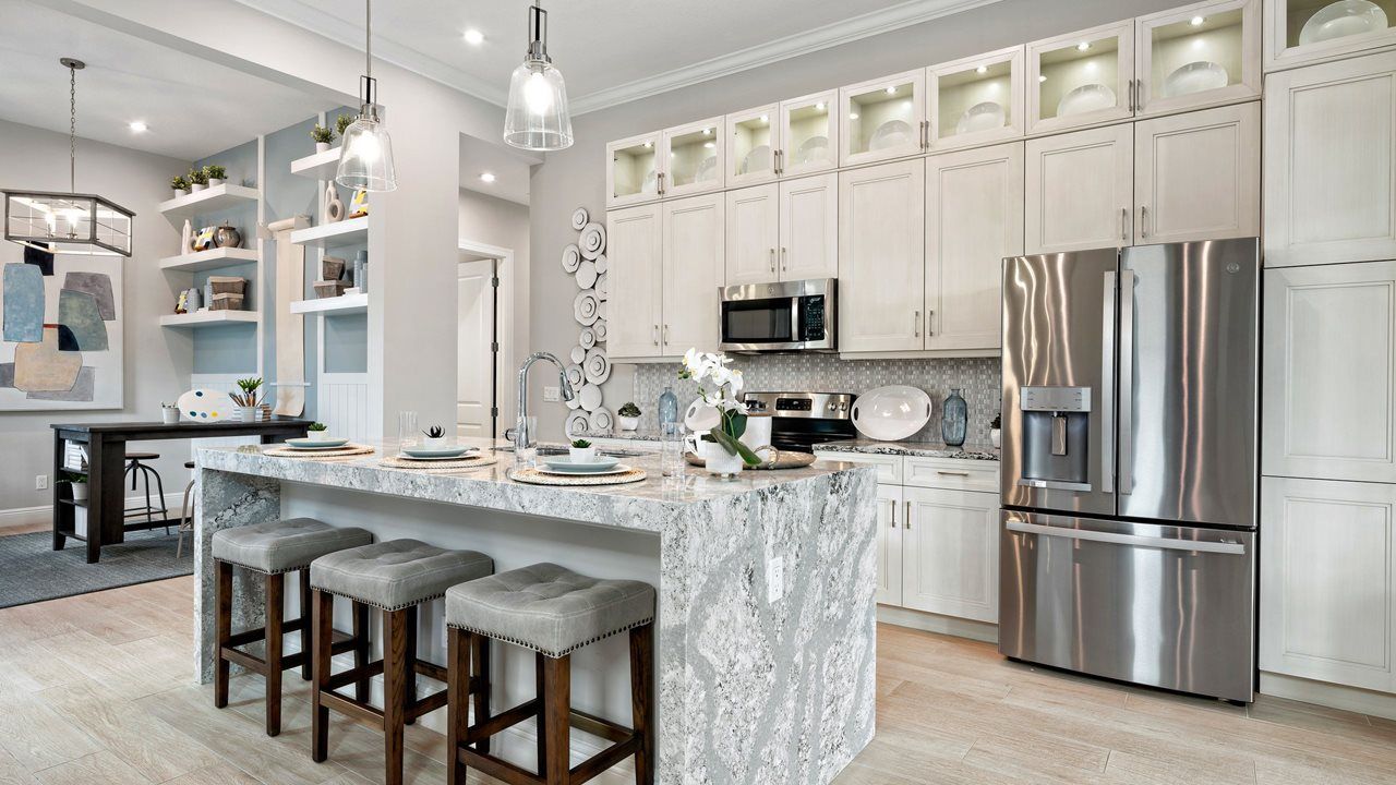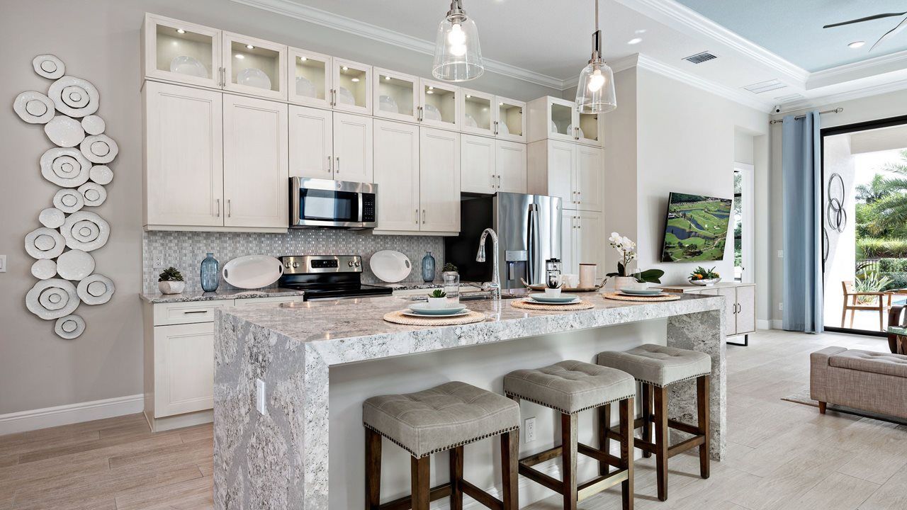 This flexible 2 Bedroom, 2 Bath home features a centrally located Kitchen overlooking an open floorplan that lets you live large in just the right amount of space. The Flex Room just off the Front Entry can be left open to increase your main living space or enclosed with an optional wall and double door to create a private fitness studio or home office space. This Flex space also features the option to be converted into a 3rd bedroom. You can personalize this floorplan with structural options, including Extended Lanai, Summer Kitchen, second-story Bonus Room, and more. To learn about all the ways you can have this home built around you, contact a PGA Village Verano New Home Guide.