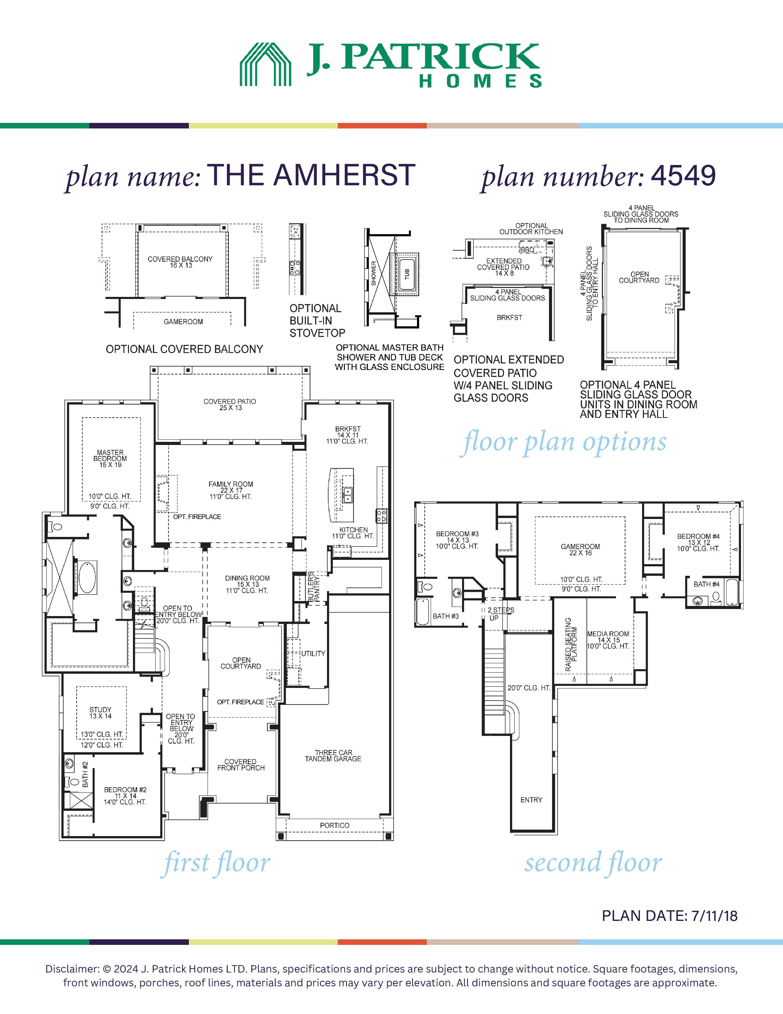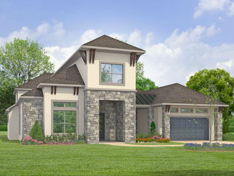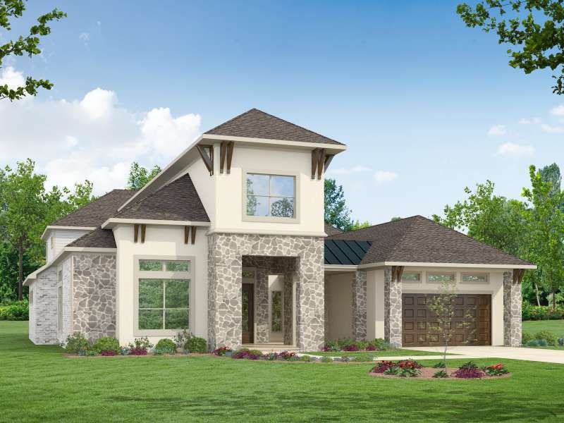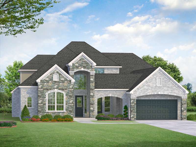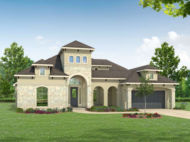 (2 Story) 4 Bedroom | 4.5 Bath | Master Down | Super Master Bath Retreat with Optional Glass Shower Wall | 2 Bedrooms Downstairs | Study | Optional Fireplace at Family Room | Island Kitchen | Game Room | Media Room | Optional Covered Balcony | Courtyard with Optional Outdoor Fireplace | Optional Sliding Doors at Courtyard | Covered Patio with Optional Extension and Sliding Doors to Breakfast Room | Optional Outdoor Kitchen | 3 Car Tandem Garage with Portico