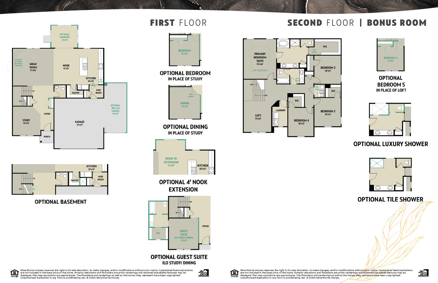 Starting at 2,600 square feet, The Arthur is built to please! This Silverthorne Homes floorplan is an excellent option for anyone looking to have a place to retreat to after an evening of fun with friends or family. This four bedroom and two-and-a-half bathroom floorplan with options to add an in-law suite and fifth bedroom is made to easily grow with you if needed. Choose from one of the many elevation options available to find your front porch that allows you to enjoy your new community. This new construction floorplan gives you the option to add a third car garage or a nook extension to give your home a little more space. Make The Arthur your own with optional upgrades throughout the home. As you enter off the front porch, you are greeted with an open study area that can be closed off...