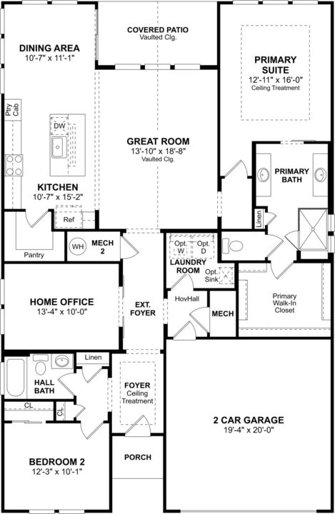 Kitchen with perfectly crafted cabinets and a center island for prepping meals. Spacious great room with vaulted ceiling. Relaxing primary suite with huge walk-in closet. Charming covered patio, perfect for entertaining. Comforting Home office, great for working remotely or private gym. HovHall providing additional storage and organization.