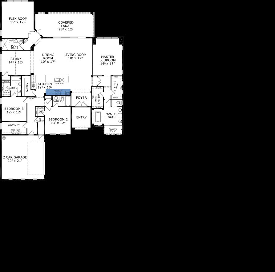 The Ava is a 3-bedroom, 3-bathroom home that seamlessly combines luxury and functionality in 3,045 square feet. Enter through a grand foyer to a spacious living room, dining area, and gourmet kitchen featuring ICI’s Kitchen Deluxe upgrade. A covered lanai invites outdoor living, with options for a summer kitchen. The private master suite boasts a spa-like bath and extended walk-in closet. With a study, game room, and two additional bedrooms, there’s room for everyone. At ICI Homes, customization is key – let us tailor the Ava to make it truly yours.