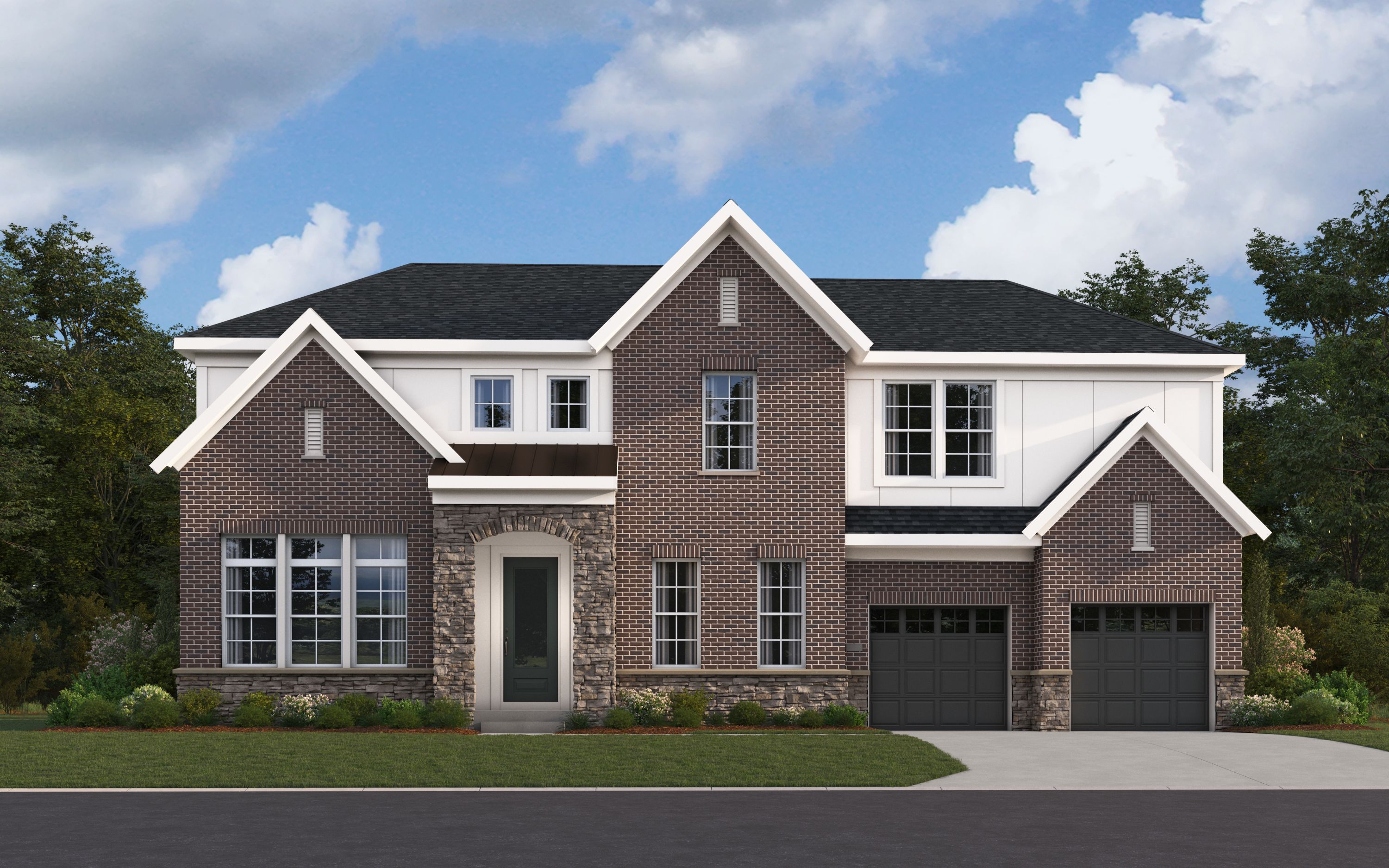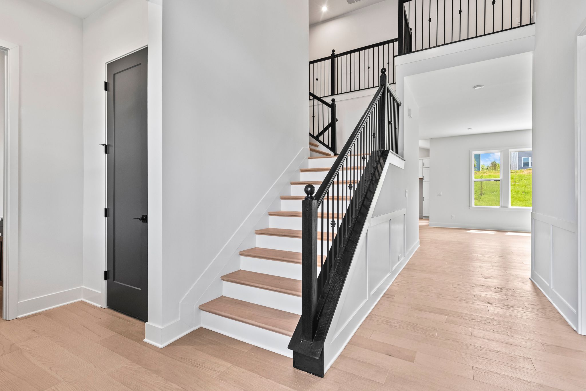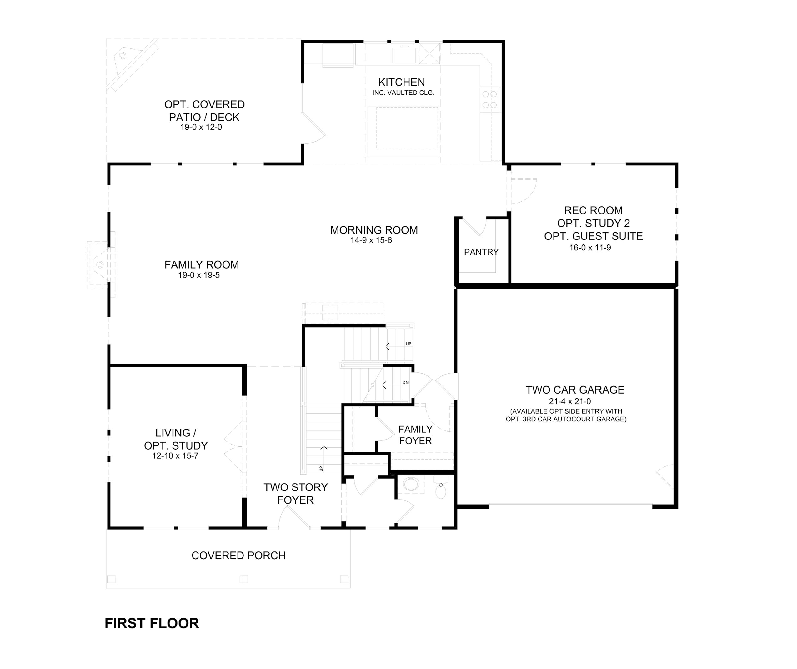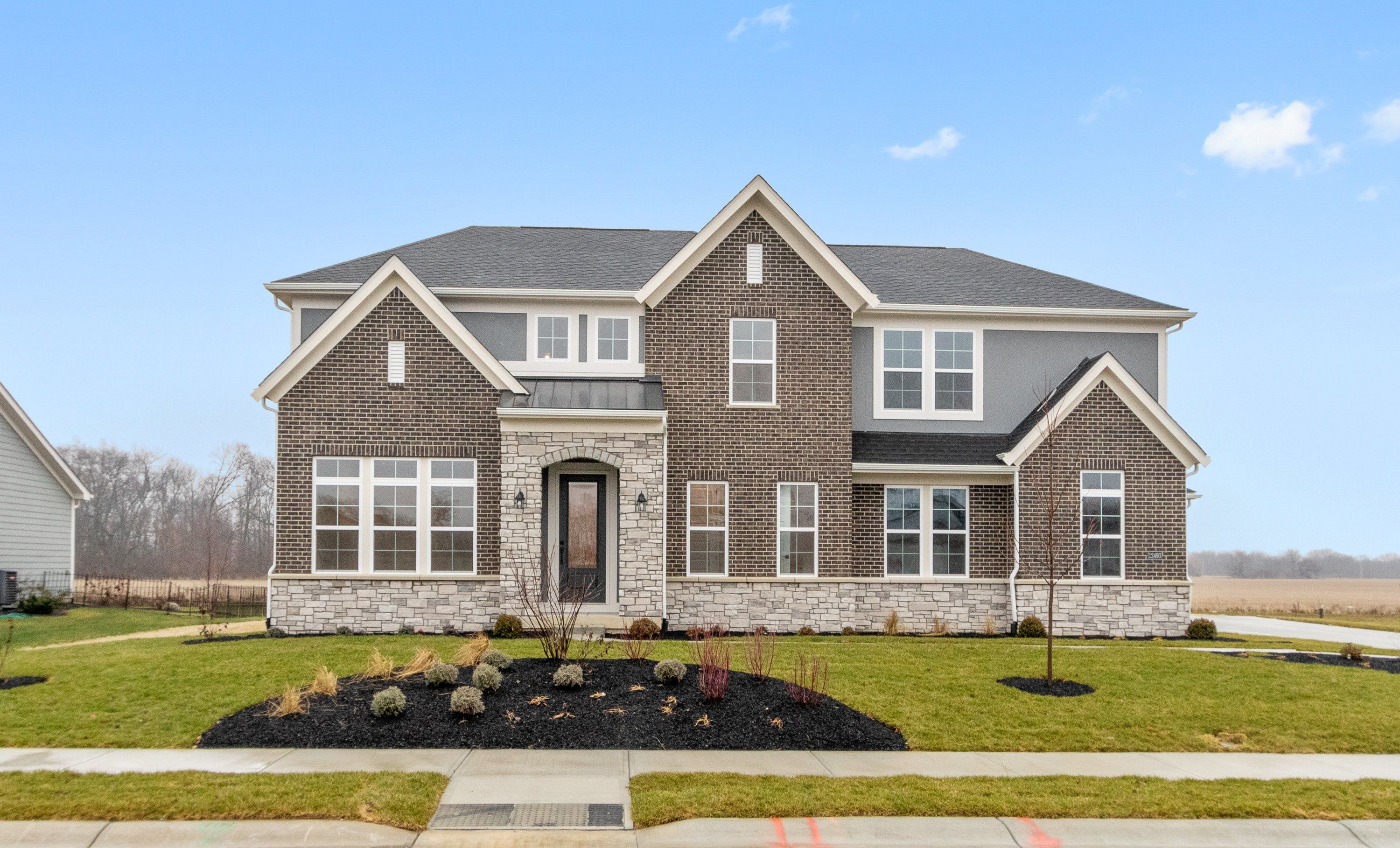 The Beckett by Fischer Homes offers a grand and thoughtfully designed layout with 10-foot ceilings on the first floor, creating a spacious and open feel. The home features a stunning two-story foyer with a unique three-way staircase, adding architectural charm. The light-filled rear kitchen boasts a vaulted ceiling and a tall window wall, creating an airy and inviting space. An included recreation room can be upgraded to a guest suite for added flexibility. Upstairs, large secondary bedrooms offer ample closet space, with options for a shared bath or a private full bath for Bedroom 4. The Beckett combines elegance and versatility, making it perfect for modern living.