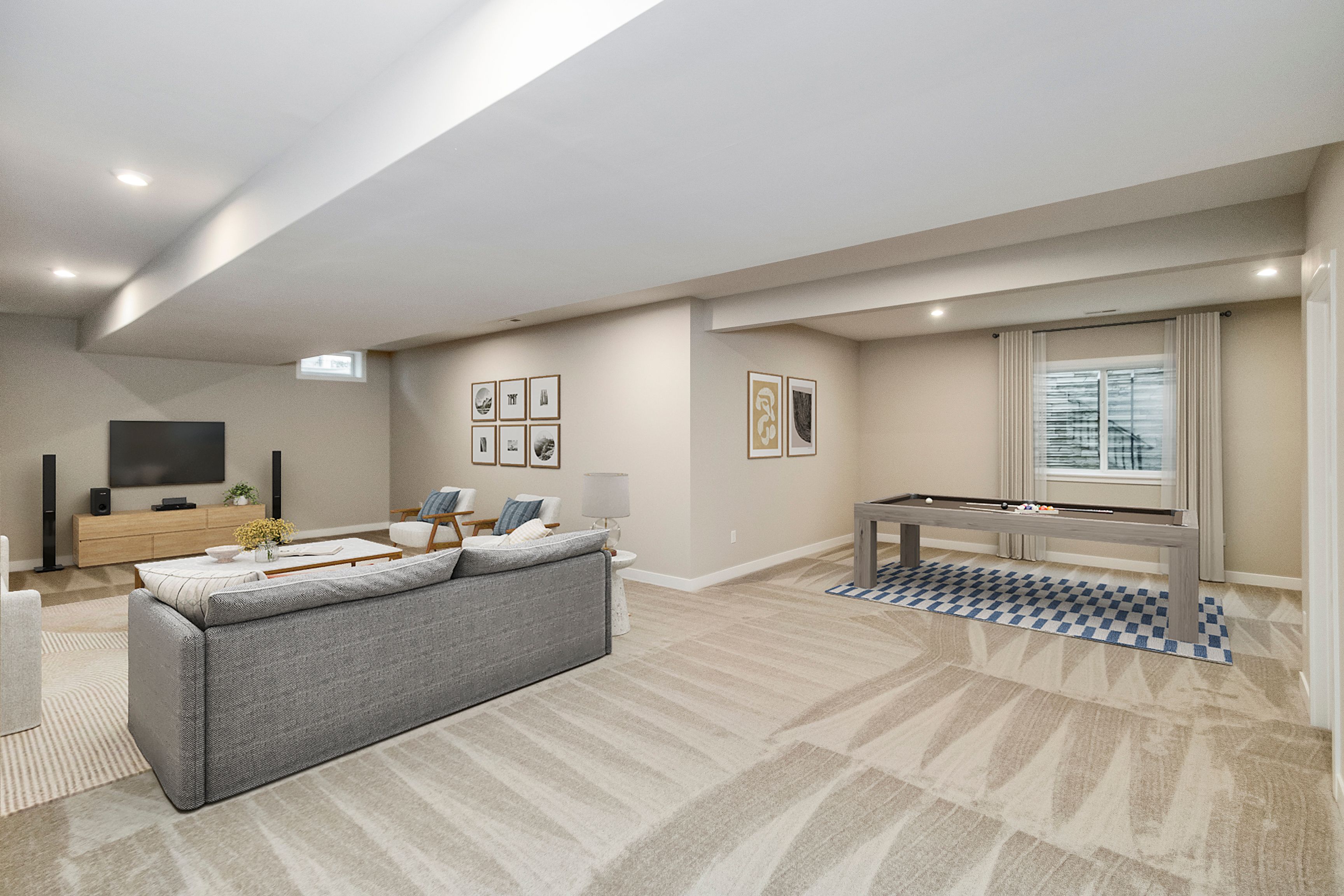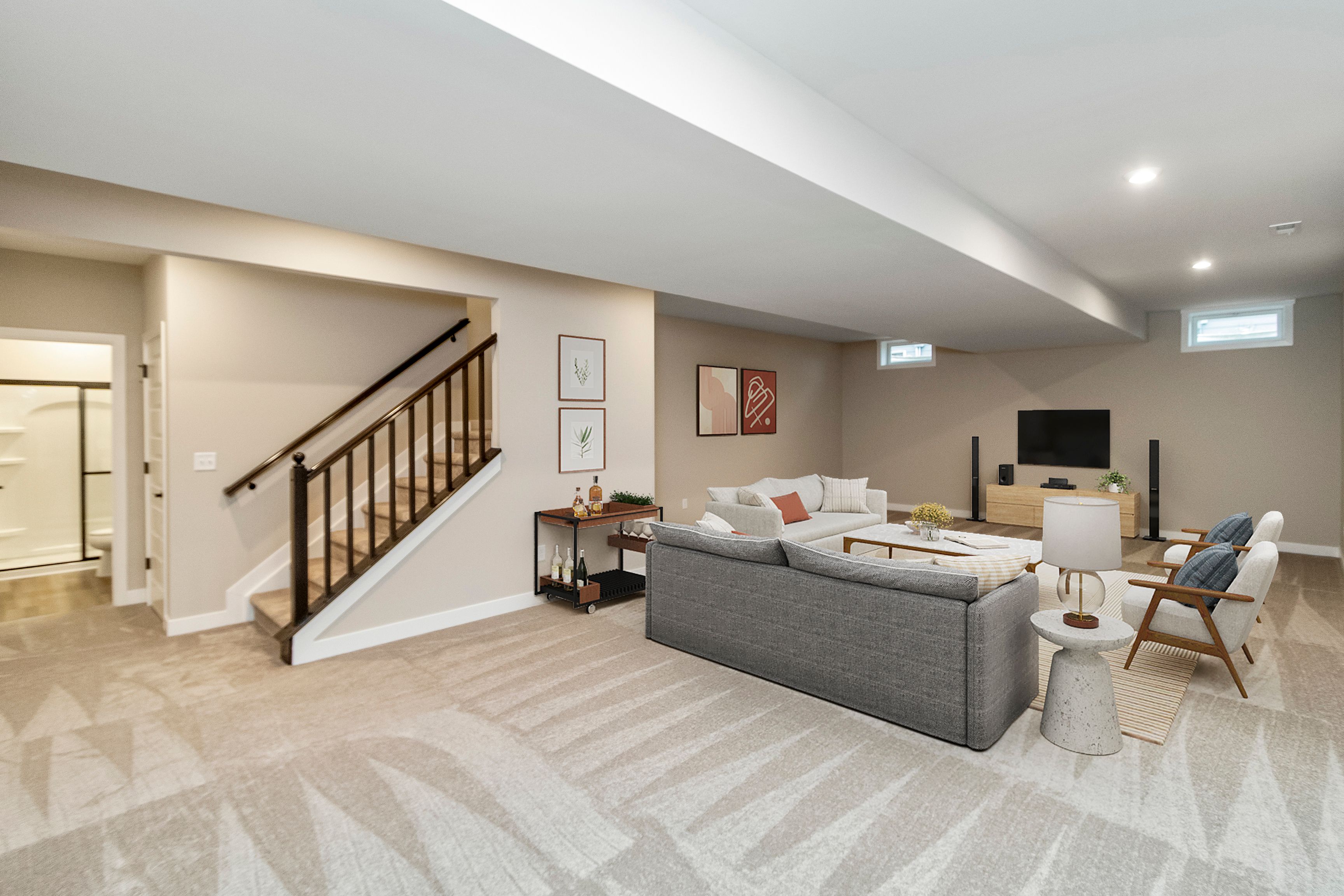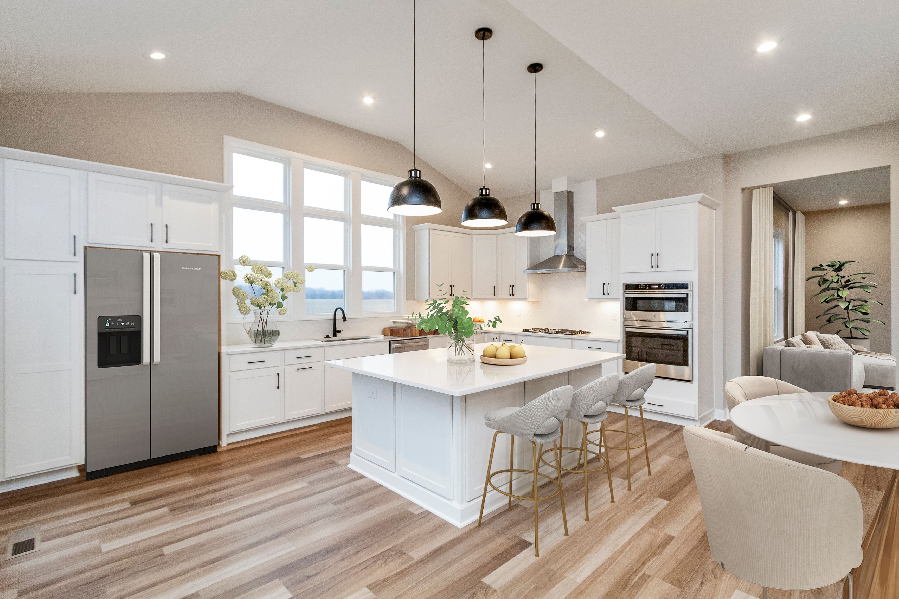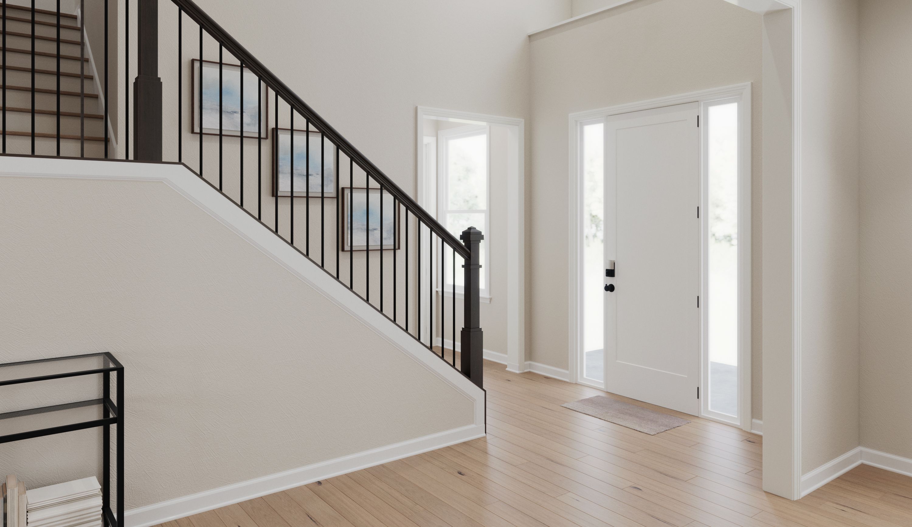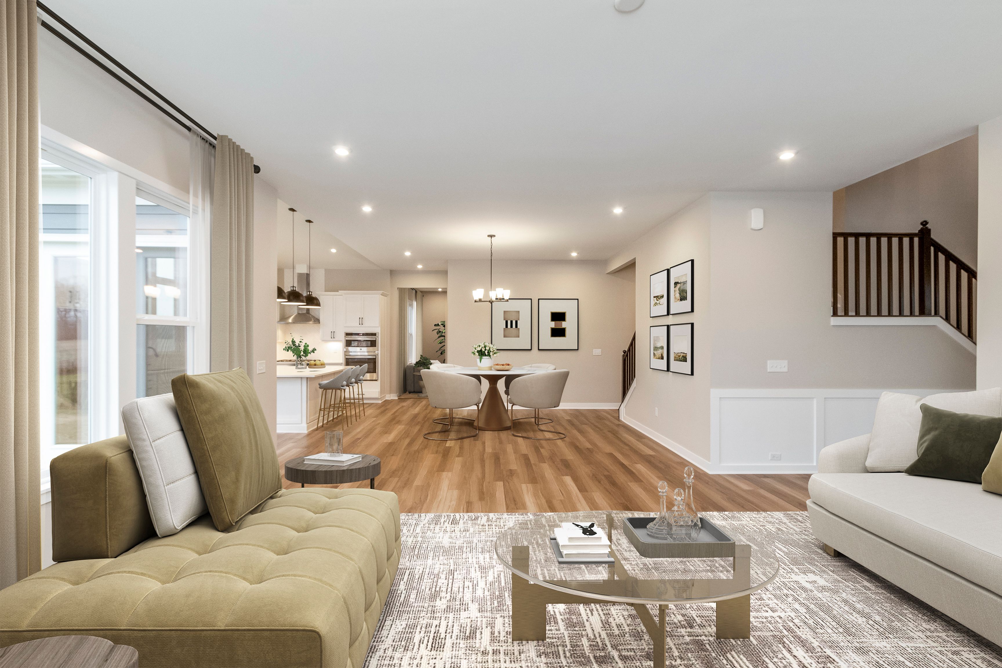 The Beckett by Fischer Homes offers a grand and thoughtfully designed layout with 10-foot ceilings on the first floor, creating a spacious and open feel. The home features a stunning two-story foyer with a unique three-way staircase, adding architectural charm. The light-filled rear kitchen boasts a vaulted ceiling and a tall window wall, creating an airy and inviting space. An included recreation room can be upgraded to a guest suite for added flexibility. Upstairs, large secondary bedrooms offer ample closet space, with options for a shared bath or a private full bath for Bedroom 4. The Beckett combines elegance and versatility, making it perfect for modern living.