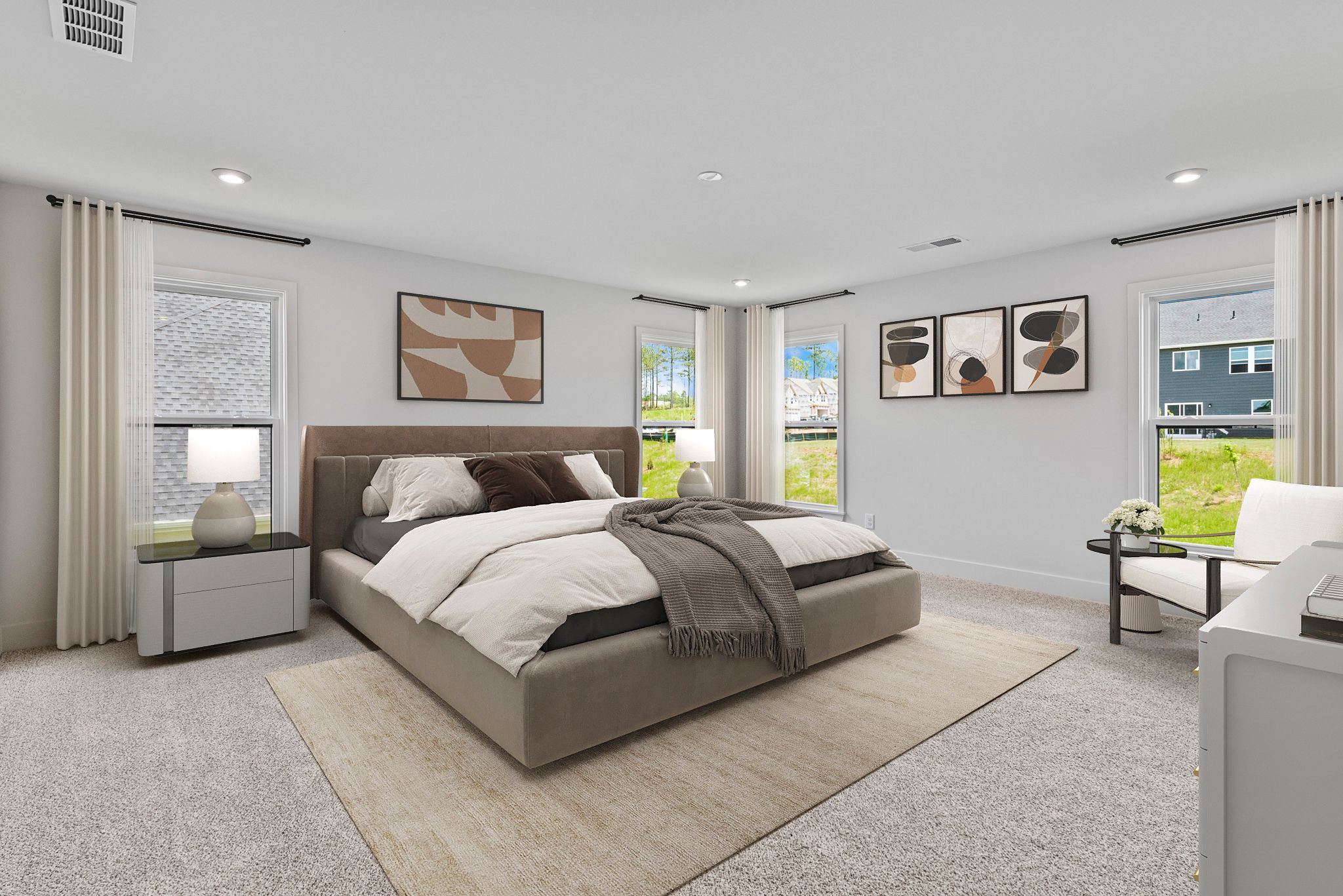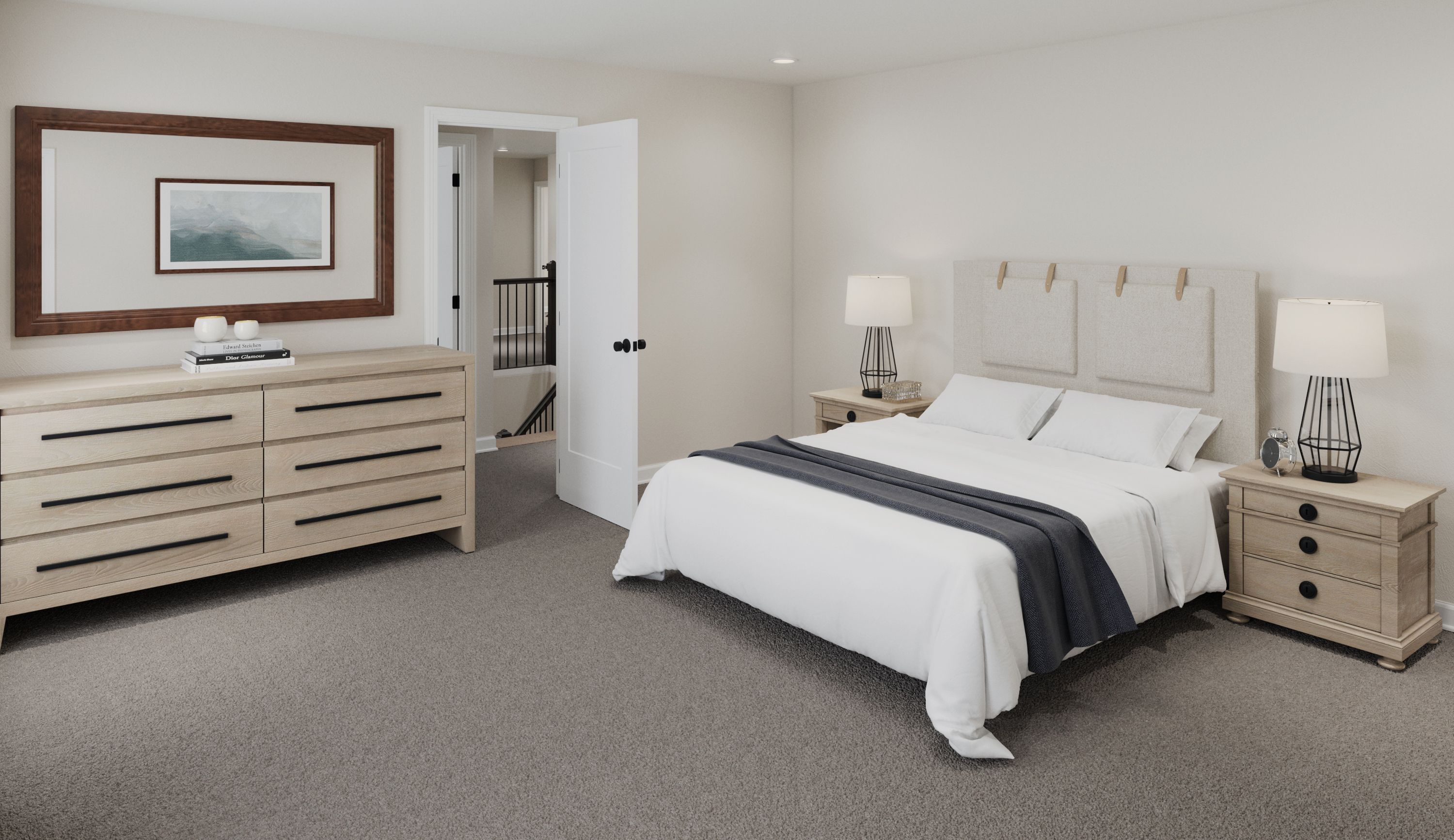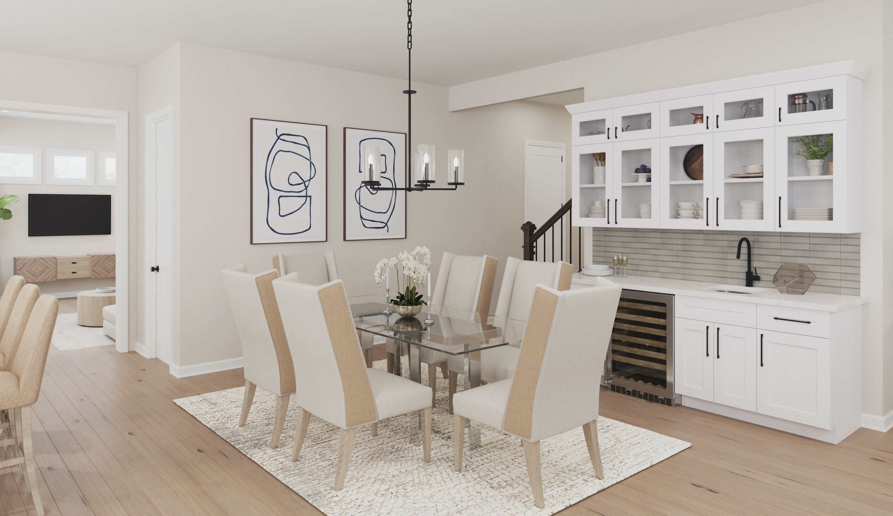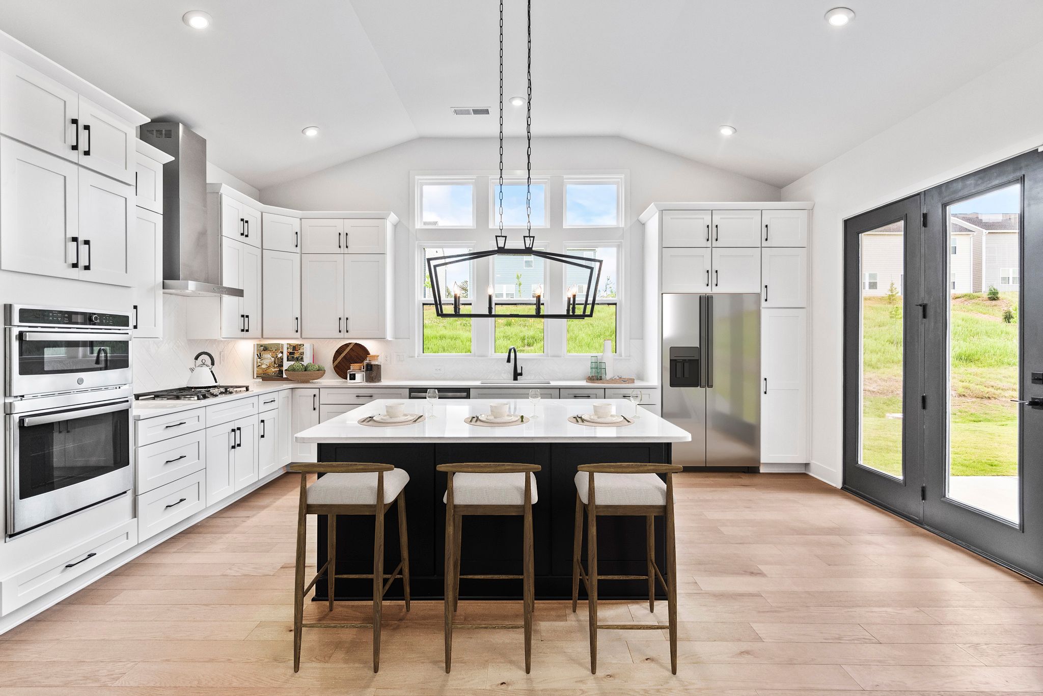 The Beckett by Fischer Homes offers a grand and thoughtfully designed layout with 10-foot ceilings on the first floor, creating a spacious and open feel. The home features a stunning two-story foyer with a unique three-way staircase, adding architectural charm. The light-filled rear kitchen boasts a vaulted ceiling and a tall window wall, creating an airy and inviting space. An included recreation room can be upgraded to a guest suite for added flexibility. Upstairs, large secondary bedrooms offer ample closet space, with options for a shared bath or a private full bath for Bedroom 4. The Beckett combines elegance and versatility, making it perfect for modern living.