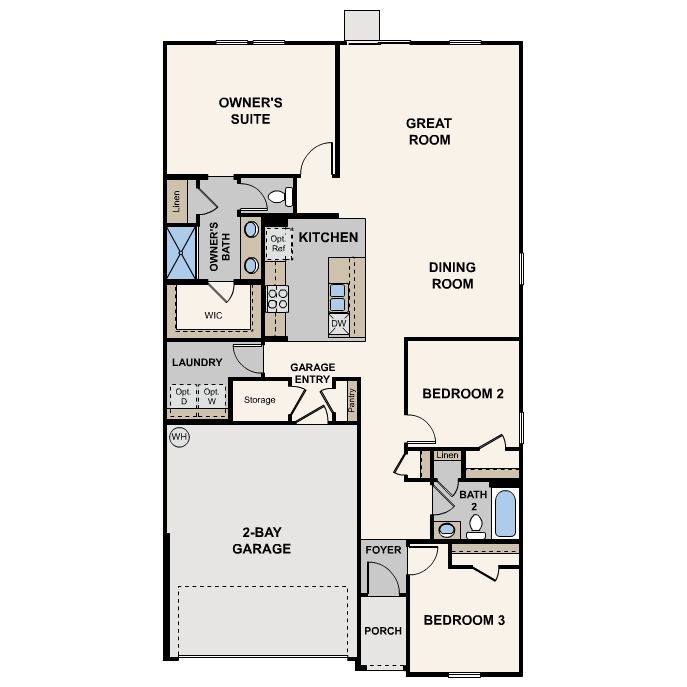 The Brant floor plan brings modern style to life! The home centers around an open-concept layout with a spacious great room, a dining area, and an open kitchen—ideal for entertaining. Two bedrooms bookend a bath at the front of the home, while the owner’s suite is secluded toward the back. Boasting a walk-in closet and a private bath with dual vanities and a walk-in shower, it’s the perfect place to rest and recharge.