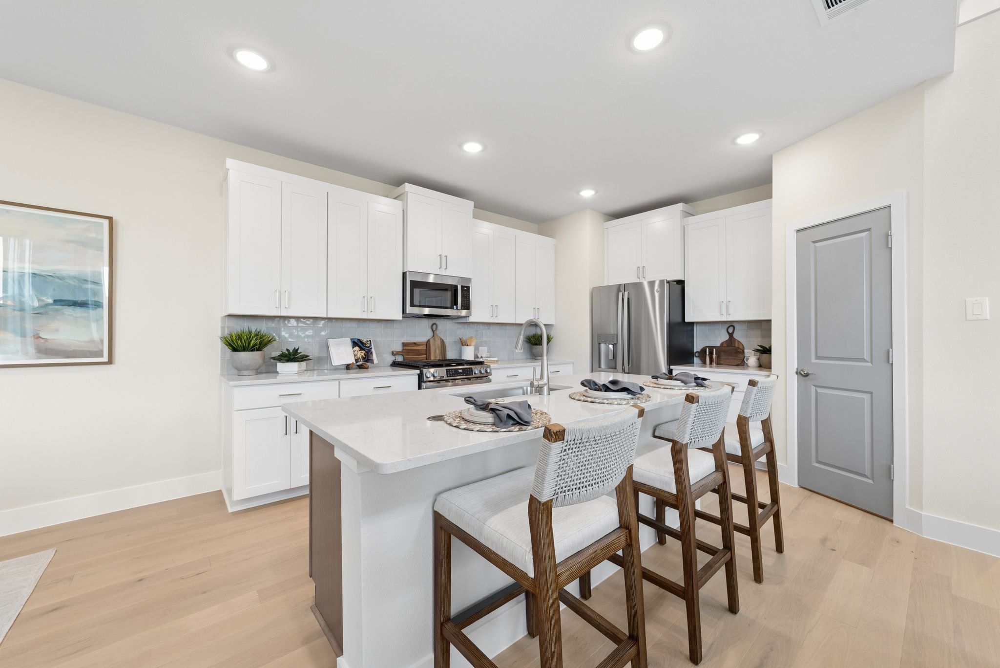 The Broadway elevates townhome living with an open-concept design filled with natural light. The master bedroom offers a luxurious retreat complete with a spacious walk-in closet, while the upstairs game room provides a flexible space for work, play, or relaxation. Enjoy a unique single-family home feel with the Broadway’s private fenced yards. Crafted with modern comfort and style in mind, the Broadway blends sophistication and functionality for a truly refined living experience.