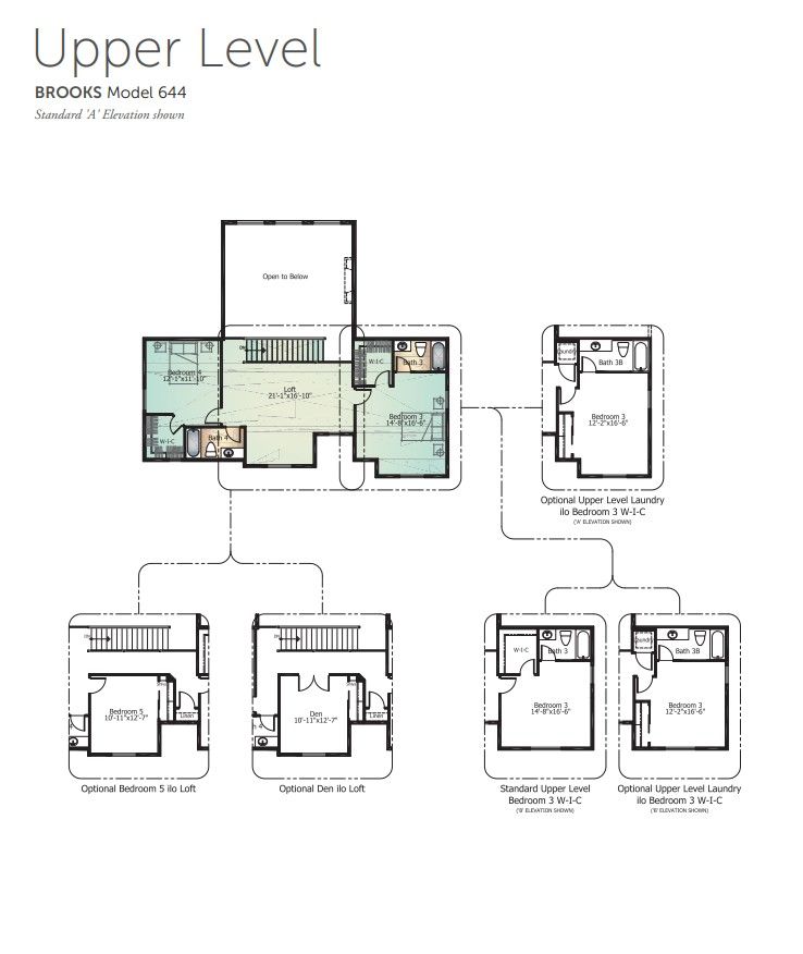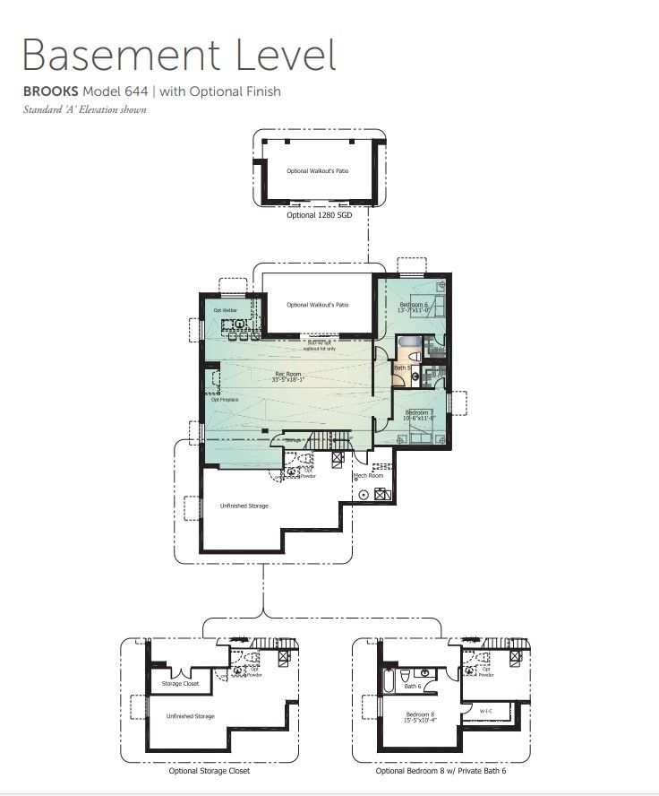 The Brooks w/ basement is a “to be built” home and includes 3 beds, 2.5 baths, loft, dual garages (3-car total), open concept Great Room, and covered patio. Options include finished basement, up to 8 beds and 6.5 baths, 12' RV garage, dual studies, formal dining room, scullery kitchen with expanded pantry, upper-level laundry, rec room, powder bath, and private basement suite. For cleaner floor plans and more photos please visit builder website.