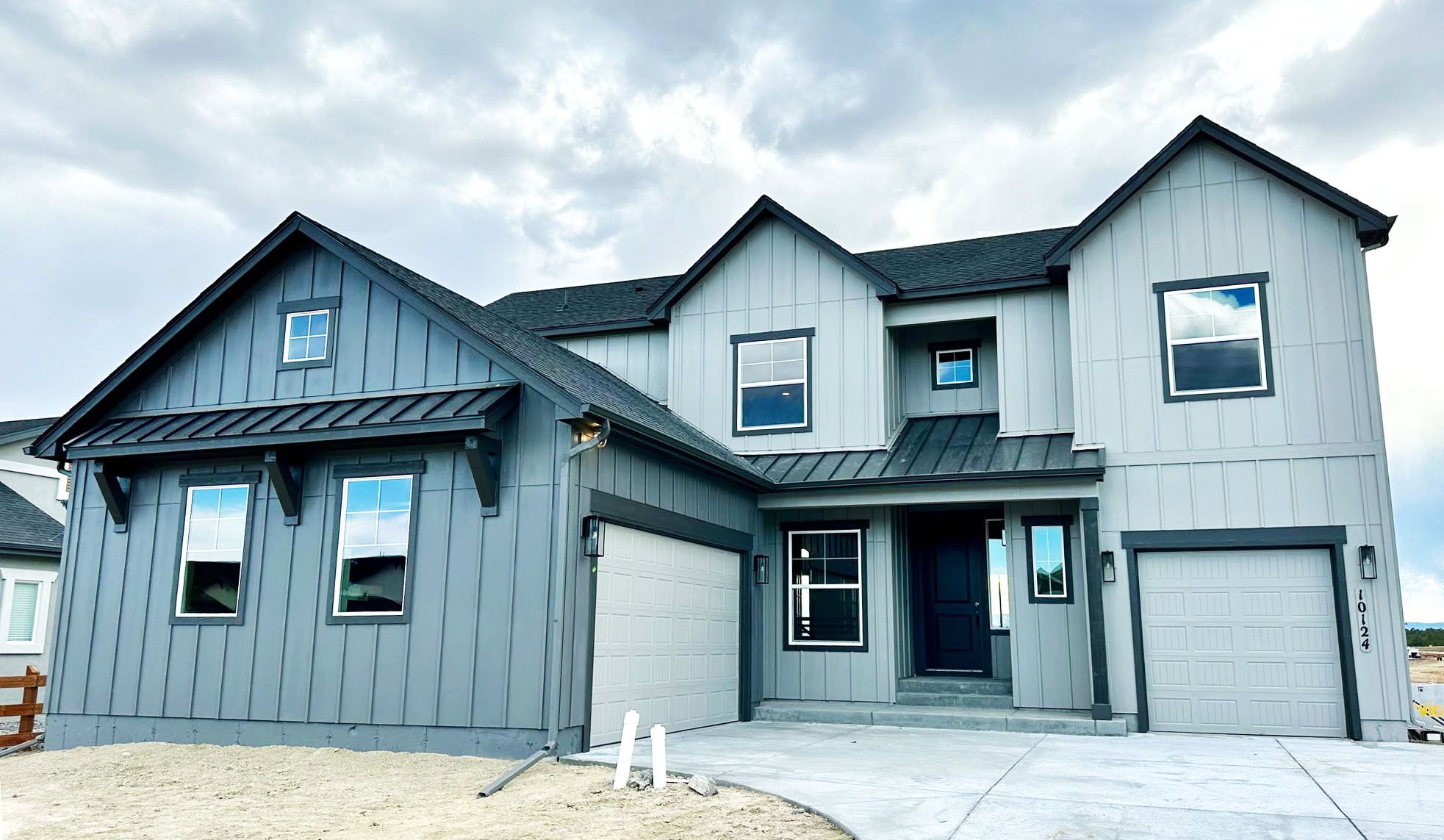 From I-25, exit #151 at Briargate Pkwy. Follow east 1 mile past Powers Boulevard. Left (north) at the third round-a-bout onto Wolf Lake Drive. Turn right on Miro Lane, then first Left on Hudson Yard Drive. The model is located on the corner at 10502 Hudson Yard Drive.
