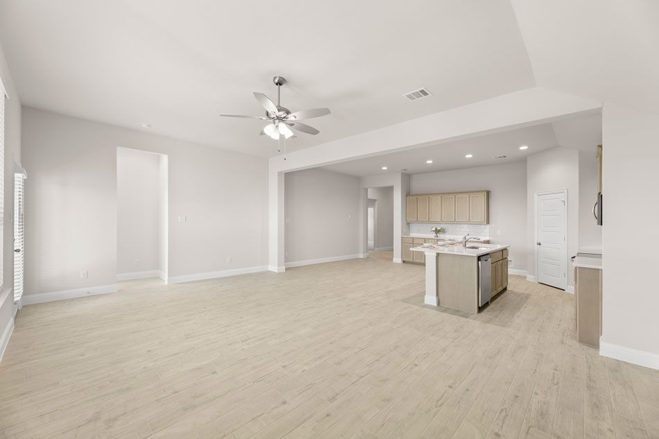 The Cambridge is a great plan for entertaining! Beautiful entryway and open-concept living space, this plan features a spacious California kitchen with ample counter space for the chef of the home, a big walk-in pantry and a large family room with natural lighting. The private owner’s suite has a Texas-sized walk-in closet. A spacious utility room, coat closet and linen closet provide additional storage space. This plan also offers a covered patio for those Texas summer BBQs.
