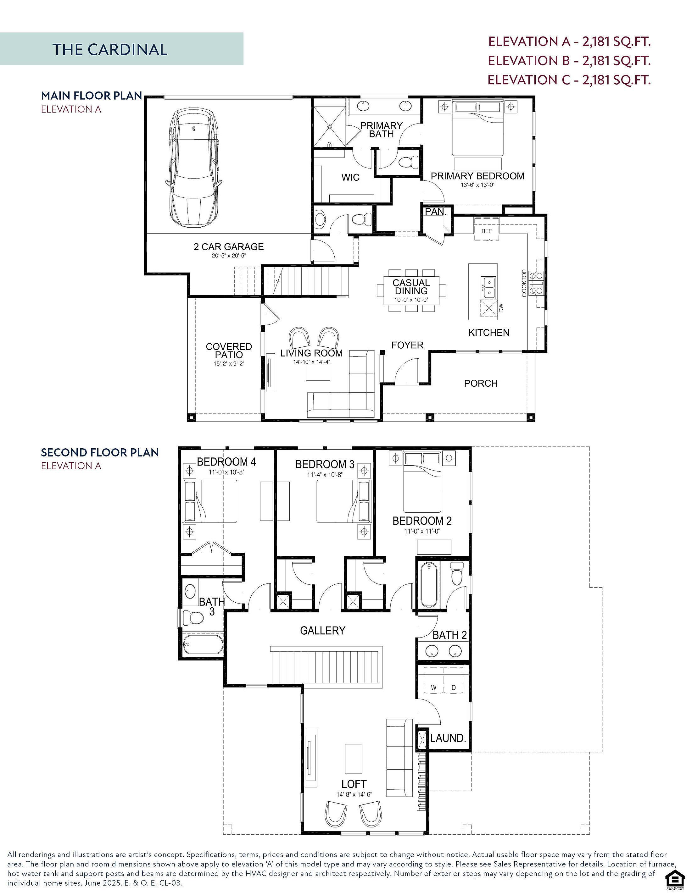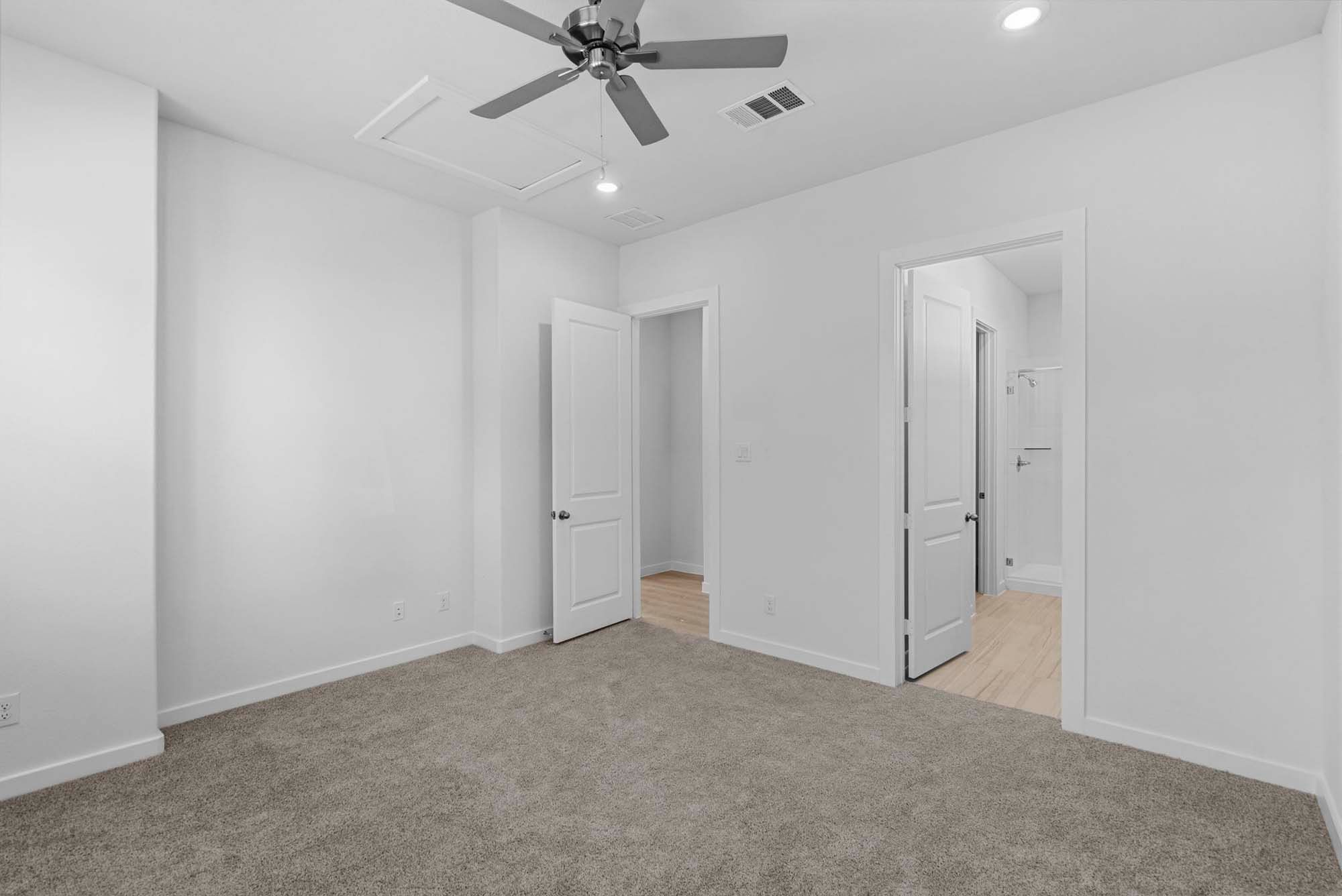 The Cardinal offers an expansive 2,181 square feet of flexible living space across two stories, thoughtfully designed for comfort and flow. The main floor features a spacious open-concept kitchen and dining area, complete with a walk-in pantry and oversized island, seamlessly connecting to the living room and a covered patio—perfect for entertaining. The private primary suite is also located downstairs and includes a large walk-in closet and a luxurious en suite with dual vanities and a glass-enclosed shower. Upstairs, a bright loft anchors three secondary bedrooms, each with easy access to two full bathrooms and a central gallery-style hallway. With finishes like quartz countertops, vinyl plank flooring in common areas, LED lighting, and energy-efficient systems, the Cardinal combines sty...