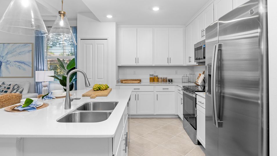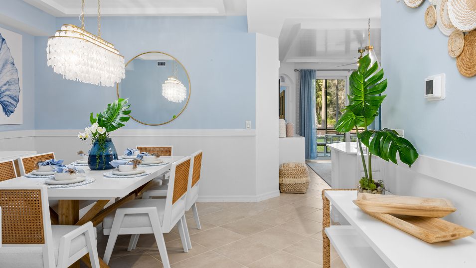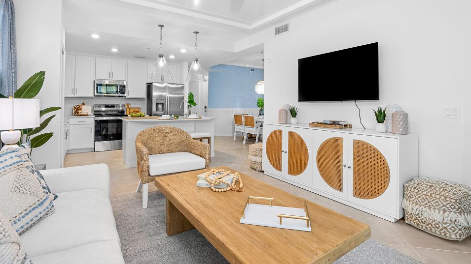 This single-story condo is the largest plan in the collection. Near the foyer are a guest bedroom and den, which can also double as a bedroom. The kitchen has a dining room tucked to the side and opens to the living room with access to a lanai. The owner’s suite is situated toward the back of the home for privacy, complete with an attached bathroom and walk-in closet. Tee off on the 18-hole Gordon Lewis-designed course and relax at the nearly 17,000 sq. ft. clubhouse with on-site dining. Enjoy the vastness of the fitness and spa amenities and resort-style pool area for ultimate relaxation. Bundled social memberships available!