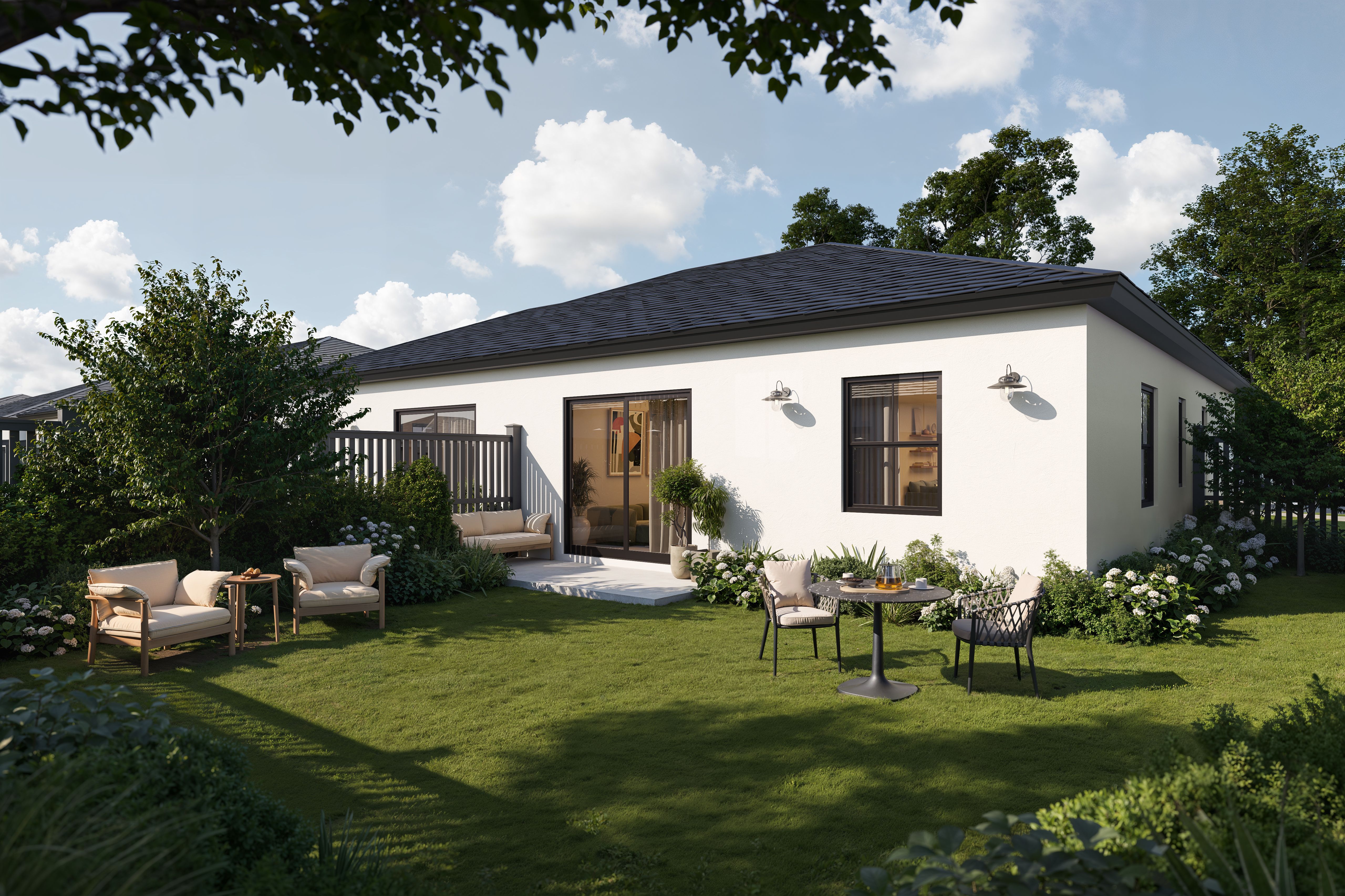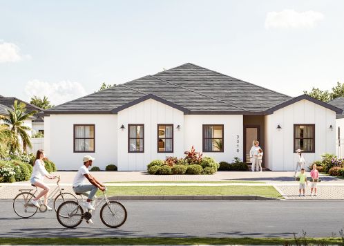 Chelsea is the art of single-story living done right. This 3-bedroom, 2-bathroom twin home thoughtfully designed space all on one level, with zero compromise on comfort or style. Your arrival begins under a private covered entry that sets the tone before you even open the door. Step through into a welcoming foyer and feel the home open up immediately — the living room, a generous, light-filled space that anchors the entire floor plan. The adjacent kitchen, finished in a modern styled cabinetry with quartz countertops and stainless steel appliances, sits at the heart of the home, connecting seamlessly to both the living area and the dedicated laundry room. A rear patio extends the living experience outdoors, perfect for South Florida's year-round sunshine. The bedroom wing is where Chel...