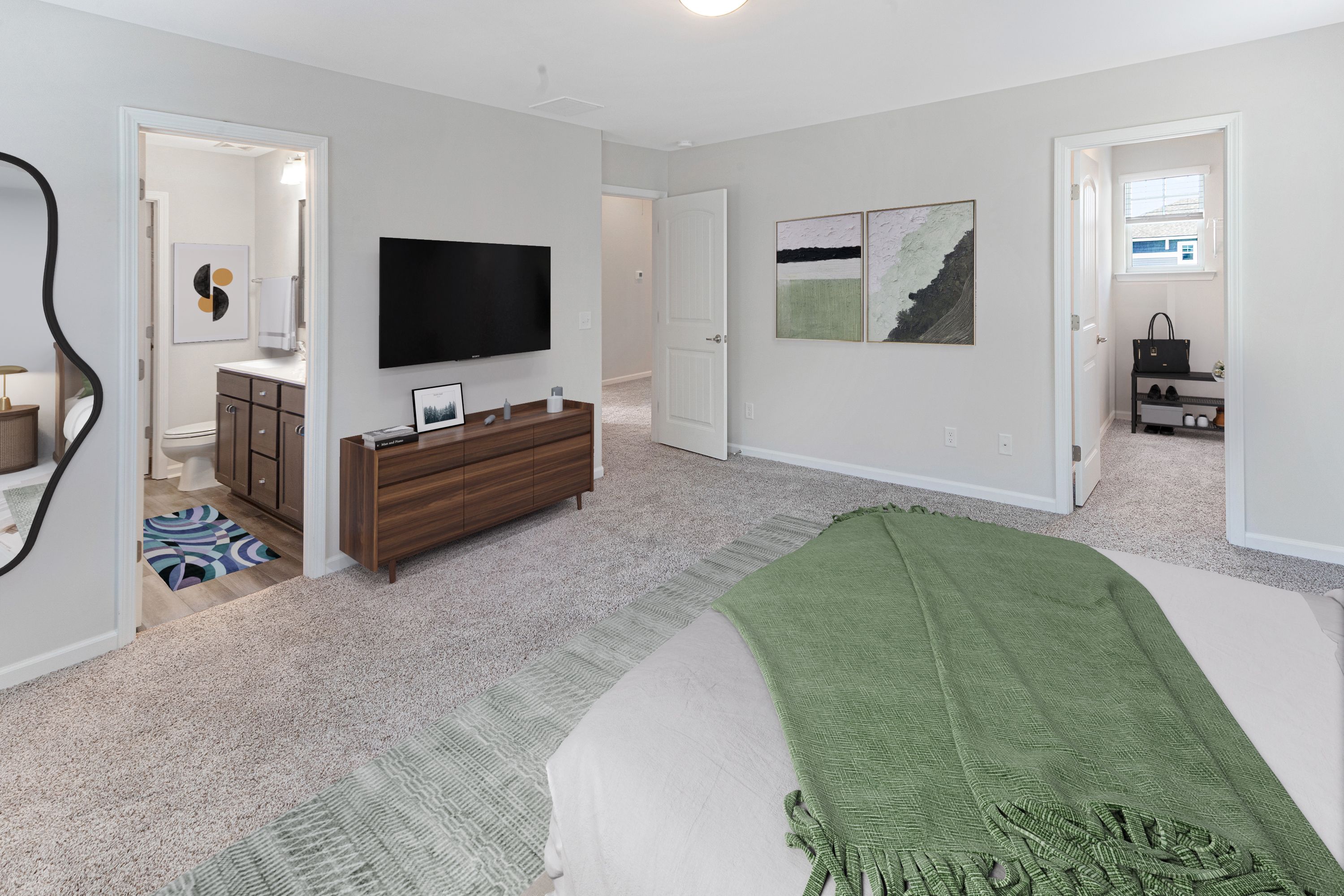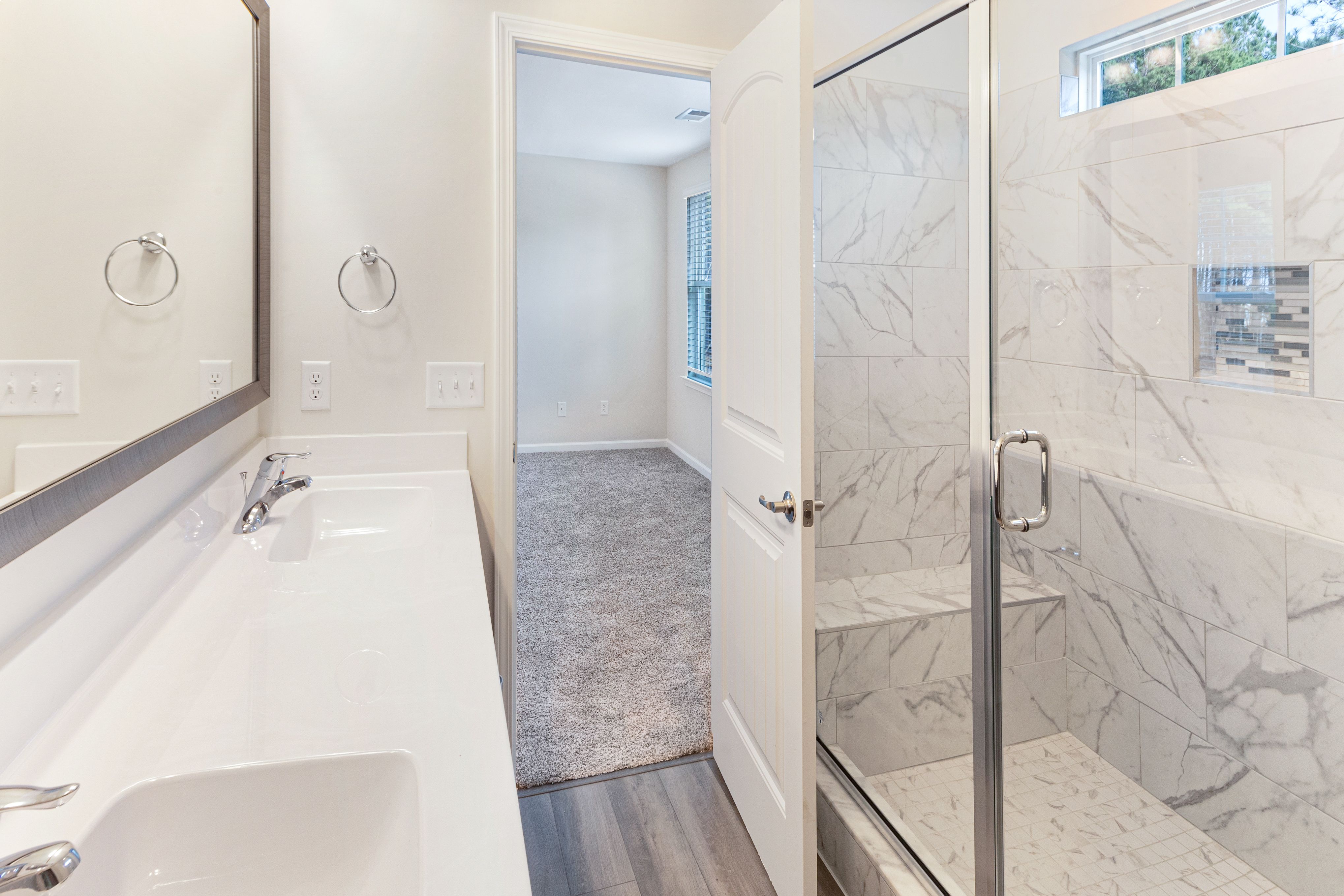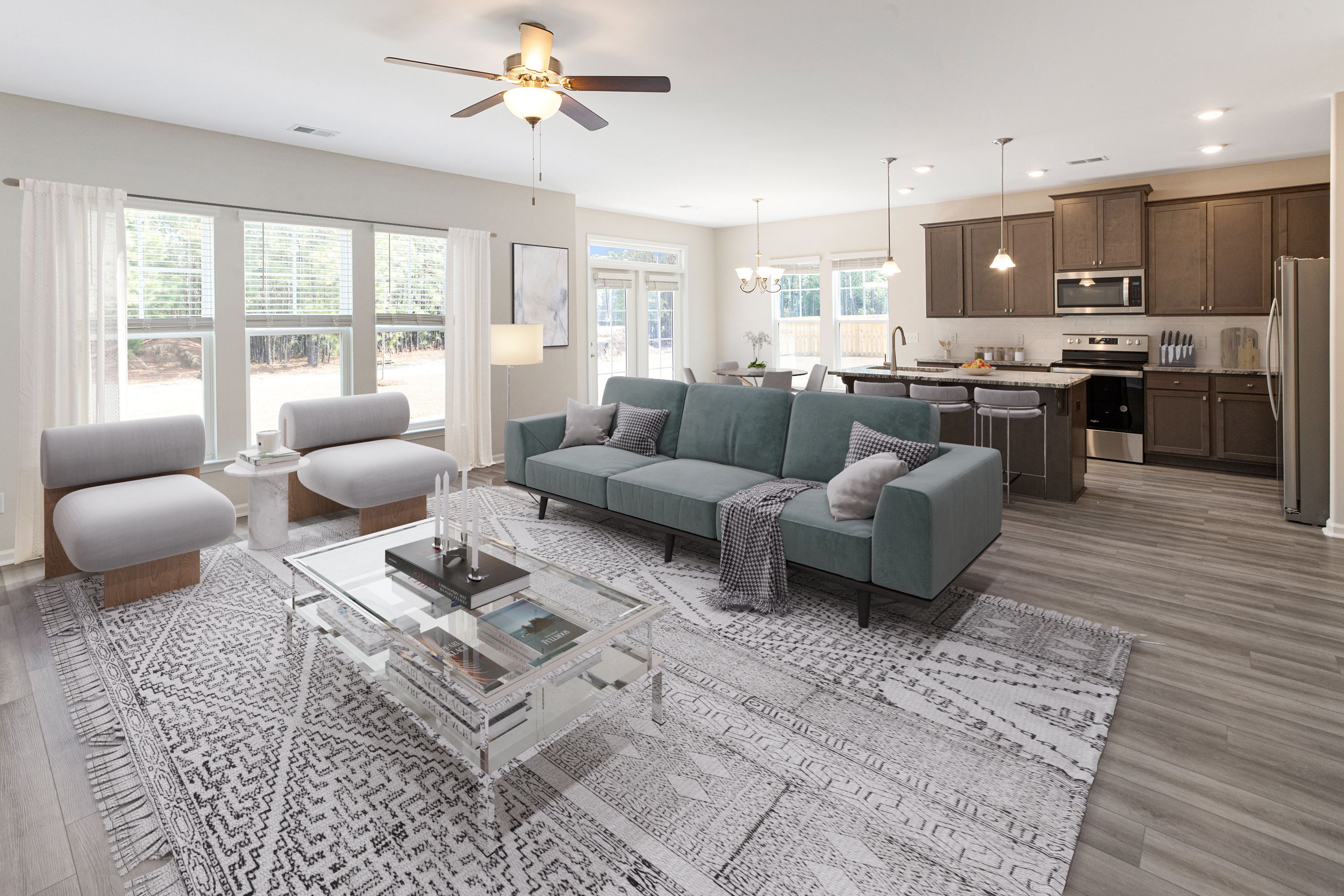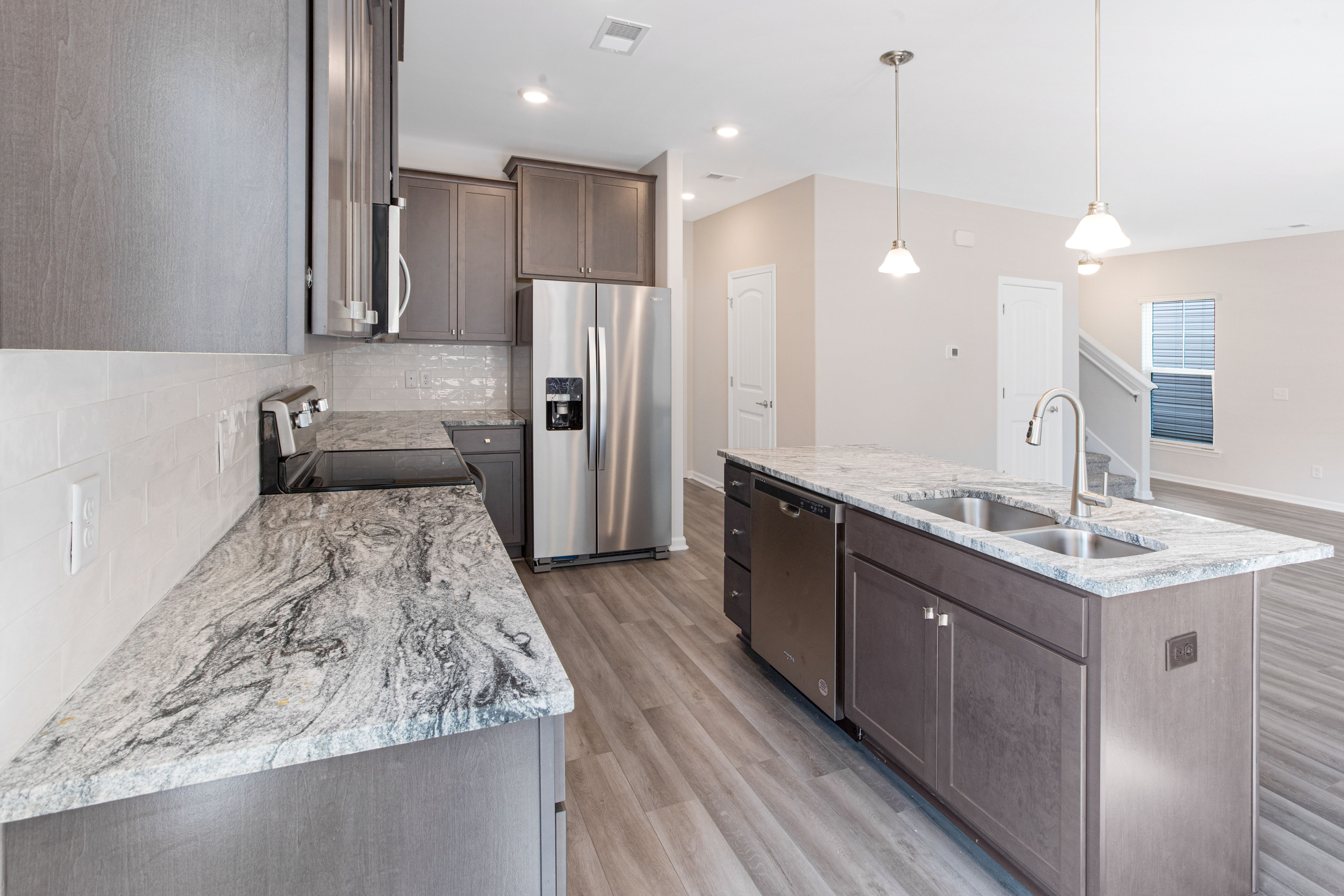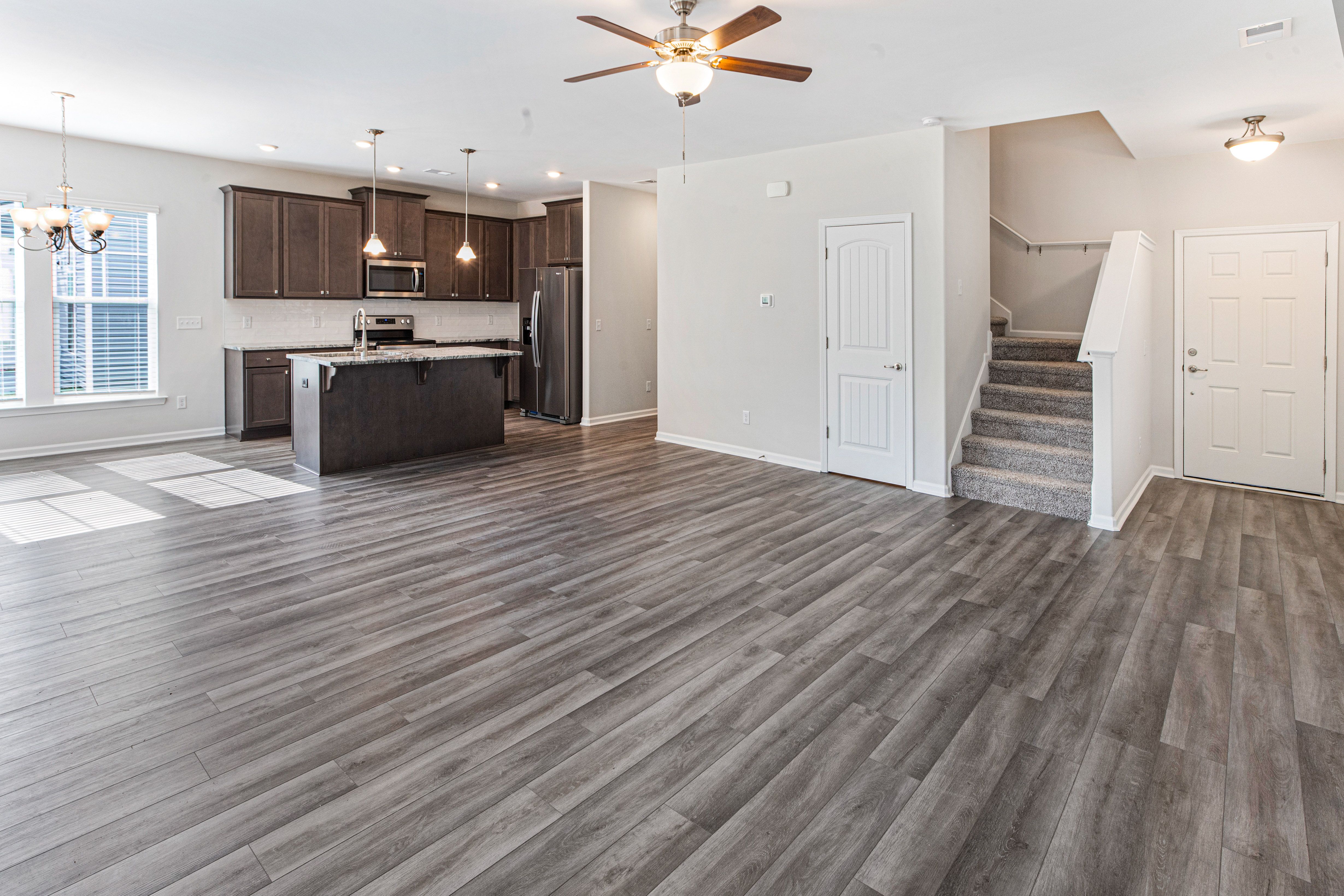 The Crestview plan features an open great room connecting to the dining area, and a roomy kitchen with plenty of cabinets and a walk-in pantry. The spacious upstairs primary suite includes two walk-in closets and an adjoining bath with a double sink vanity. Completing the second floor are 3 additional bedrooms, a full bath and laundry room. This plan also has a two-car garage, back patio, and a subtle front porch entry.