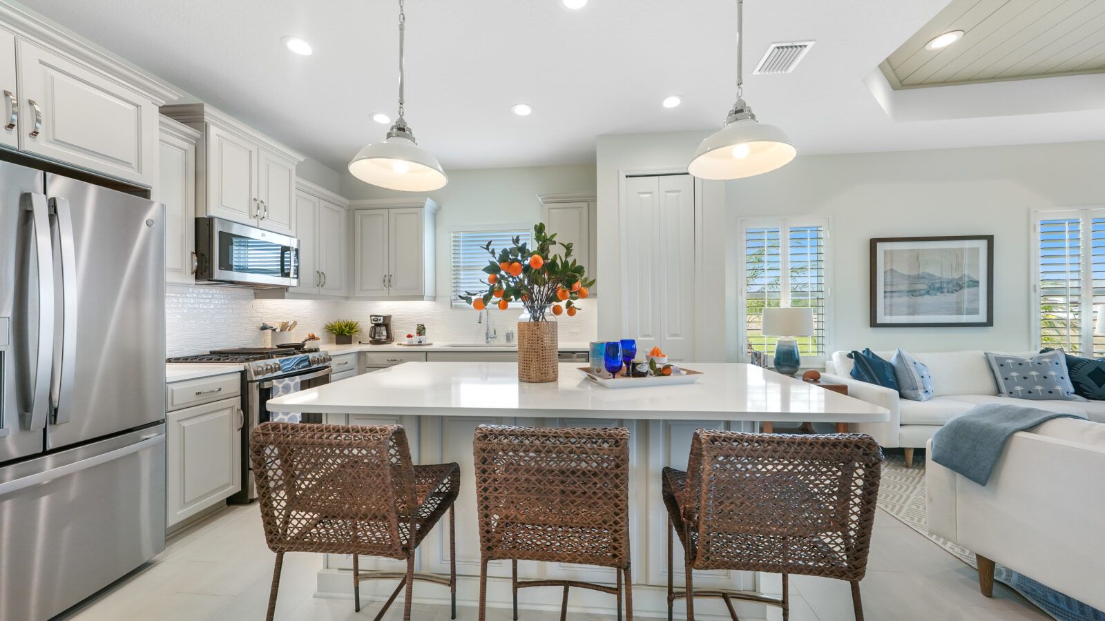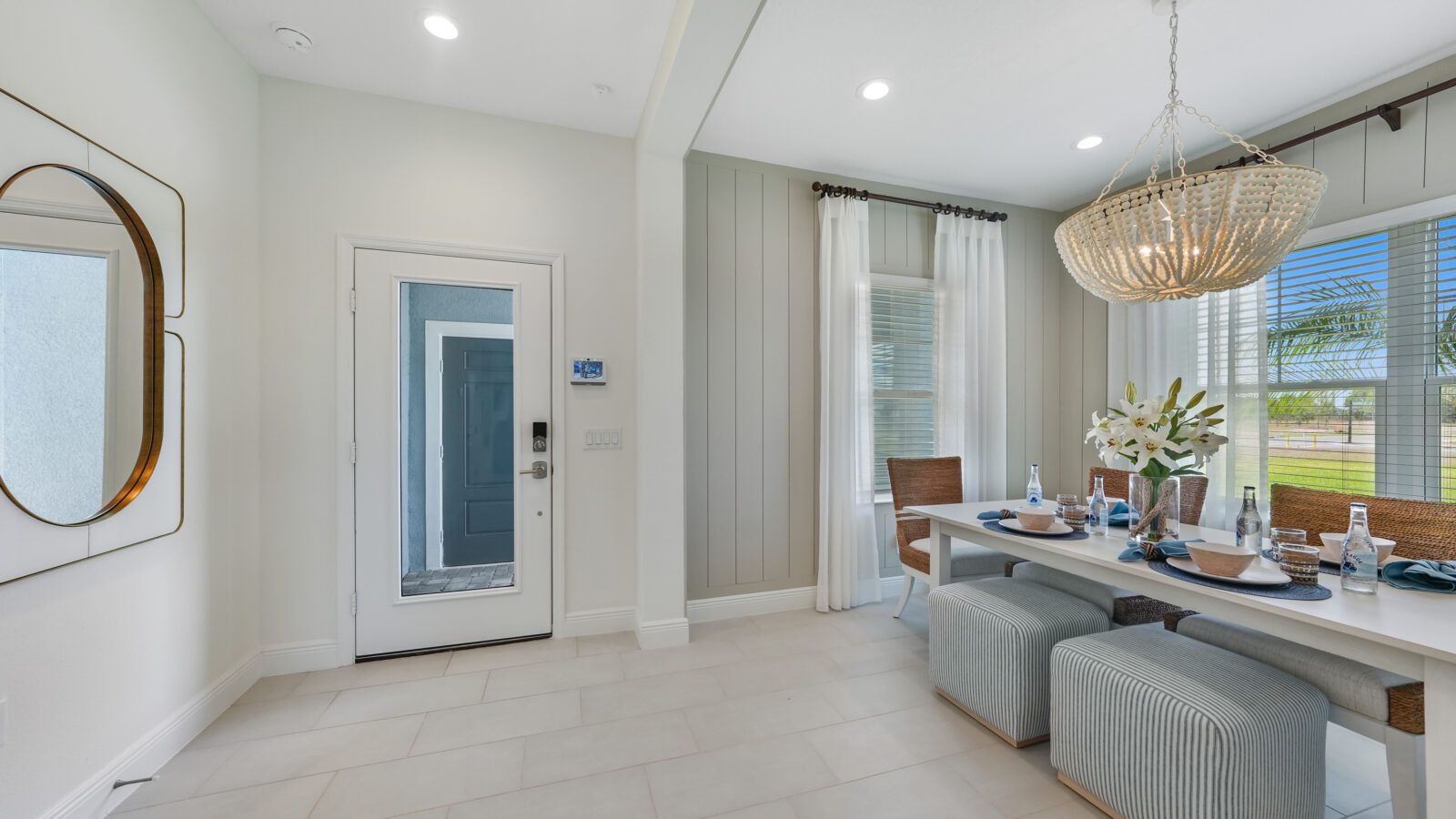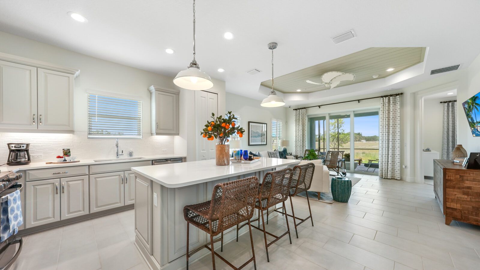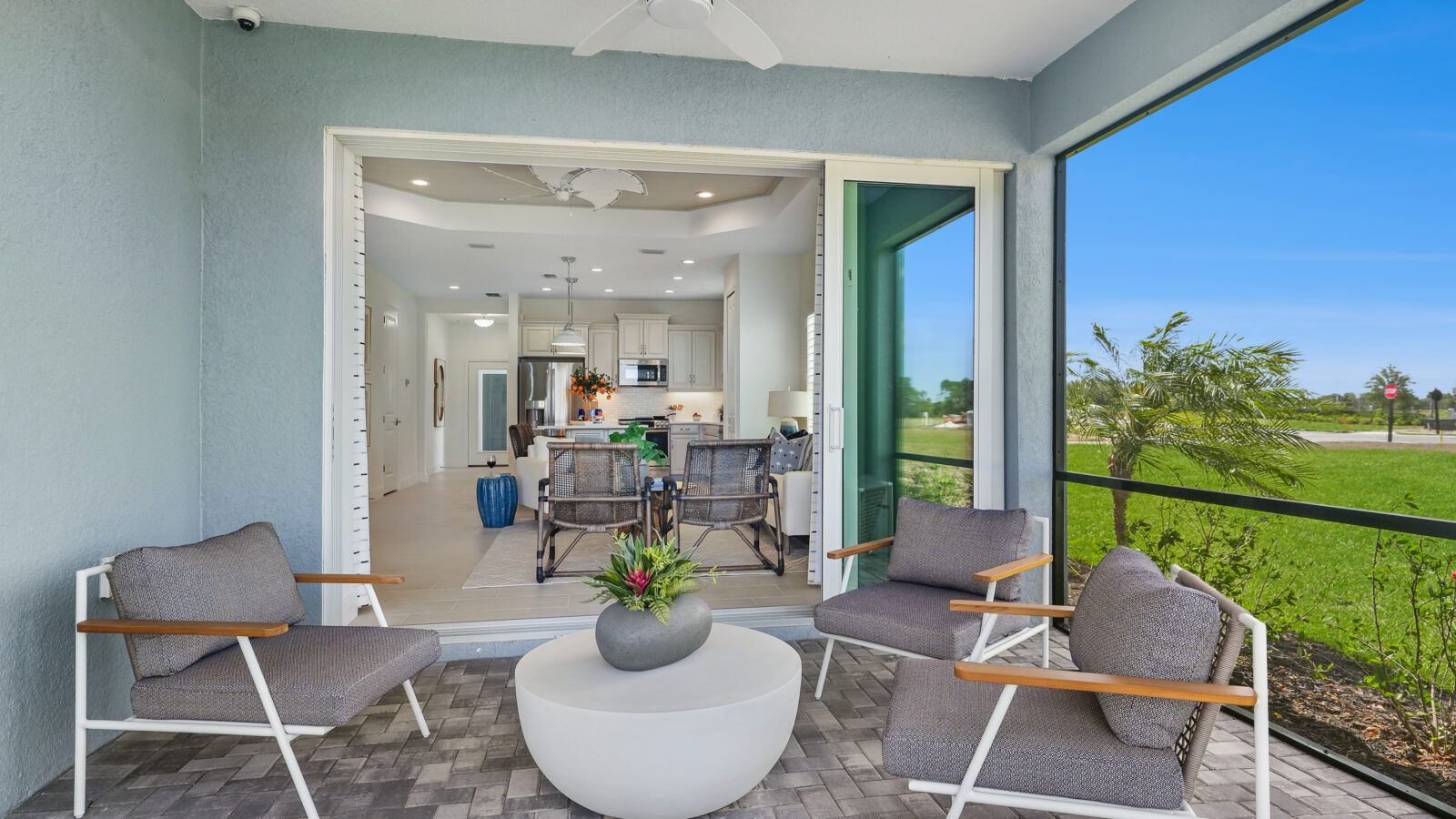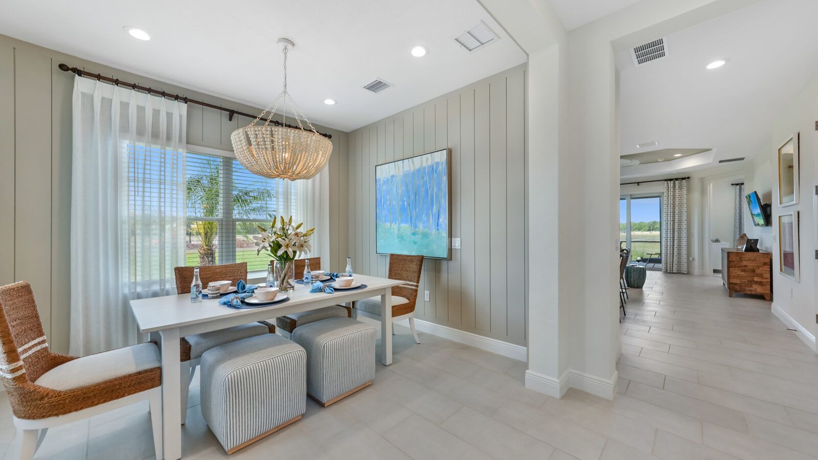 *Base price does not include the homesite premium or design options.* Airy and open, the Crystal Sand 2 paired villa home is comfortable and elegant. An open great room and kitchen area lead to a covered lanai, accessed through sliding glass doors or an optional pocket slider. A formal dining room can be a den with French doors if you prefer. The master suite with window or door to the lanai in the bedroom includes two closets, one a walk-in. The master bath features a walk-in shower, two sink vanities and a private water closet. The home makes a perfect retreat for a small family or as a second home. Let the Crystal Sand beckon you home to Wildleaf at North River Ranch. Call us to schedule an appointment today.