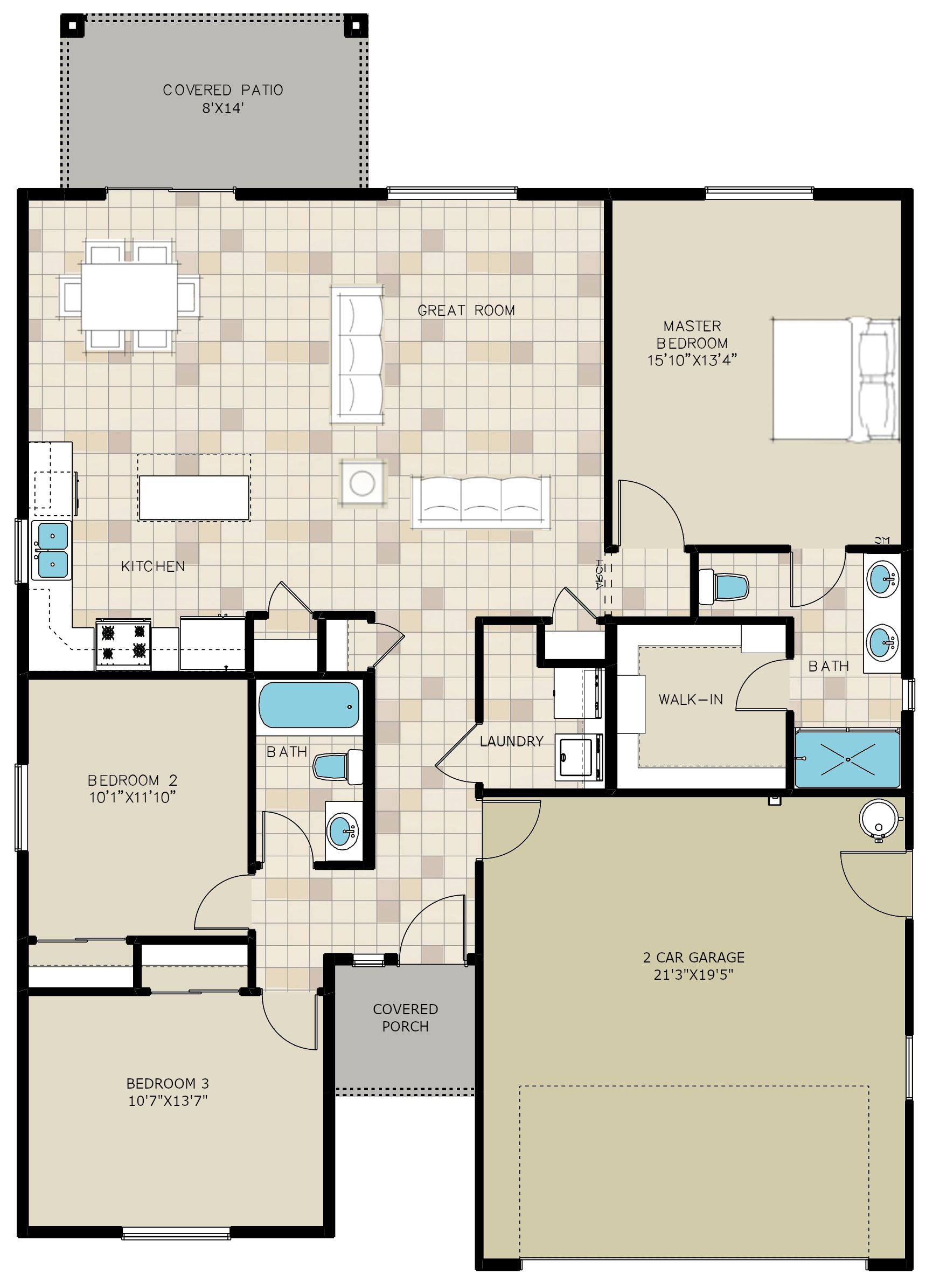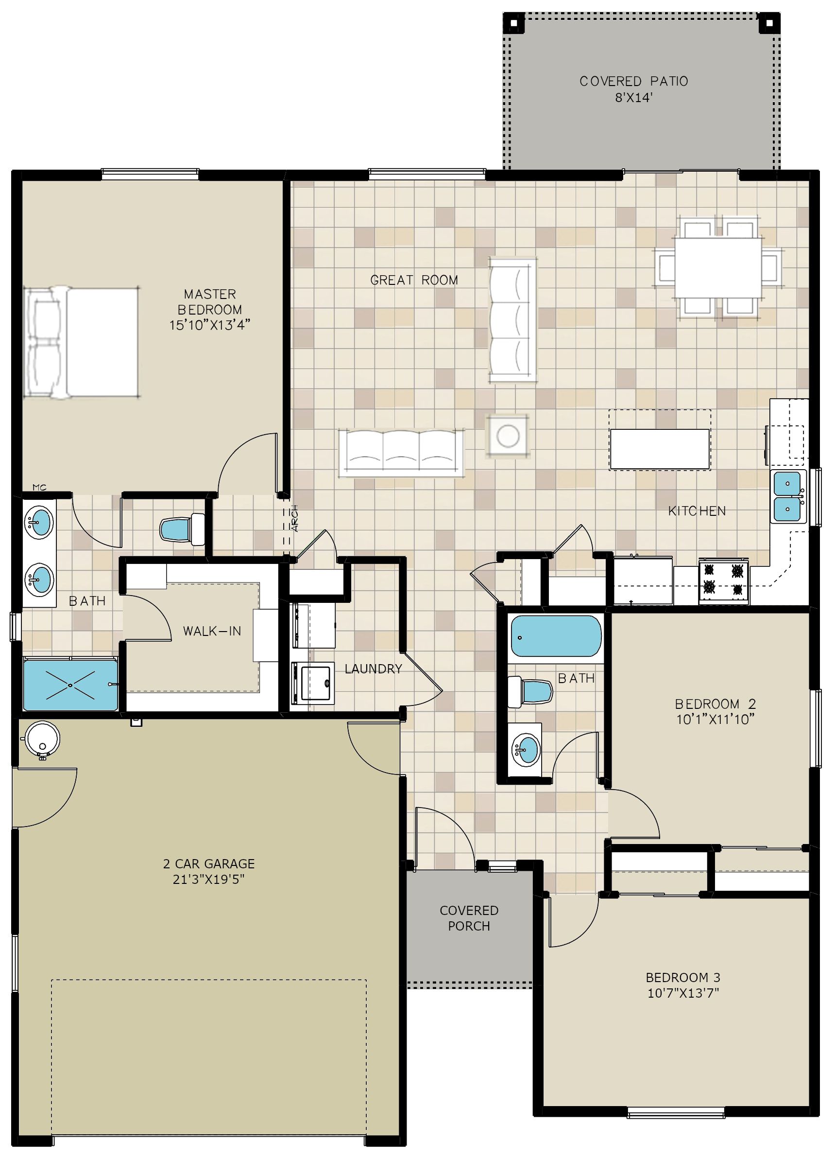 Desert Rose 1472 2 Car Plan by Angle Homes