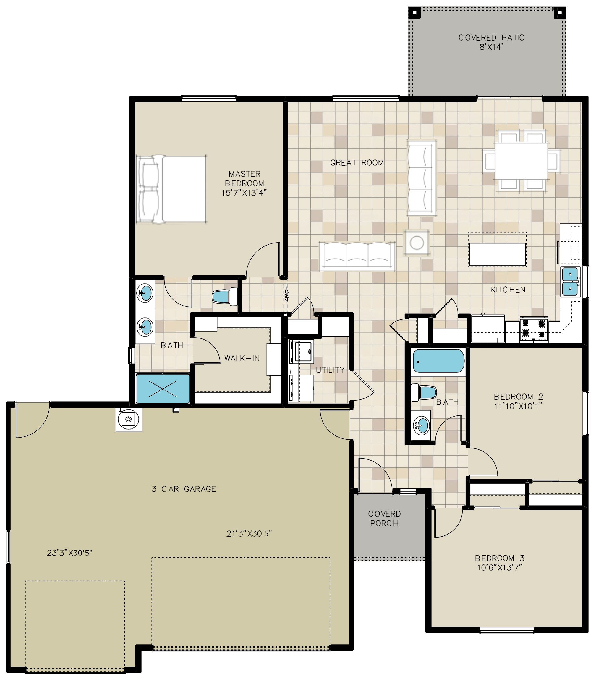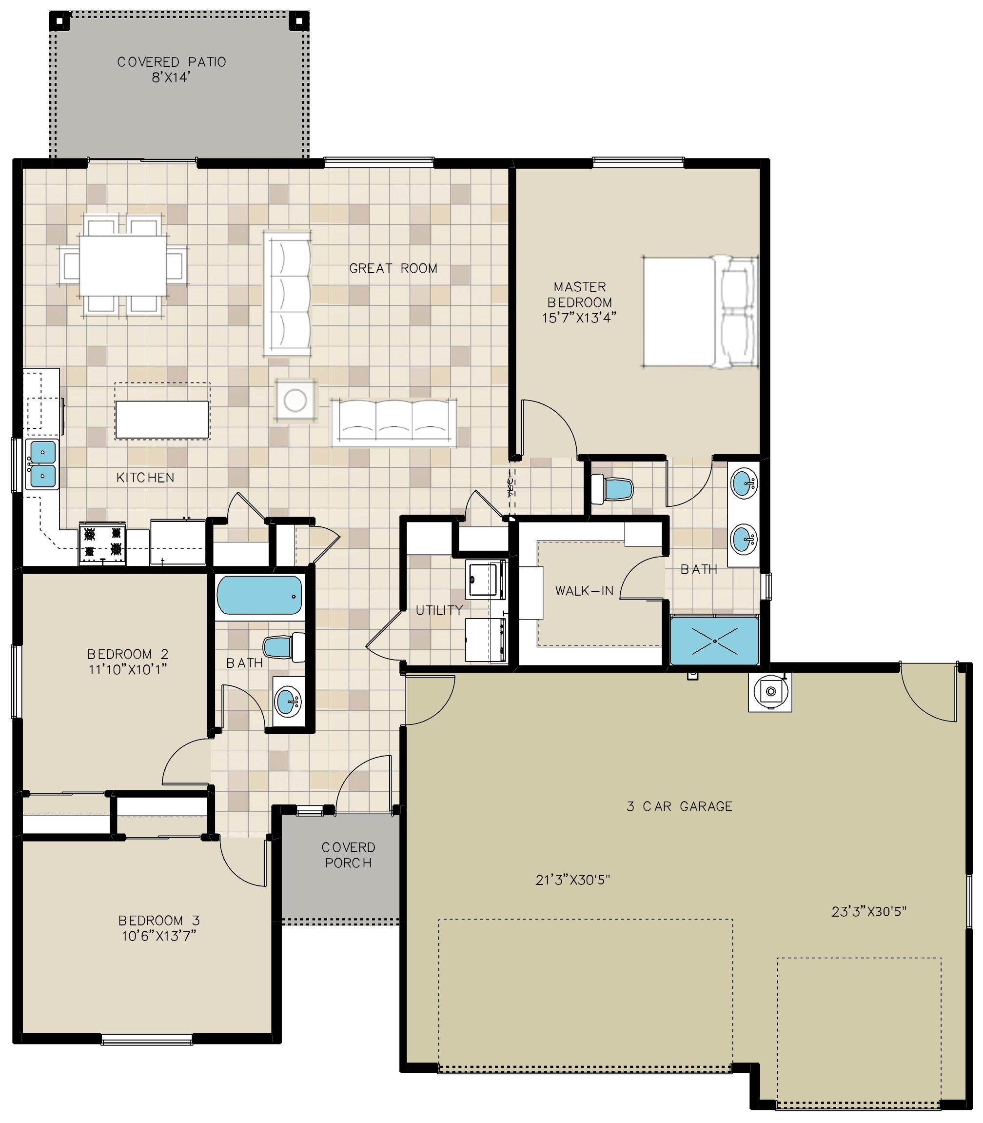 Desert Rose 1472 3 Car Plan by Angle Homes