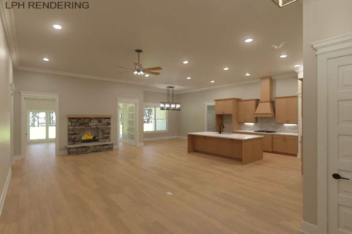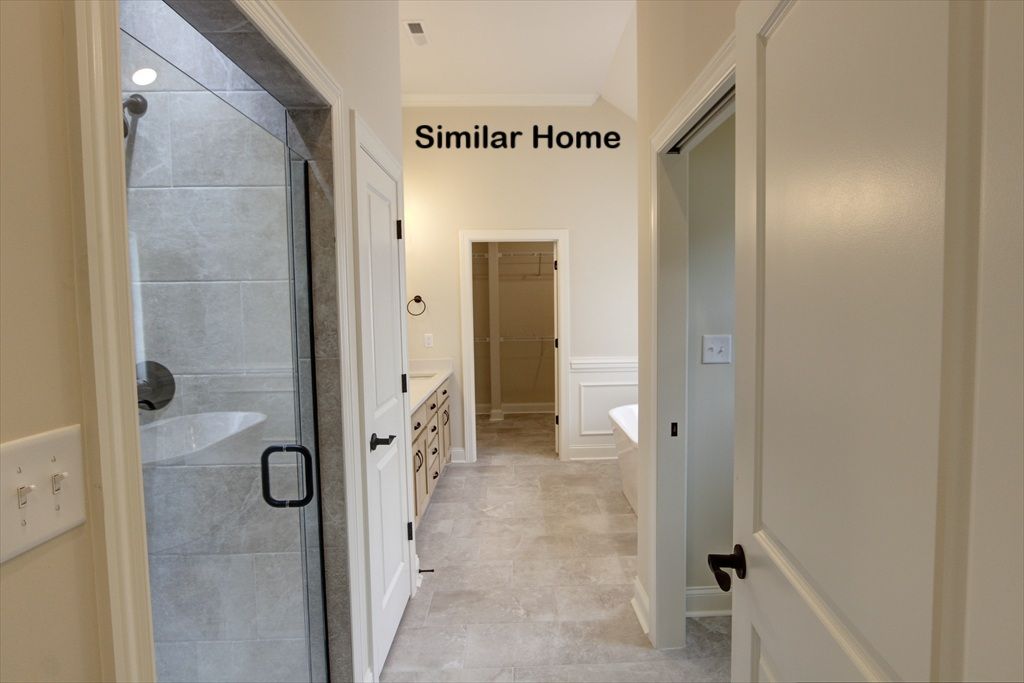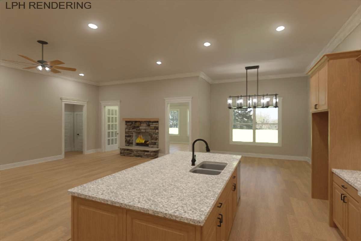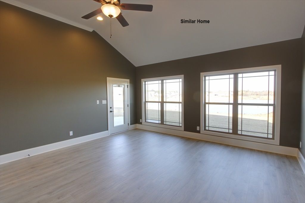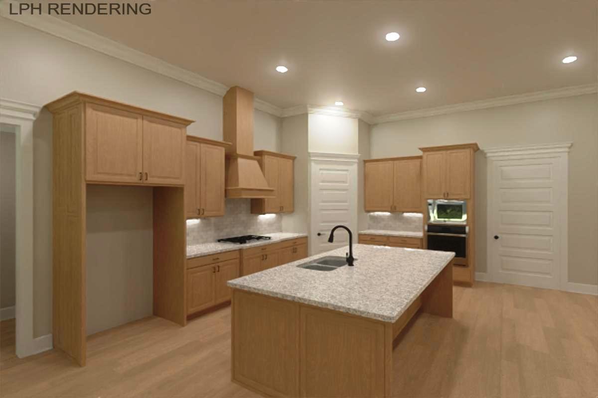 All brick Edmonton Plan A is an open plan with a 3 car side entry garage backed by a 2-10 home warranty. Home has 4 bedrooms, 3 baths and a sunroom. Home has wood plus flooring (Mohawk Revwood, Engineered Hardwood or similar prodcut) in all living areas and bedrooms. Great Room features 12' ceiling with 8' tall doorways, extensive trim, gas-log fireplace with upgraded fireplace treatment, floor outlet, recessed lights and ceiling fan. Open Kitchen includes 12’ ceiling w/ 8' doorways, 9' soft close custom cabinetry with granite countertops, large island with extra storage and countertop seating, stainless appliances (Gas Cooktop, Cabinet Vent Hood, Wall Oven, Wall Microwave, Dishwasher), tile backsplash, recessed and under cabinet lighting, walk-in pantry with wood shelving. Breakfast has 1...