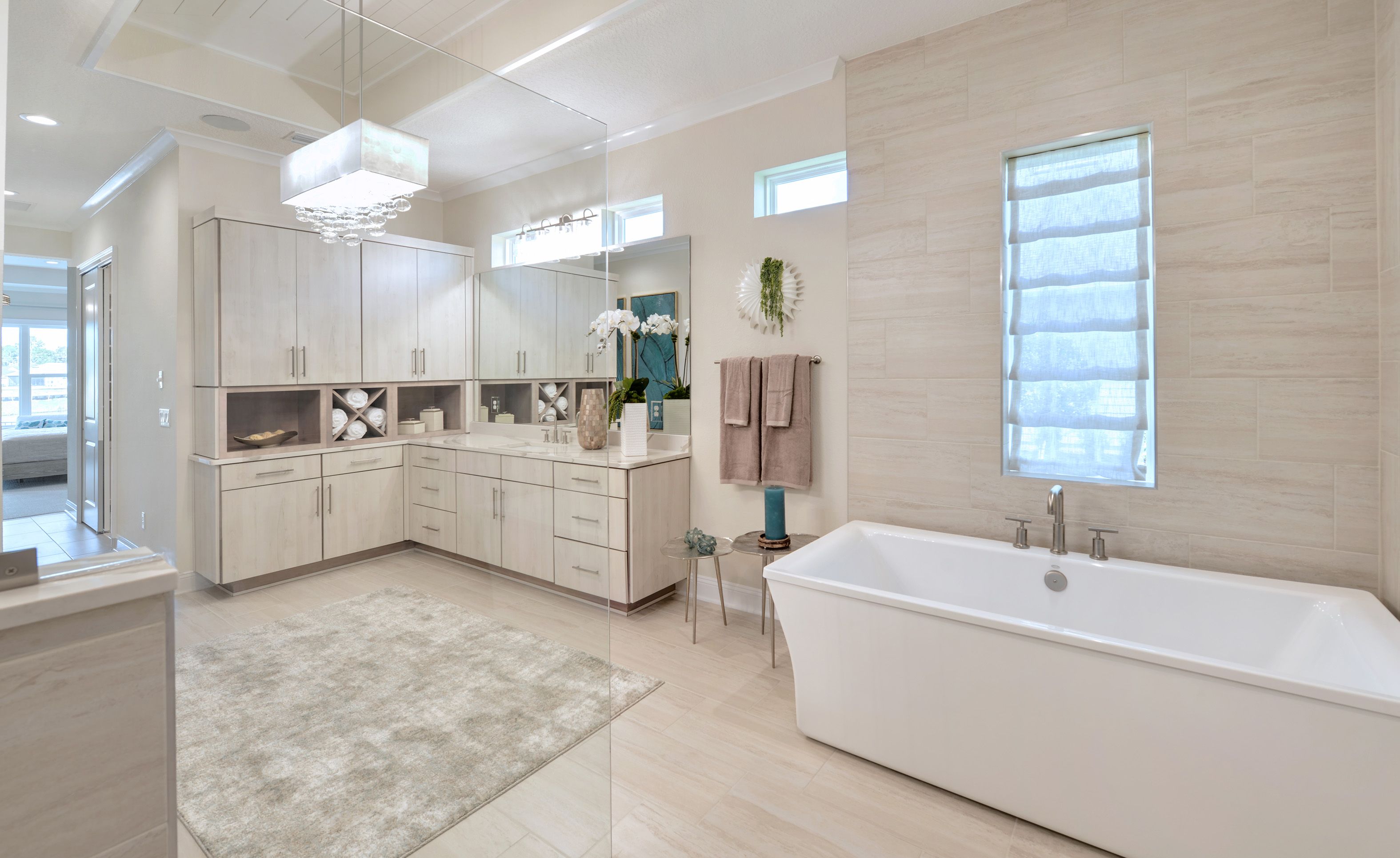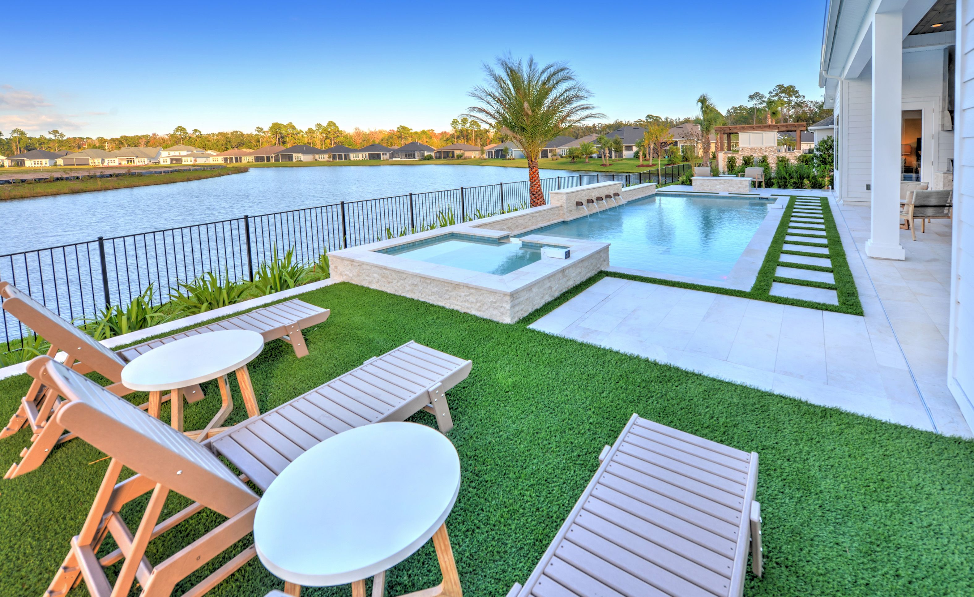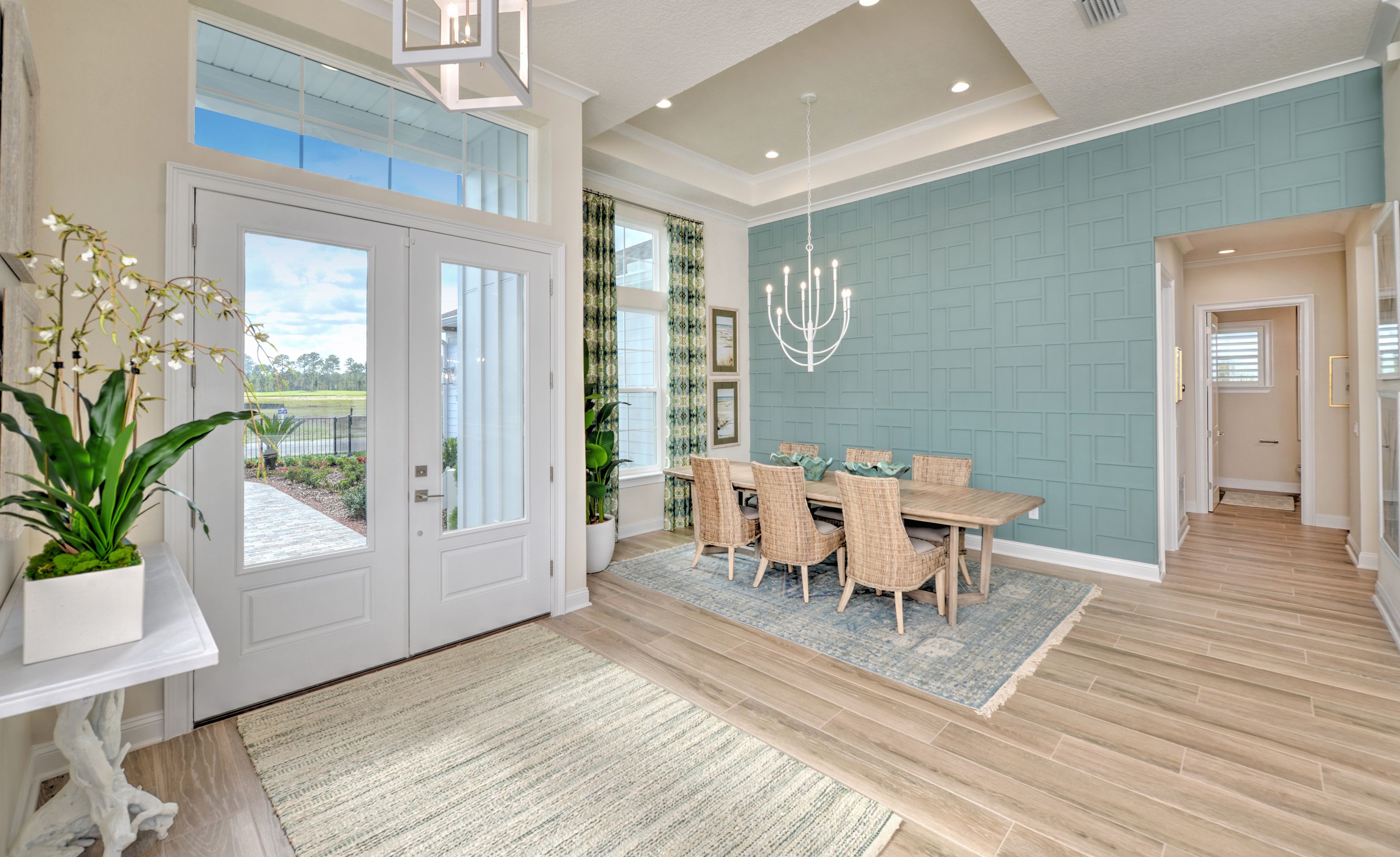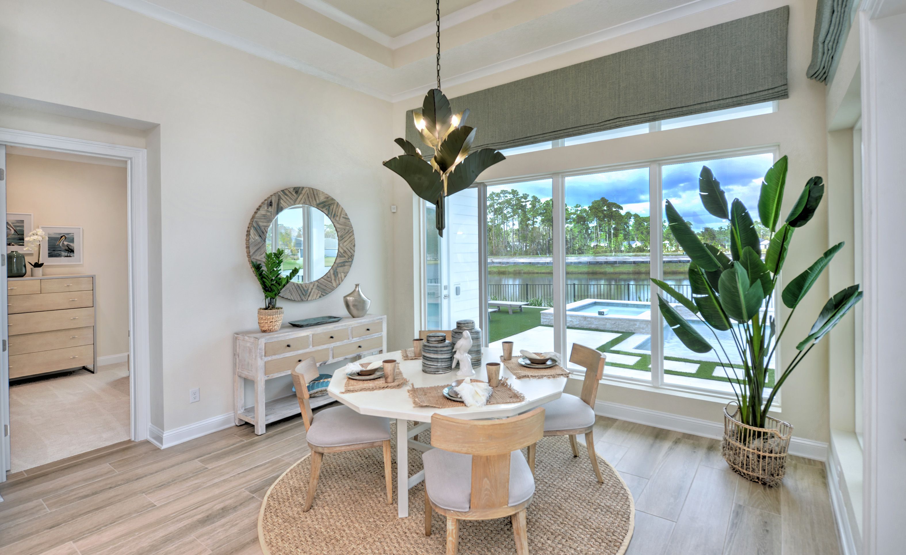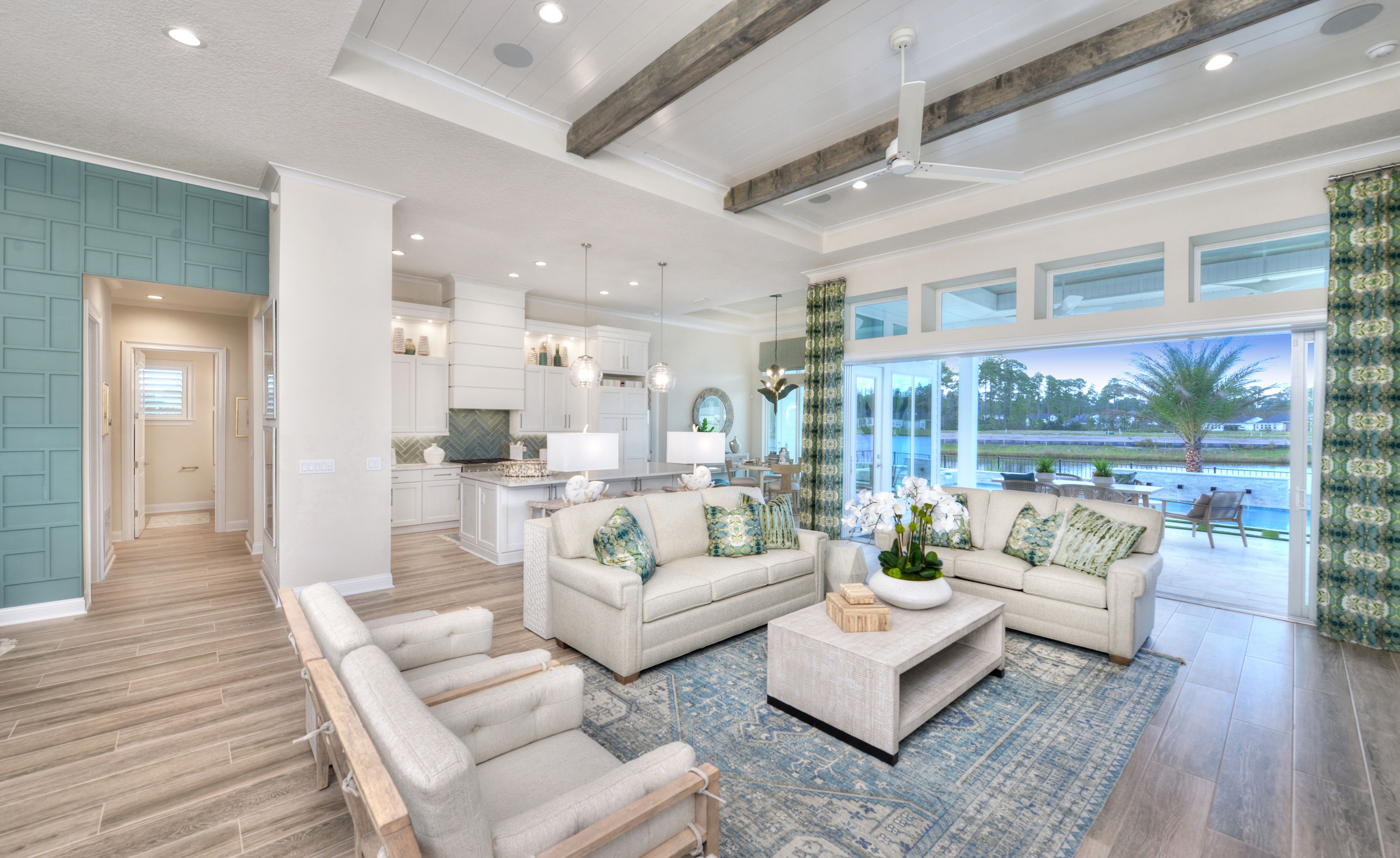 The Egret V is a 3,067-square-foot haven featuring four bedrooms and three baths, designed for both elegance and functionality. Its spacious living room with 12-foot ceilings flows seamlessly into the dining area and deluxe kitchen, making it perfect for entertaining. The master suite is a luxurious retreat with dual walk-in closets and a spa-like bath. Enjoy the Florida lifestyle on your expansive covered lanai, perfect for year-round relaxation. With ICI Homes' renowned customization, you can adapt the Egret V to suit your needs—from additional bedrooms to a guest suite, we make your vision a reality.