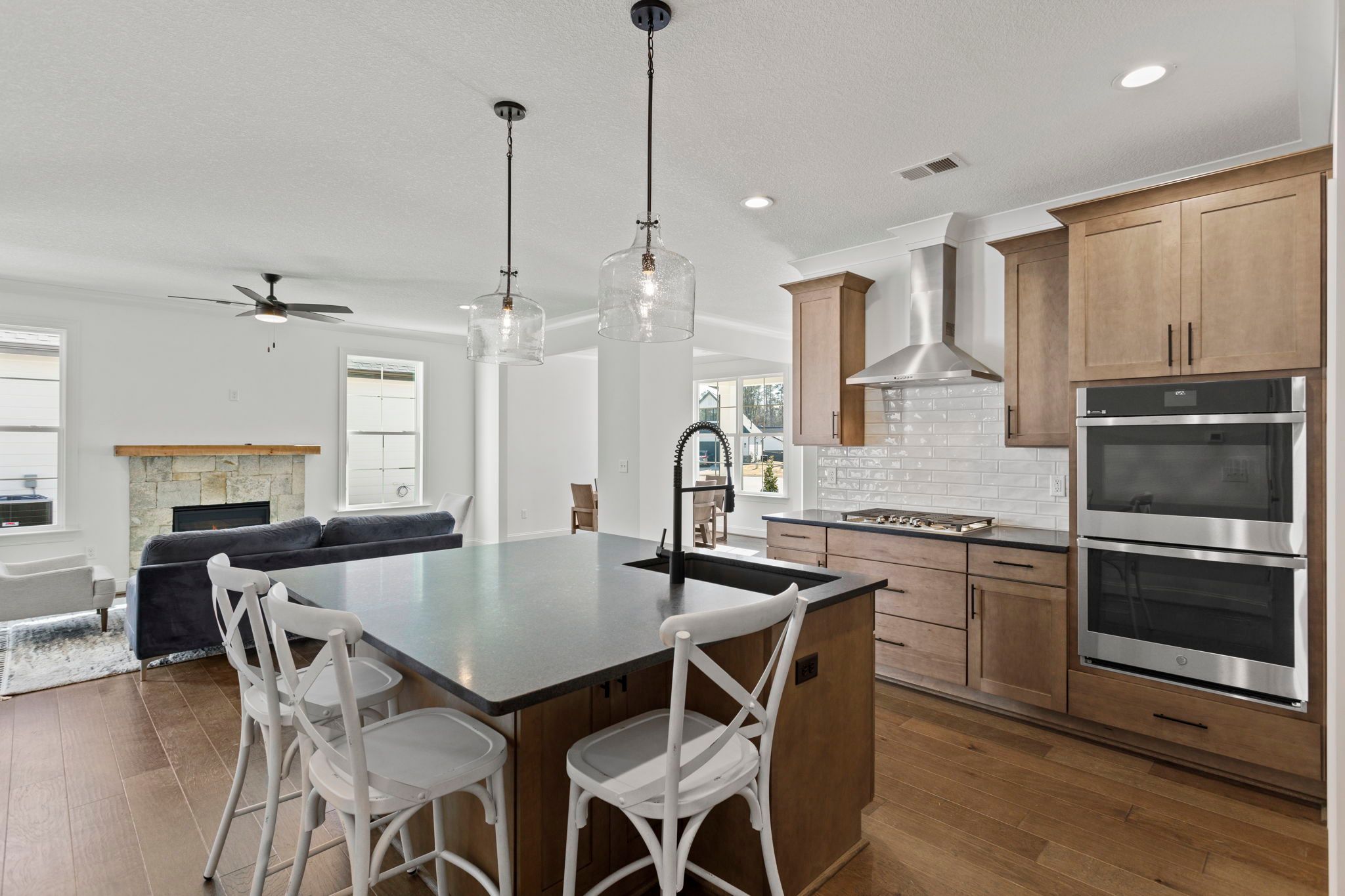 Welcome to The English, where classic architecture meets modern living in a thoughtfully designed single-level home. This elegant floor plan is perfect for those who crave cozy charm without sacrificing space or style. From the moment you step onto the wide covered entry porch, you’ll feel the warmth and welcome that defines this exceptional residence.Step inside to a graceful foyer that leads to a bright and open living space, where 9-foot ceilings enhance the sense of airiness. The great room serves as the heart of the home, ideal for everyday relaxation or lively gatherings. With the option for a charming interior or exterior fireplace, you can customize this space for maximum ambiance. The kitchen is a dream for home chefs, with generous counter space, a walk-in pantry, and seamless f...