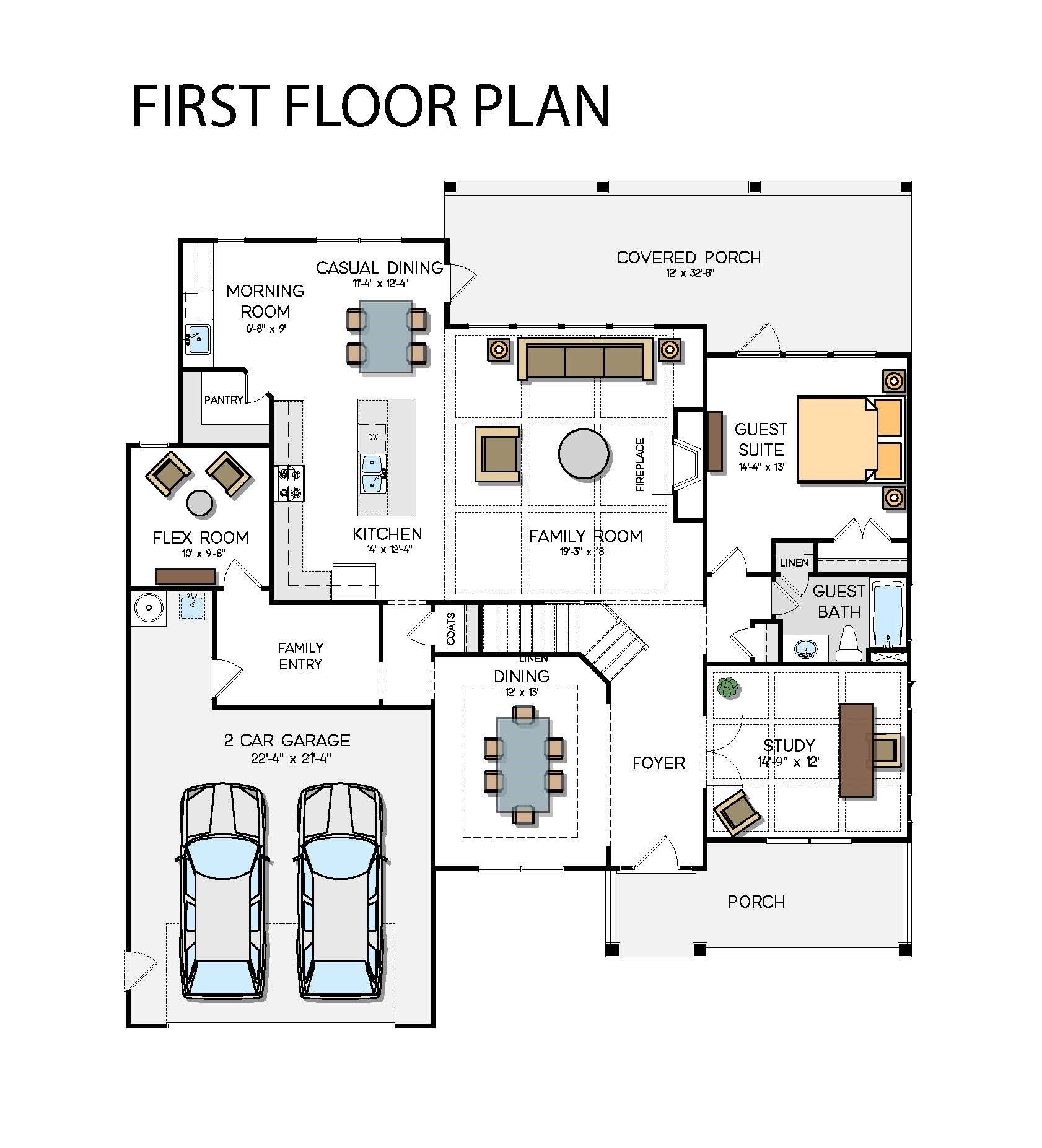 This stately 2 story home welcomes you with a soaring 19 ft ceiling in the foyer with a well lit study & elegant formal dining room adding to the grand entryway. Enjoy gatherings in the generously sized Family Room graced by a fireplace joined by the gorgeous island and oversized kitchen perfect celebrating life together. The spacious casual dining room off the kitchen creates the perfect additional space for entertaining or just enjoying everyday life making memories with the family. A morning room, walk in pantry and flex space offer unlimited possibilities to create more storage or workspace. Your guest will feel at home in the first floor suite overlooking the expansive covered porch. The centrally located stairway leads to an open loft which can easily become a media room for hosting ...