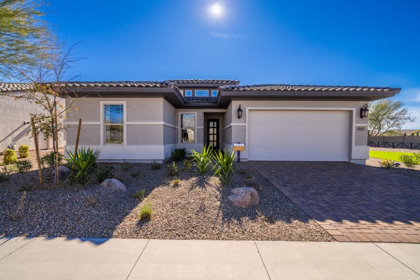 Discover new homes for sale in Goodyear, AZ, at CantaMia at Estrella, a beautiful resort-lifestyle community! Come home to a 55+ haven with incredible amenities. Here, you’ll always have something to do. Meet up with neighbors at the Clubhouse, take a serene stroll along the lake, dive into the shimmering pool to beat the summer heat, stay active at the fitness center or try out the ultra-popular pickleball on dedicated courts. Inside your new home, large entertaining areas flow into kitchens and outdoor living spaces, ideal for everything, from relaxing at home to hosting. More info about CantaMia at Estrella 55+