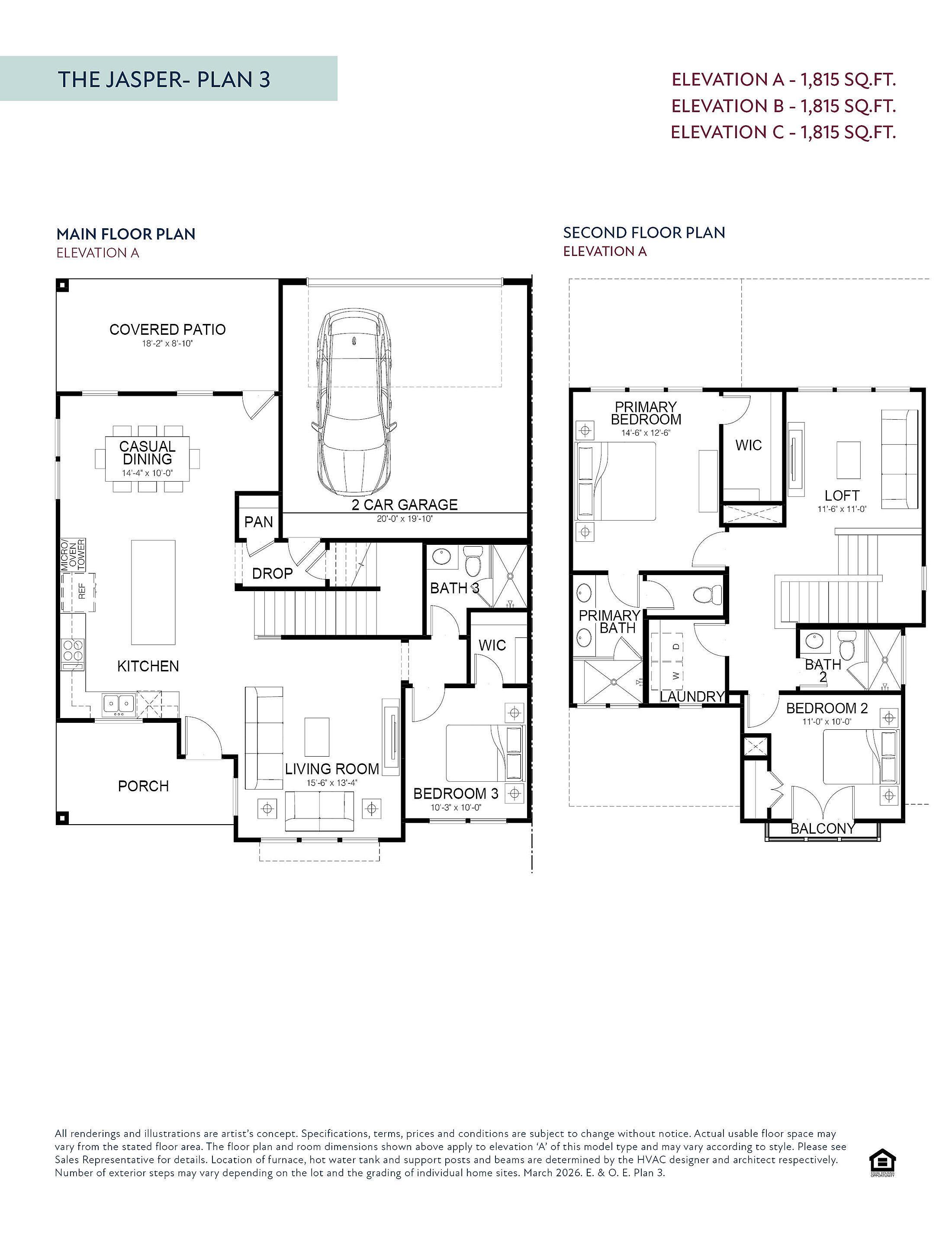 The Jasper Duet floorplan offers 1,815 sq. ft. of thoughtfully designed two-story living with a blend of open spaces and private retreats. The main floor features an open kitchen, living, and casual dining area that flows seamlessly to a covered patio, creating an ideal setup for everyday living and entertaining. A first-floor secondary bedroom with a nearby full bath adds flexibility for guests or a home office, while the two-car garage includes a convenient drop zone. Upstairs, the primary suite serves as a private escape with a spacious walk-in closet and a well-appointed bath. A central loft provides additional living space, complemented by a second bedroom, full bath, and an upstairs laundry for added convenience. With smart storage, modern finishes, and an efficient layout, this plan...