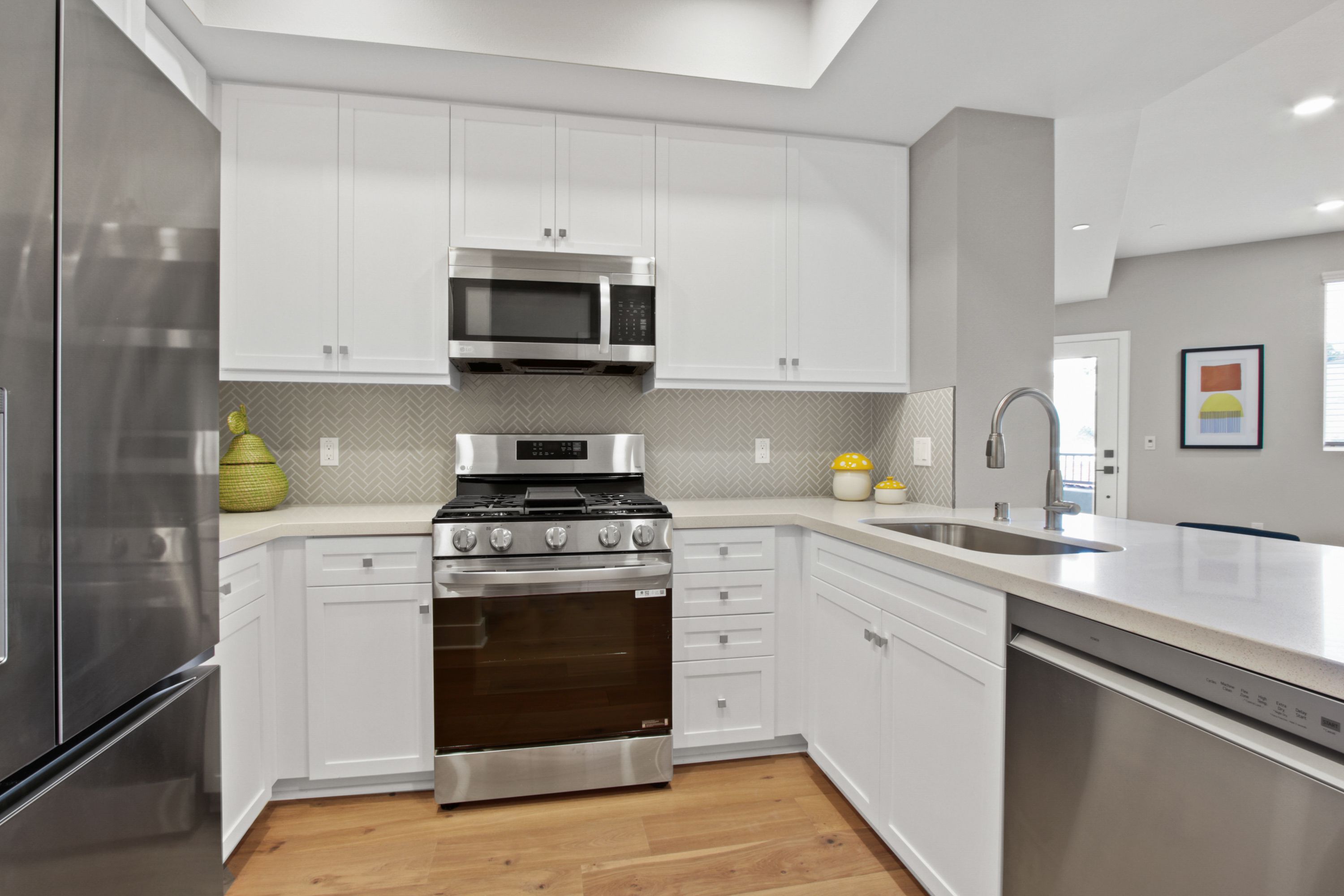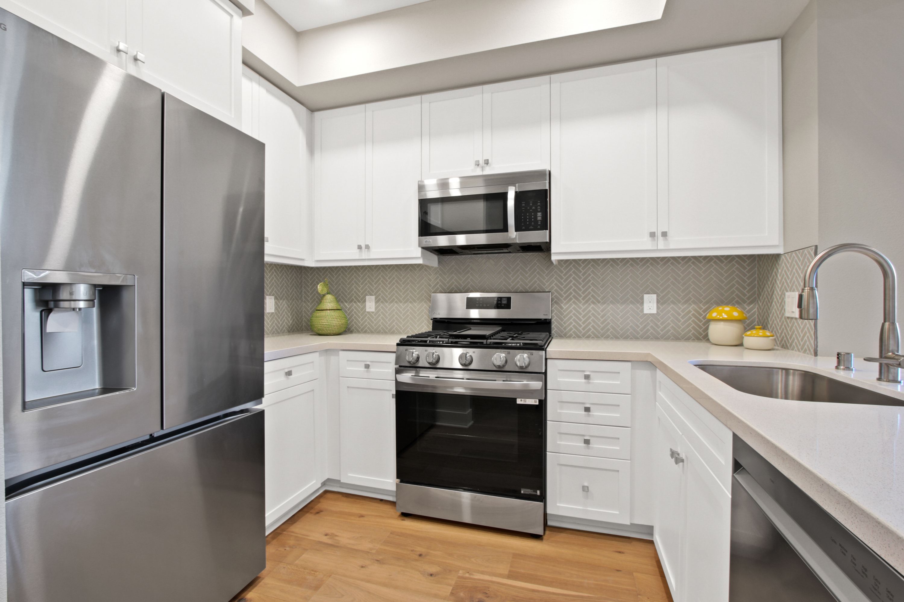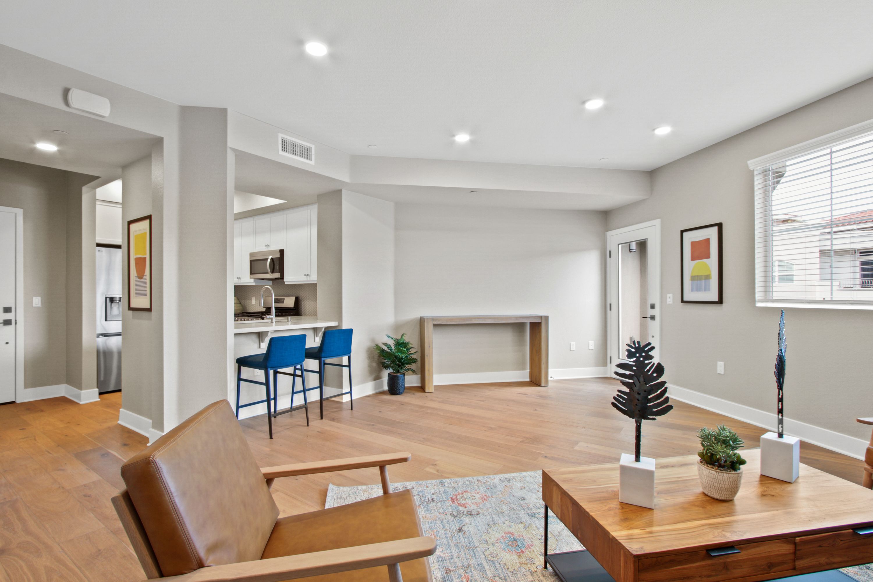 La Sevilla is a brand-new collection of 75 upscale single-level condominiums in the prestigious Rolling Hills Estates, seamlessly combining comfort, simplicity, and modern design. Plan D is a 1-bedroom 1-bath home featuring an open concept living and dining area that flows effortlessly onto a private balcony, creating a perfect blend of indoor relaxation and outdoor enjoyment. The home showcases elegant finishes, including wide-plank hardwood flooring throughout, quartz countertops, a full tile backsplash, and a premium LG stainless-steel appliance package with a French-door refrigerator, built-in microwave, gas range with Air Fry, and dishwasher. The spacious primary suite includes a luxurious bathroom with a glass-enclosed shower, bathtub, quartz counters, designer porcelain tile, and st...