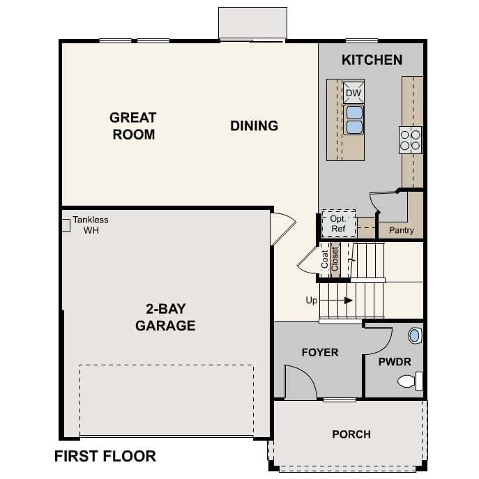The Lanner at Crest View features a classic two-story living experience with 1,924 sq. ft. of living space. The ground floor boasts a welcoming front porch that leads into an open-concept great room and modern kitchen with a corner walk-in pantry and functional center Island. A powder room is tucked away on the main level. Upstairs, the owner's suite offers privacy with its en-suite bathroom featuring a dual-sink vanity and spacious walk-in closet. Three additional bedrooms can be found on the second level, two of which feature their own walk-in closets. A full laundry room and two-bay garage complete the home.