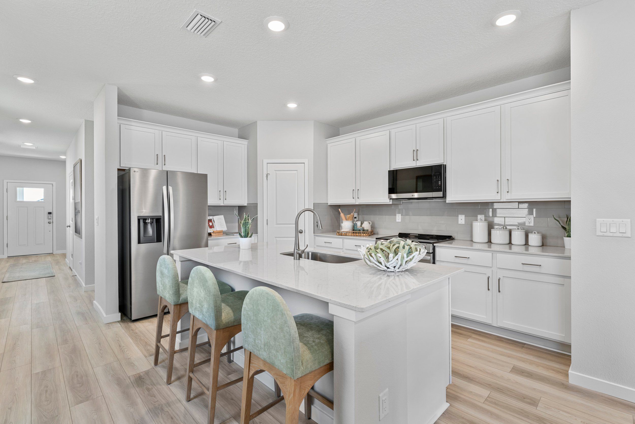 You’ll fall in love with the charming Laurel II floor plan! This innovative plan offers a popular open-concept layout, showcasing a large kitchen with a walk-in pantry, wraparound countertop, and center island. The kitchen overlooks a dining area and a spacious, airy great room, which leads out to a covered patio. There are three bedrooms, each with a walk-in closet. The primary suite also includes an attached bath with dual sinks and a walk-in shower. A full bath completes this attractive floor plan. Options: Chef’s kitchen