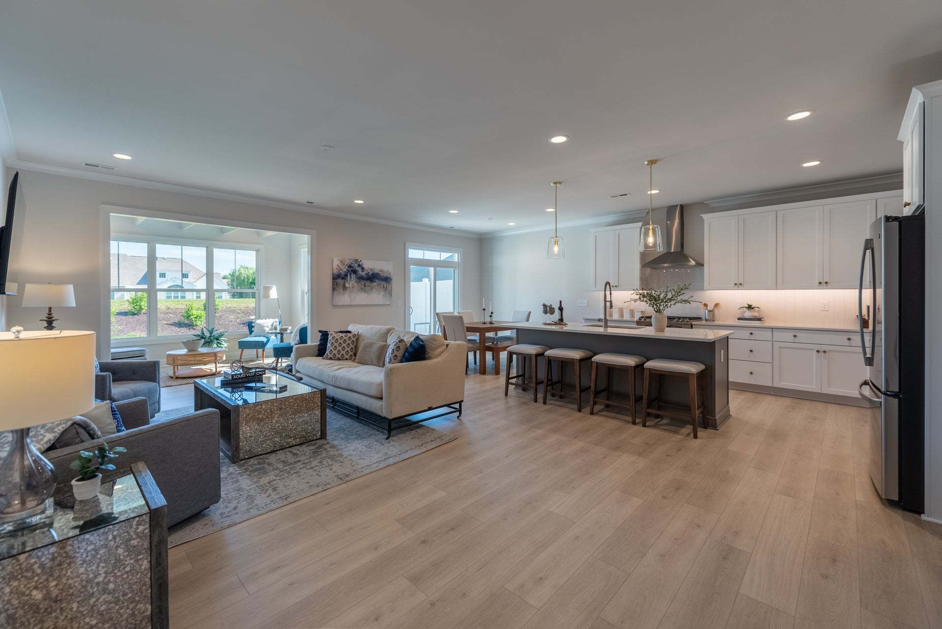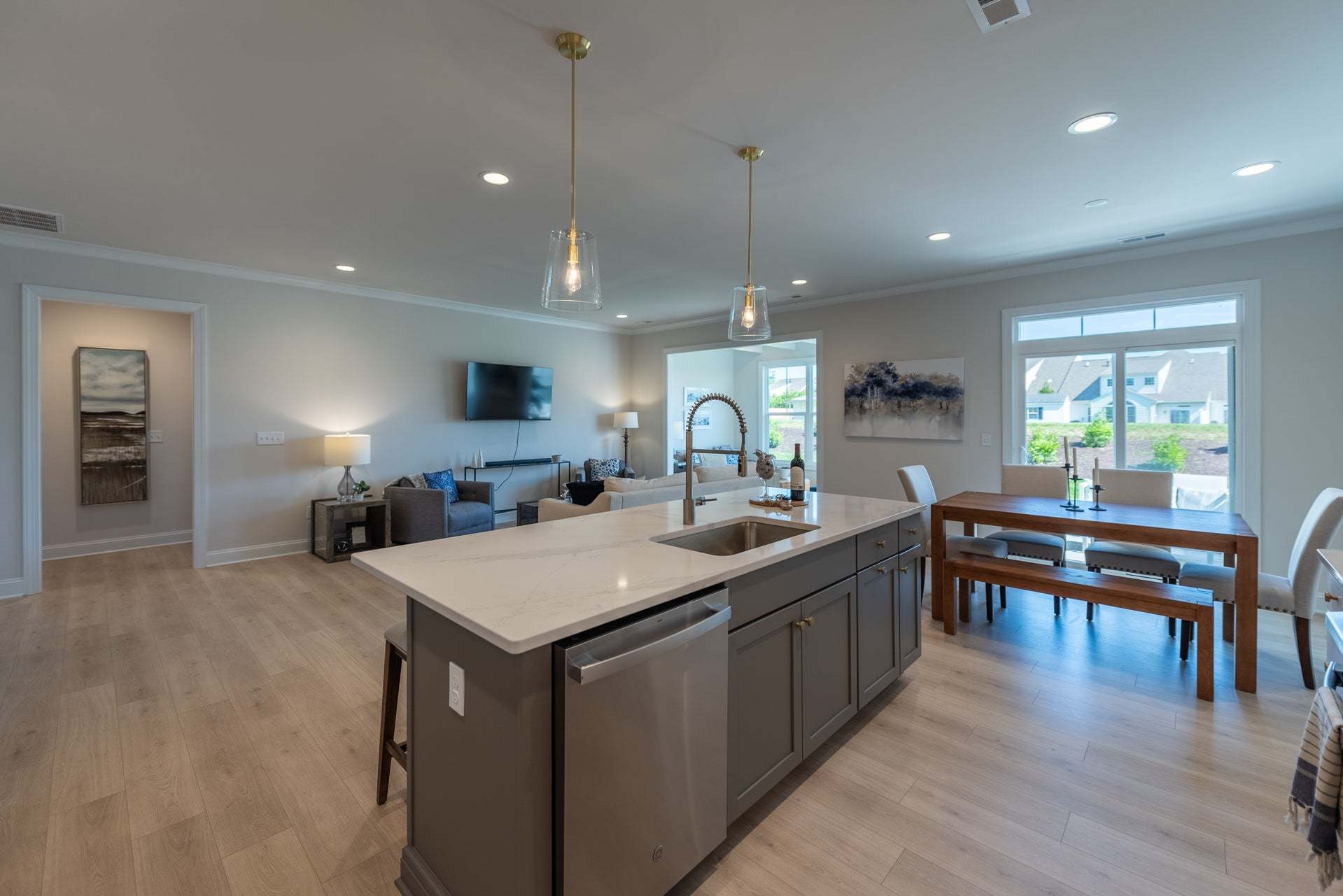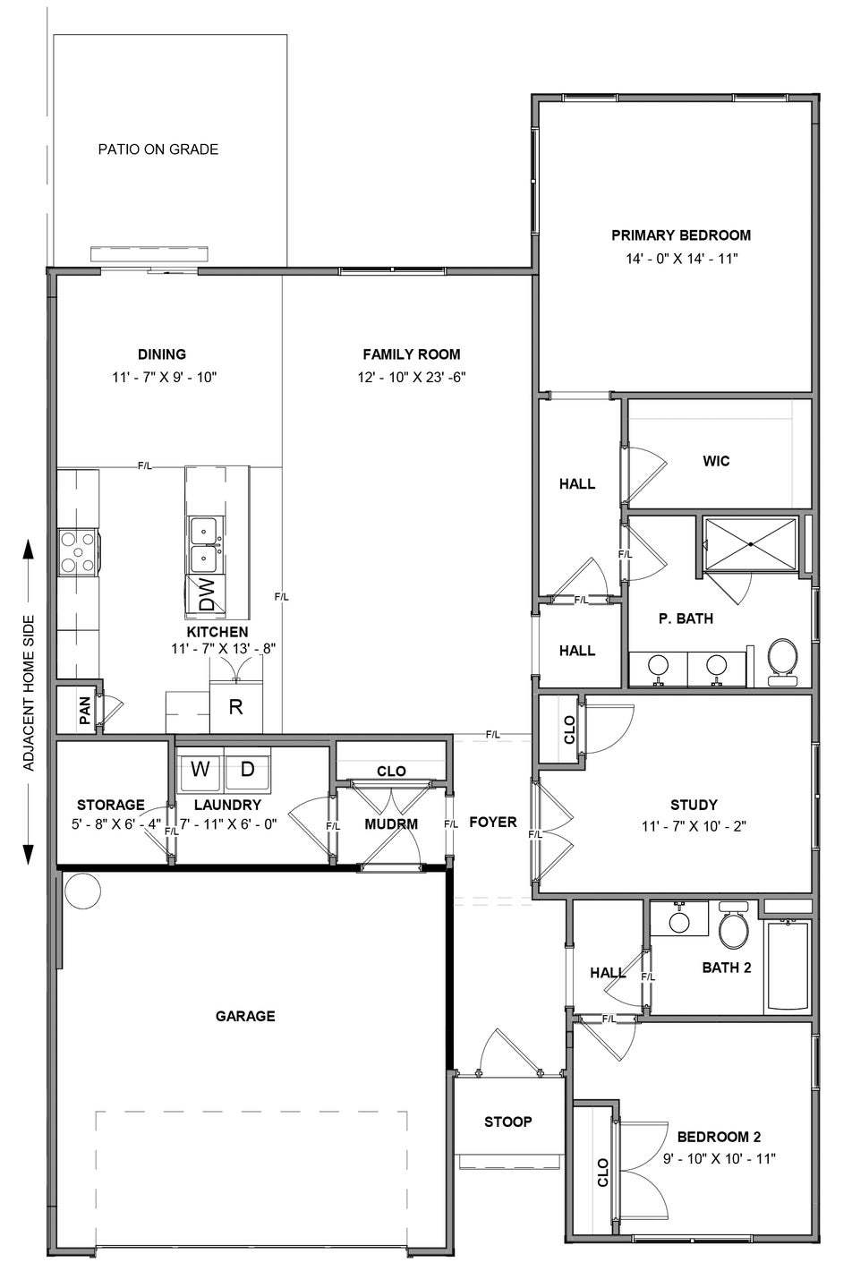 The Lillie is the one level townhome you've been looking for. Complete with 2-car garage, the Lillie provides just the right amount of space. Enter from your garage and into the laundry room and mud room, complete with an additional storage closet. A study with French doors provides the perfect space to set up your home office, play room for the grandkids, or anything that renews your energy. The open concept layout offers a kitchen with pantry and large island overlooking the dining area and family room, perfect for keeping everyone connected. Your primary bedroom is tucked down a hallway with a spacious primary bath and large walk-in closet. At the front of the home you'll find an additional bedroom and full bath.
