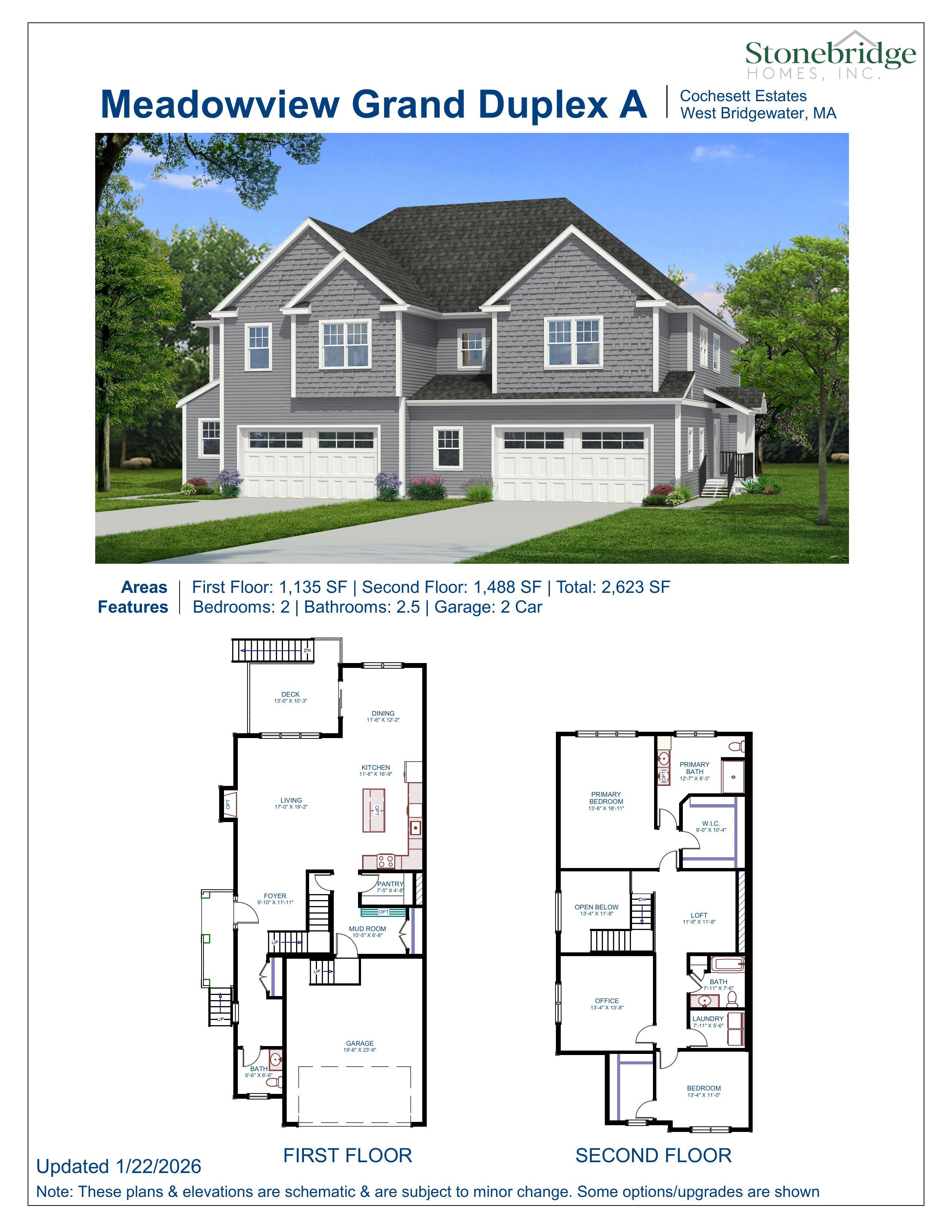 Welcome to the Meadowview Grand Duplex A where modern design meets everyday functionality. This thoughtfully designed home offers over 2,600 square feet of living space, featuring 2 spacious bedrooms, 2.5 bathrooms, and a 2-car garage.The first floor showcases an open-concept layout with a bright living area, dining space, and a well-appointed kitchenperfect for entertaining or everyday living. A convenient mudroom and optional features add flexibility to fit your lifestyle.Upstairs, enjoy a private primary suite with a walk-in closet and en-suite bath, along with a second bedroom, full bath, and a versatile loft spaceideal for a home office, media room, or additional living area.This home combines comfort, style, and convenience in a beautifully crafted new construction setting.Some featu...