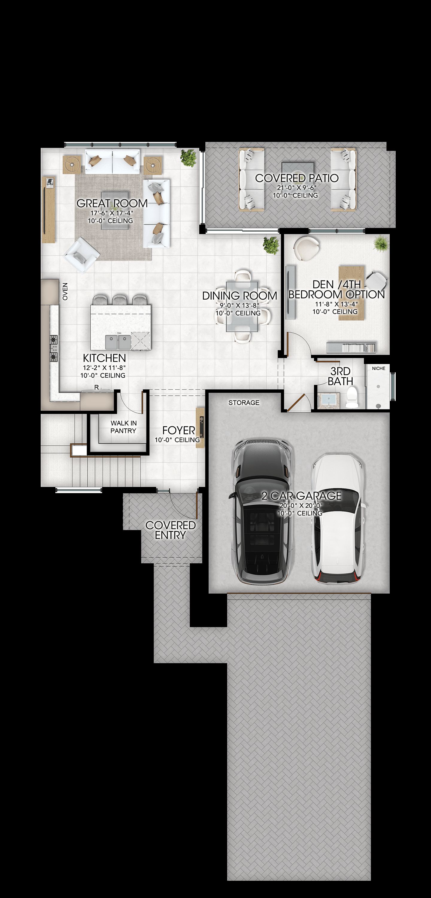 3 Bedrooms, 3 Bathrooms, Den/Opt. 4th Bed, Great Room, 2-Car Garage, 2,496 a/c sq. ft.