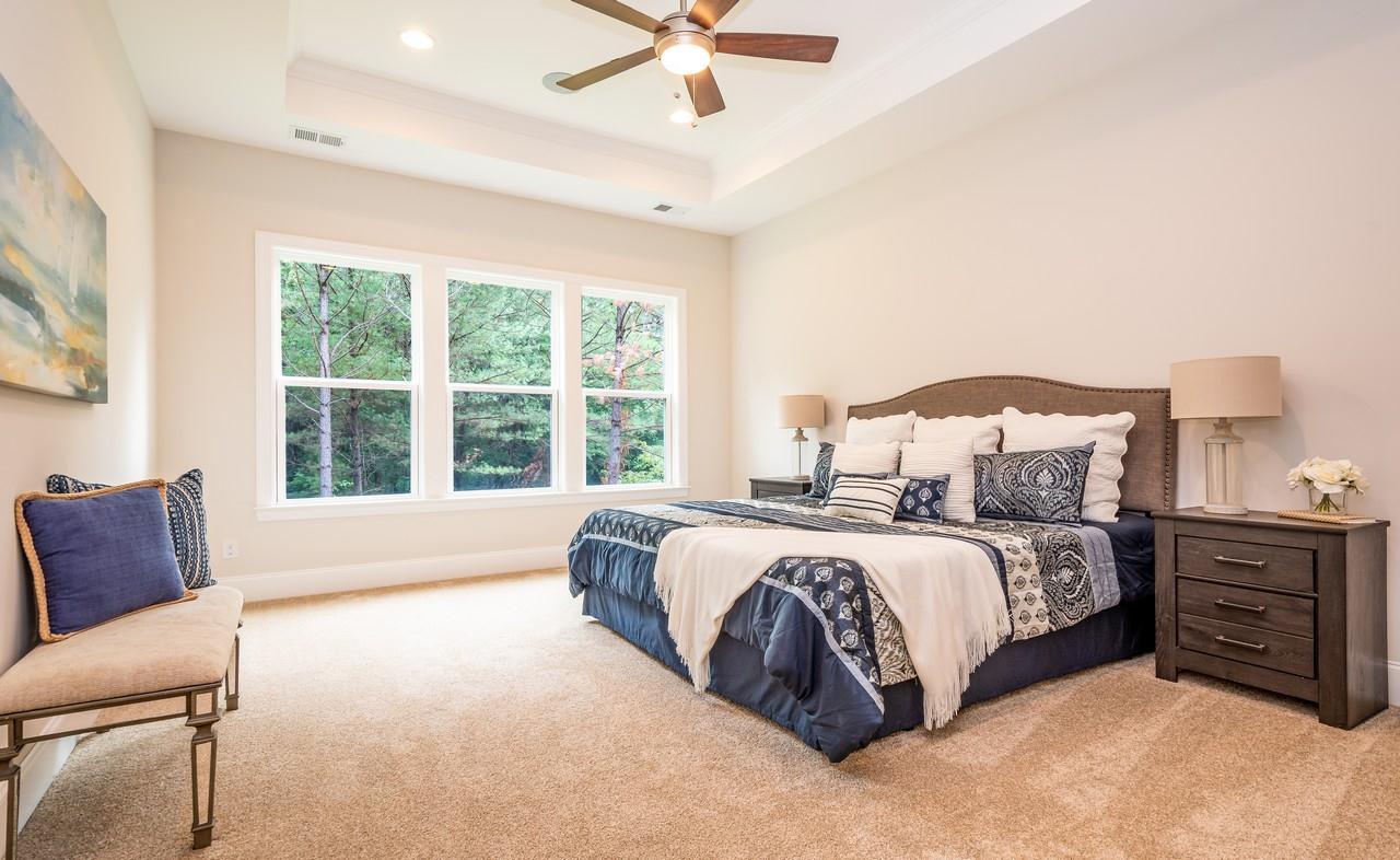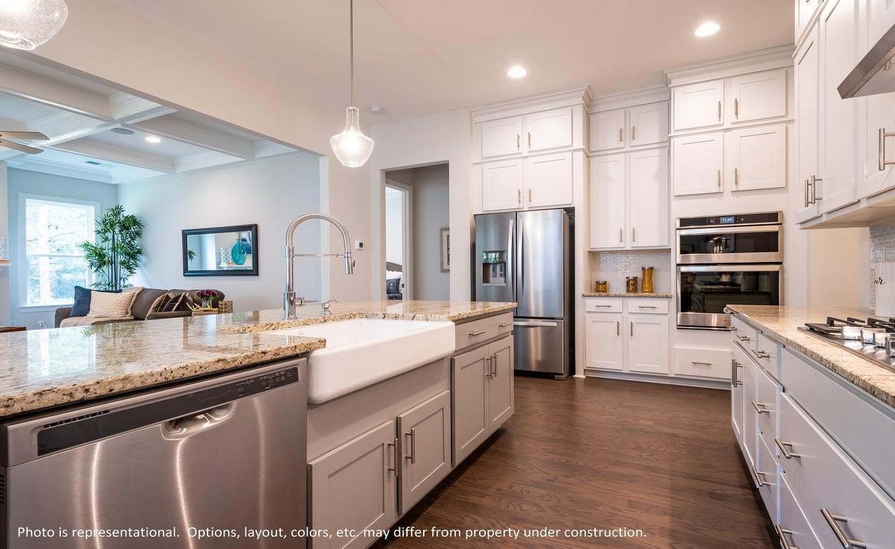 The Muirfield is a beautiful Ranch plan and with an option to add an Upstairs Retreat, which would add a 4th Bedroom, 3rd Full Bath, and a huge Loft/Bonus Room to be used as your family desires! The main level remains the same, with a beautiful open concept design! The Gourmet Kitchen with granite or quartz counter tops and large island with farmhouse sink option, opens to family room and dining area! Many options and selections to choose from, including cabinet colors/styles, countertops, and double ovens, with nice and relaxing covered deck off dining area and Family Room, with beautiful option for coffered ceiling in Family Room. Formal Dining area has board and batten wainscoting, with option for coffered ceiling! Owner's suite has luxury tiled walk in shower with double shower heads, ...